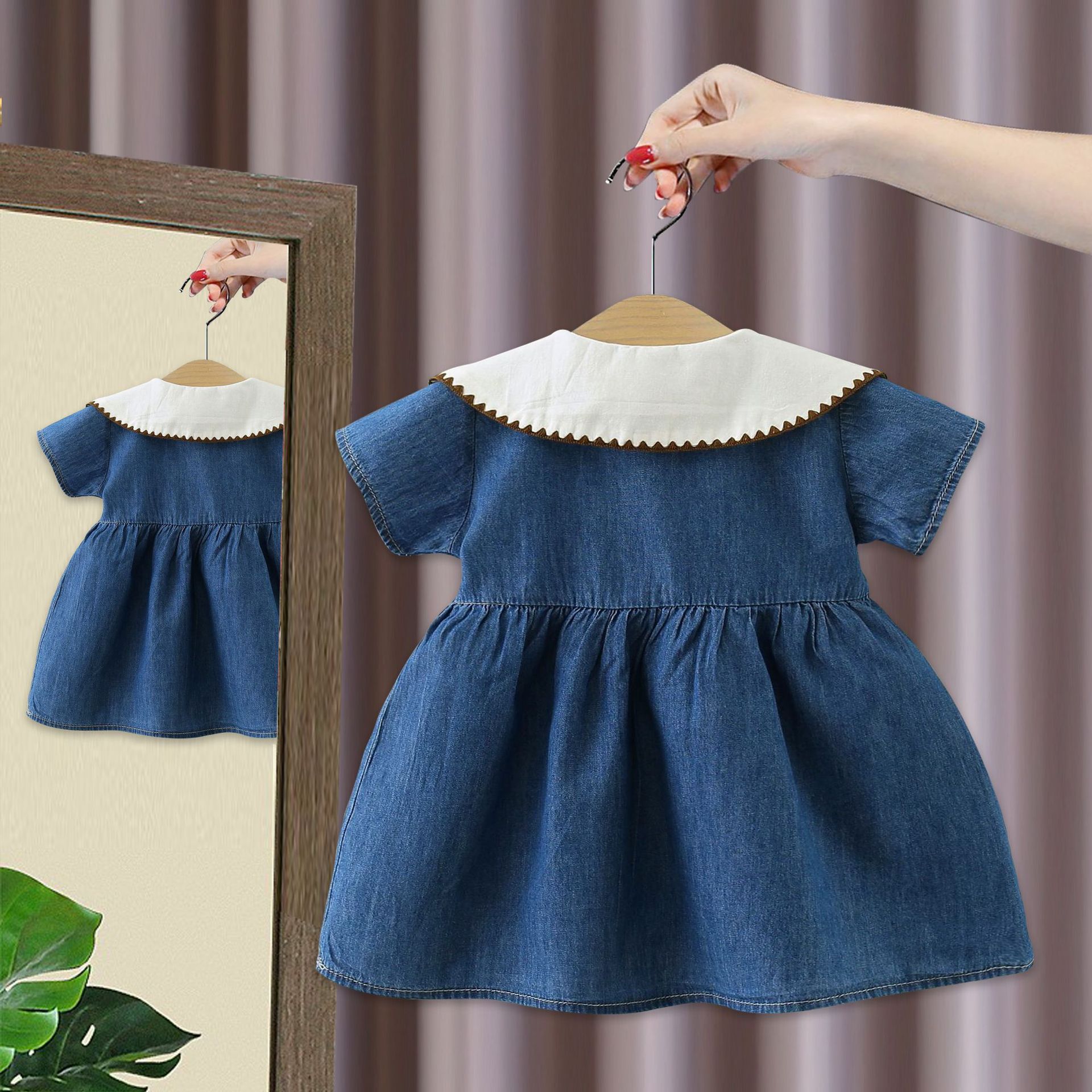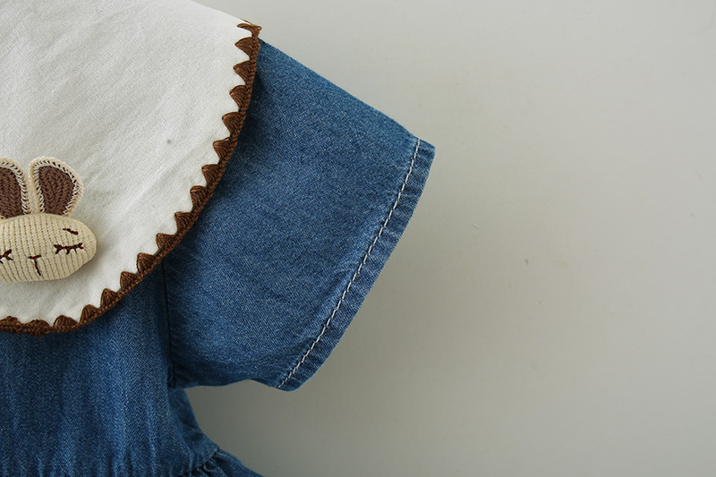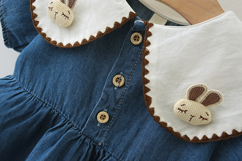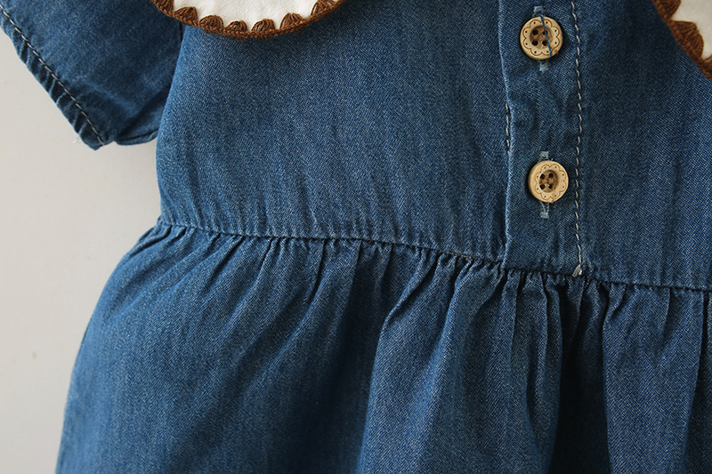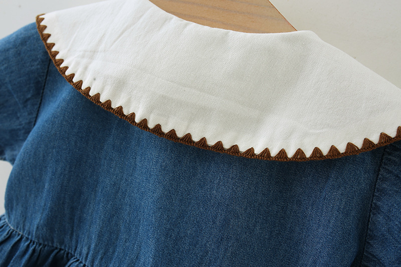 여자 드레스 봄과 여름 새로운 어린이 여름 플라잉 슬리브 데님 스커트 아동 의류 아기 가짜 투피스 공주 드레스 5071