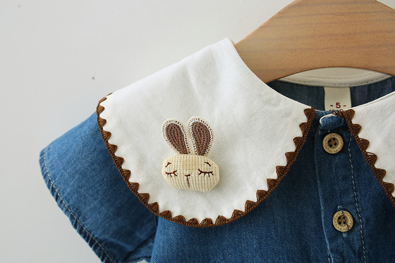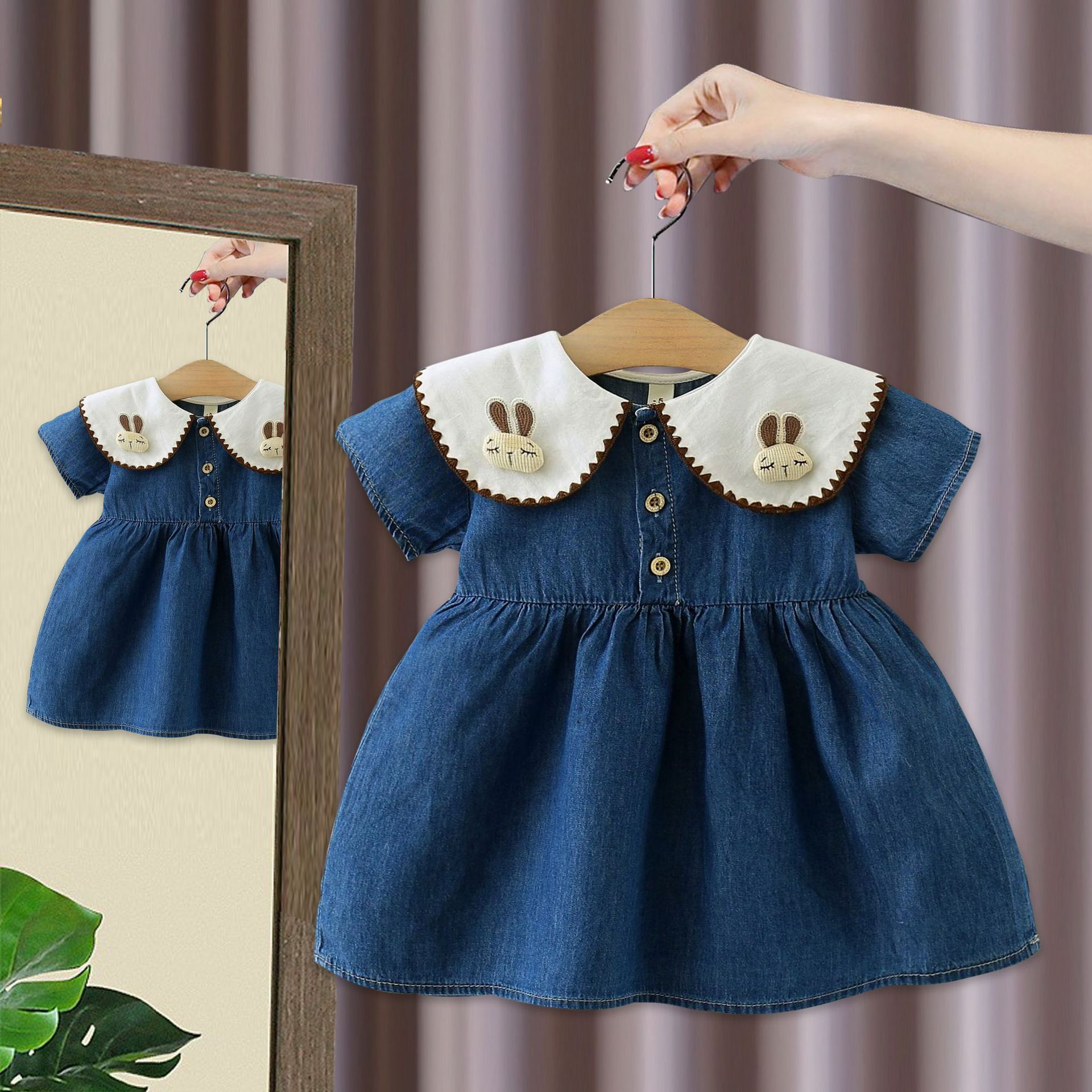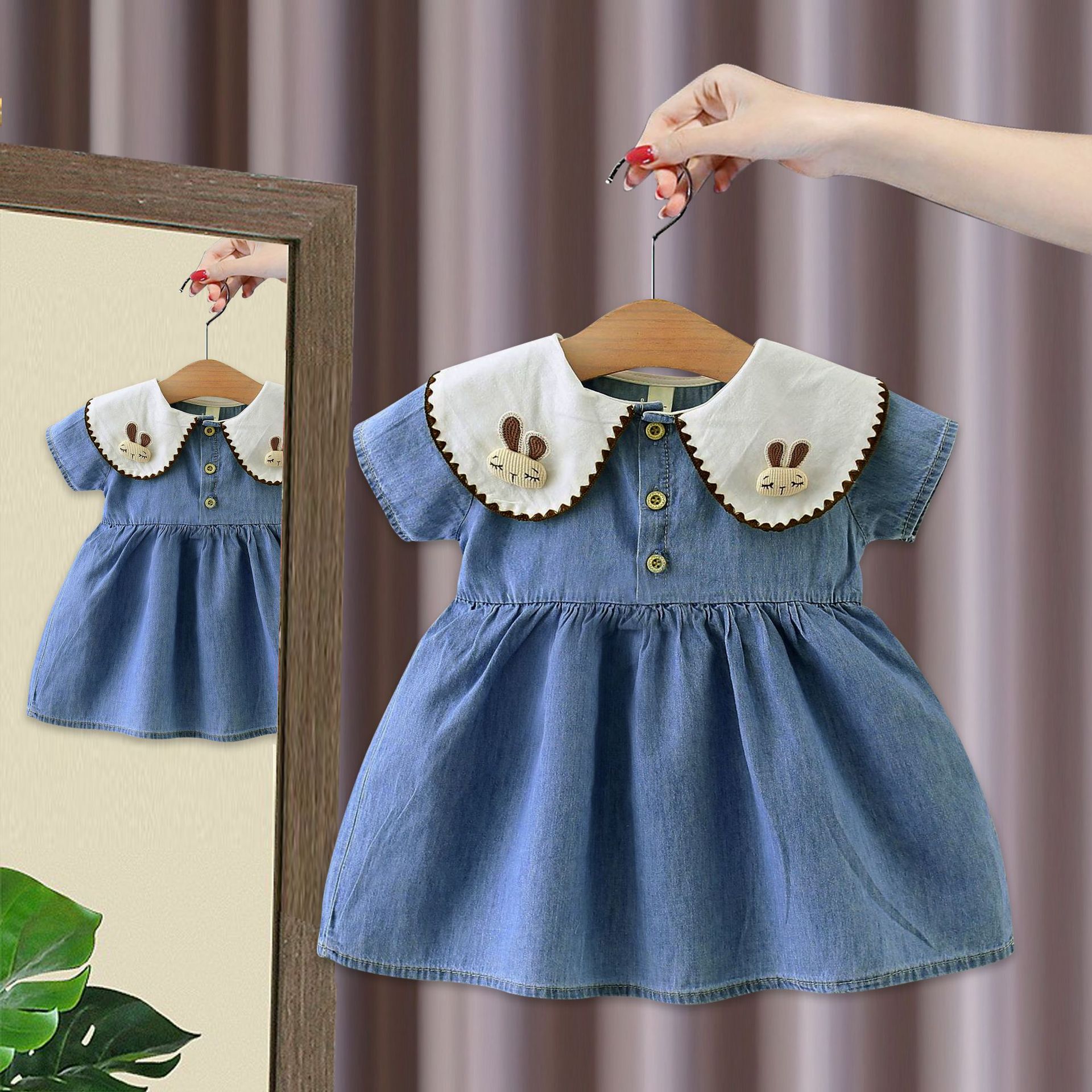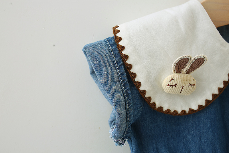 여자 드레스 봄과 여름 새로운 어린이 여름 플라잉 슬리브 데님 스커트 아동 의류 아기 가짜 투피스 공주 드레스 5071