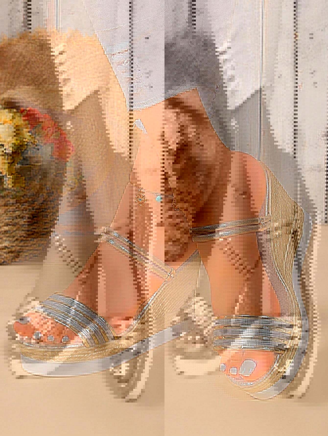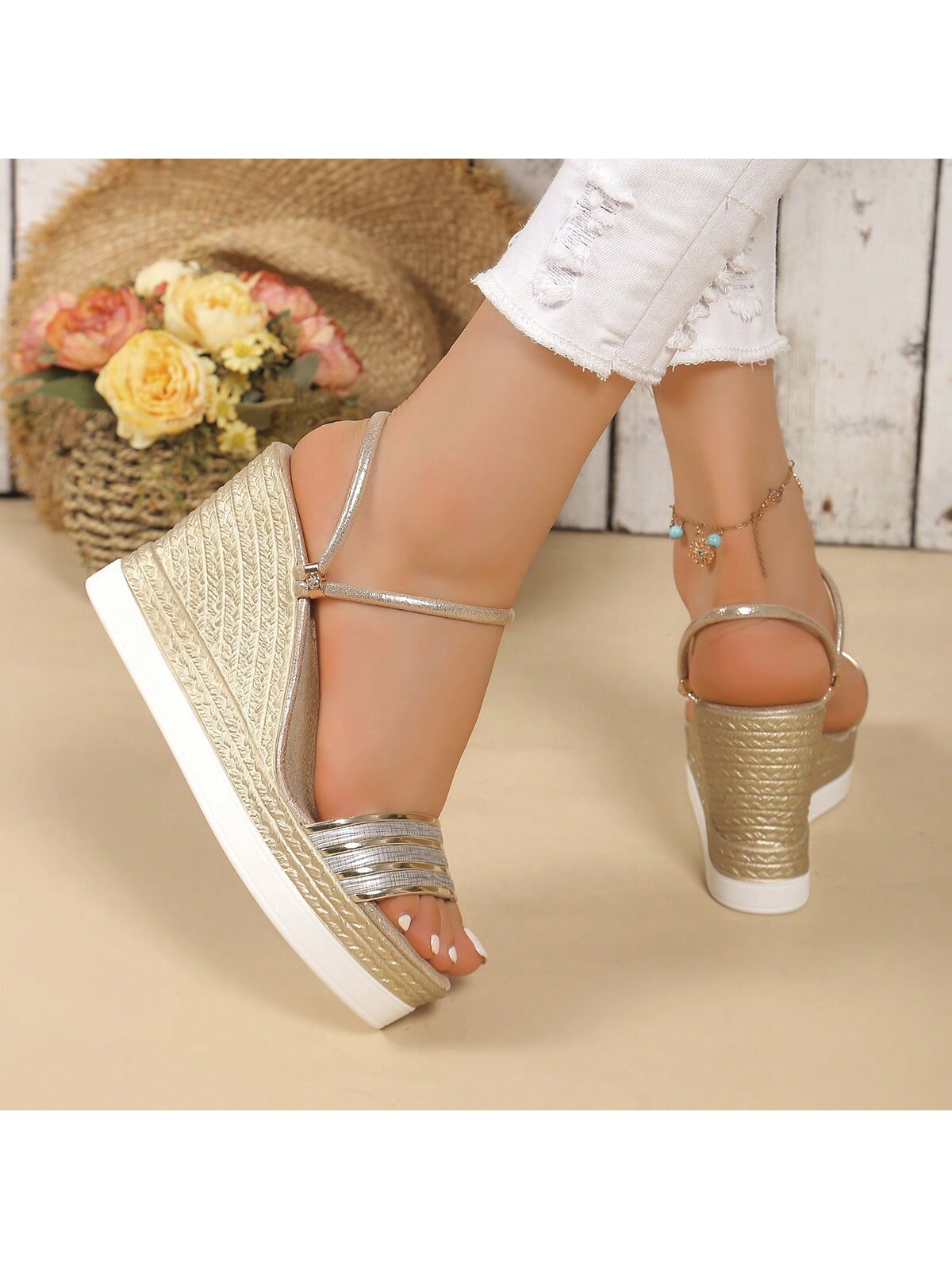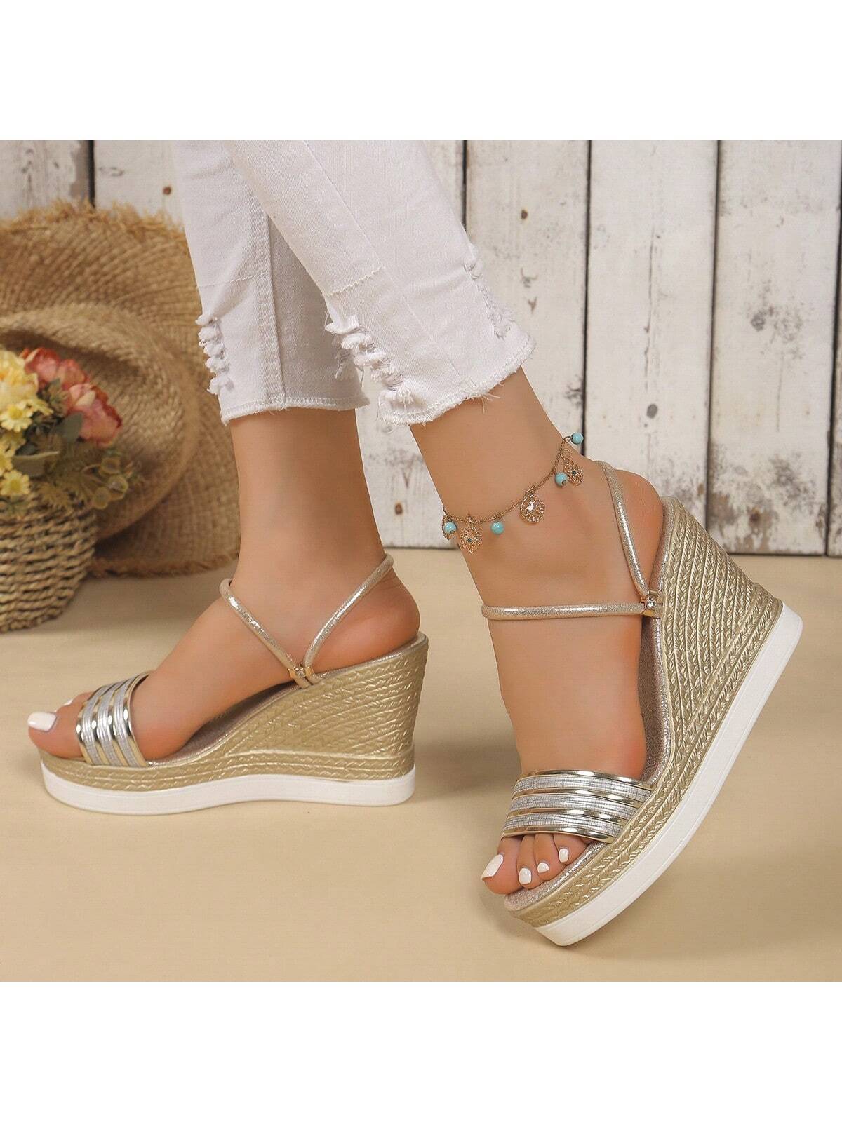 대외 무역 플러스 사이즈 국경 간 쐐기 샌들 두꺼운 바닥 생선 입 워드 버클 2 착용 가방 힐 머핀 여성 샌들 도매스토어 가기