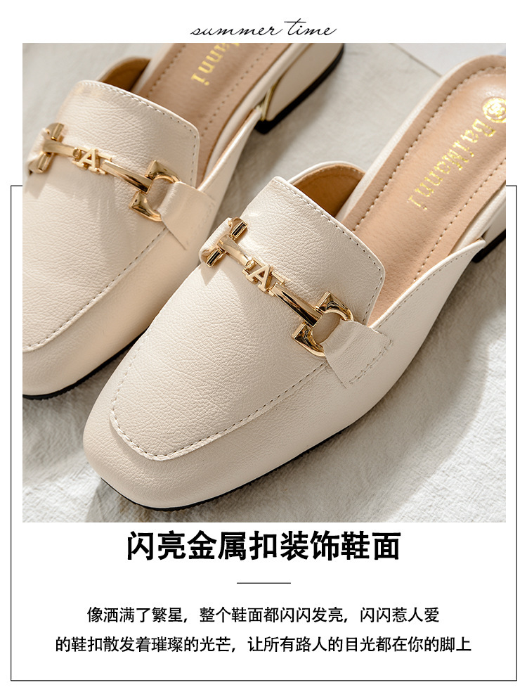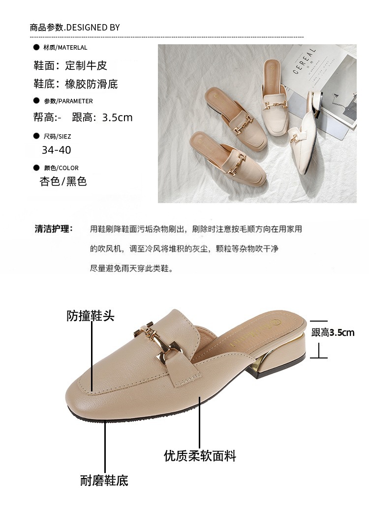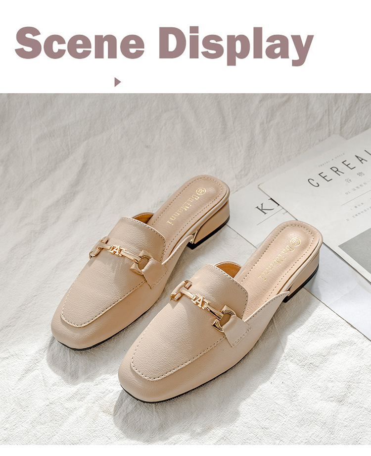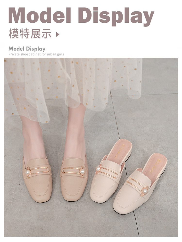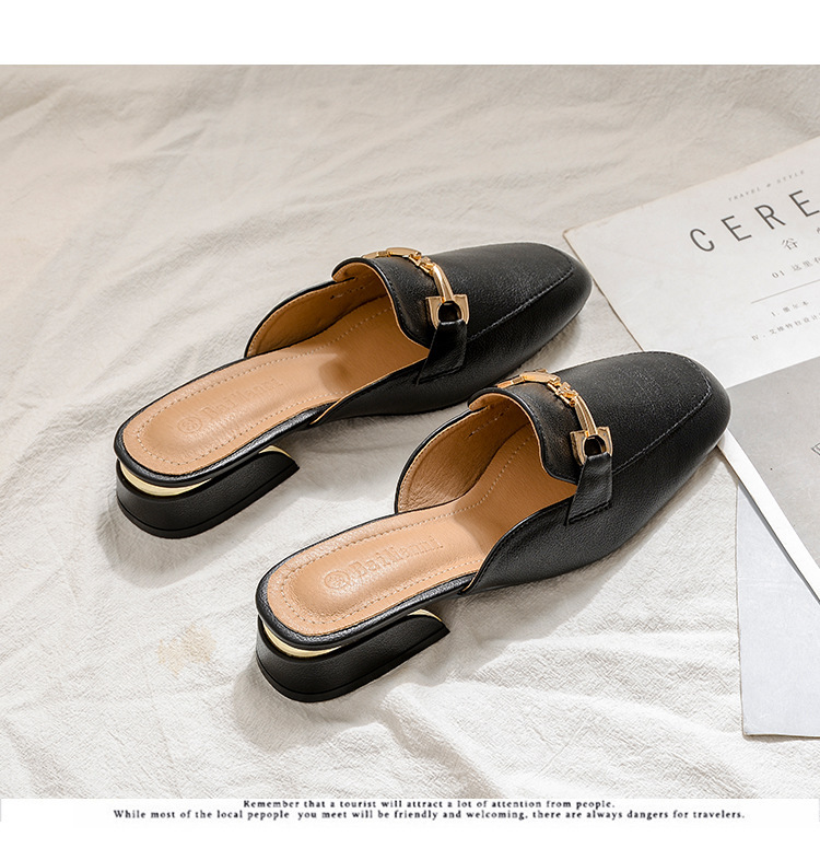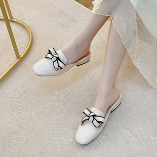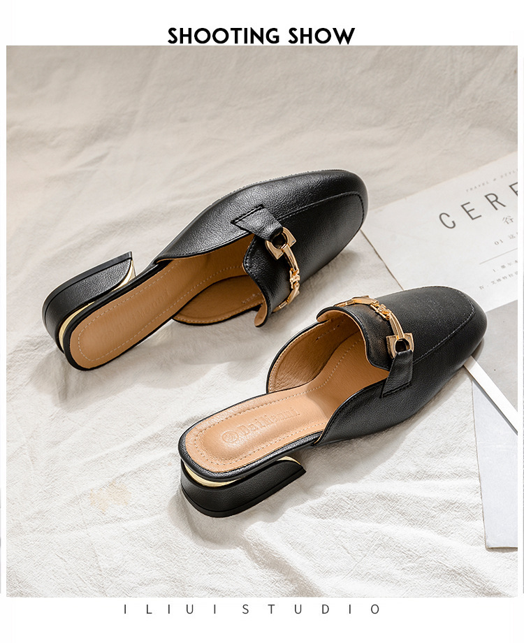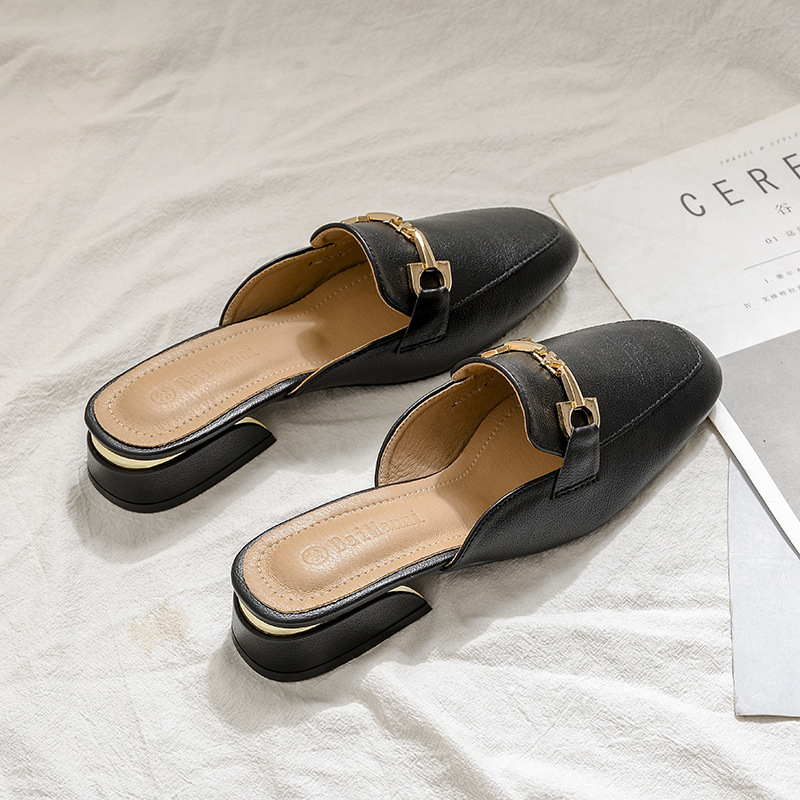 정품 가죽 슬리퍼 여성 아우터웨어 2025 새로운 평면 게으른 남자 하프 슬리퍼 여성 여름 신발 여성 봄과 가을 신발스토어 가기