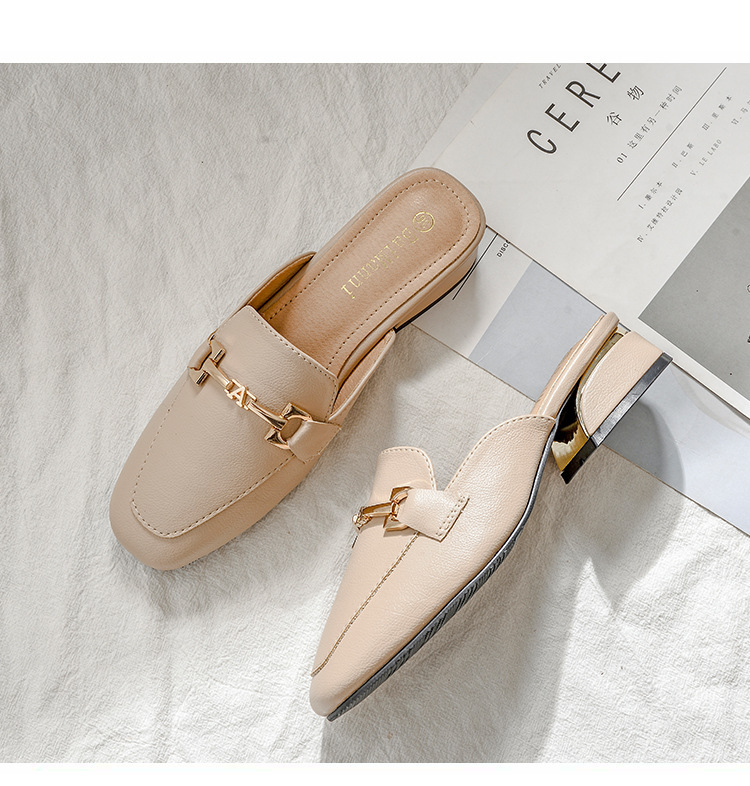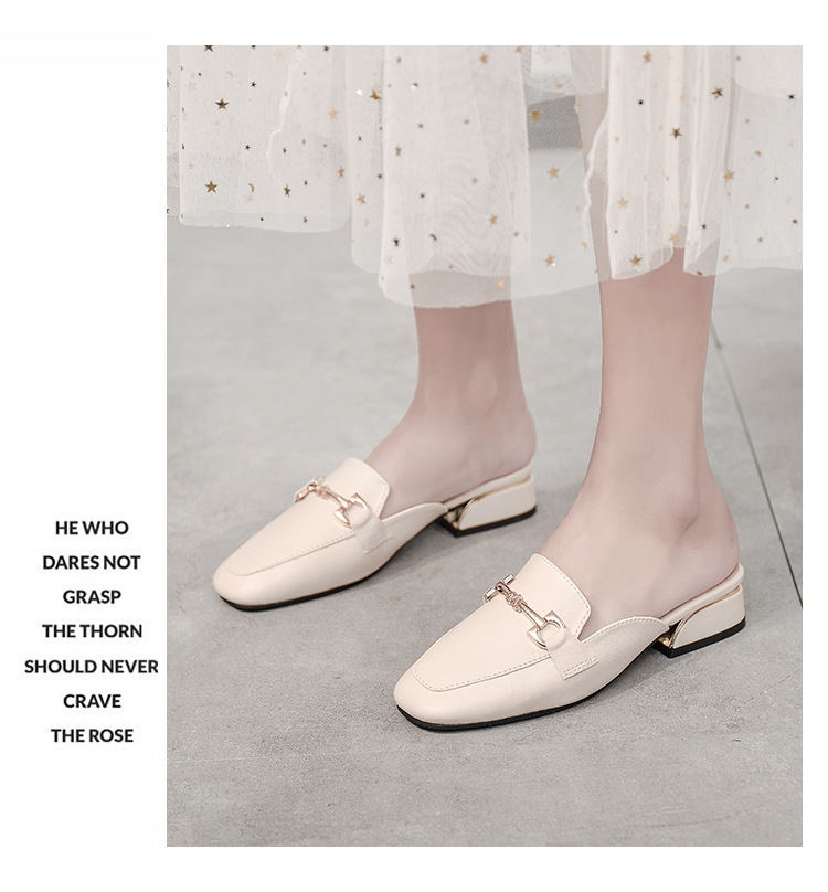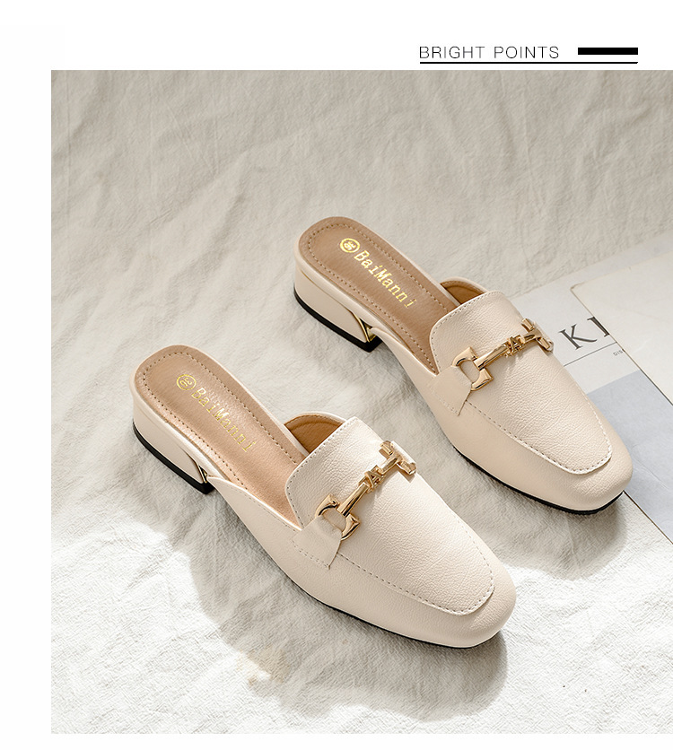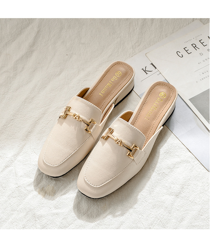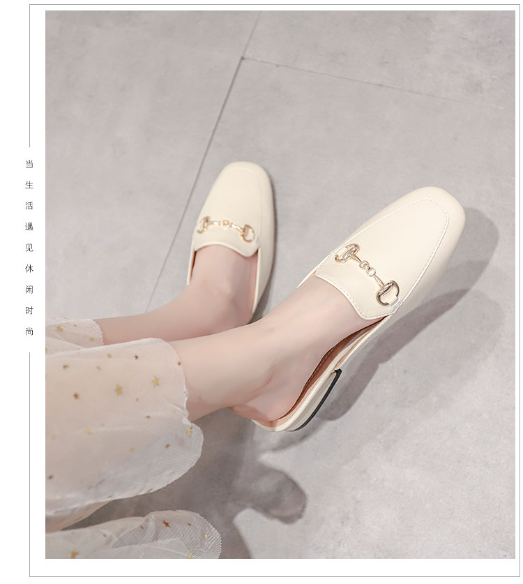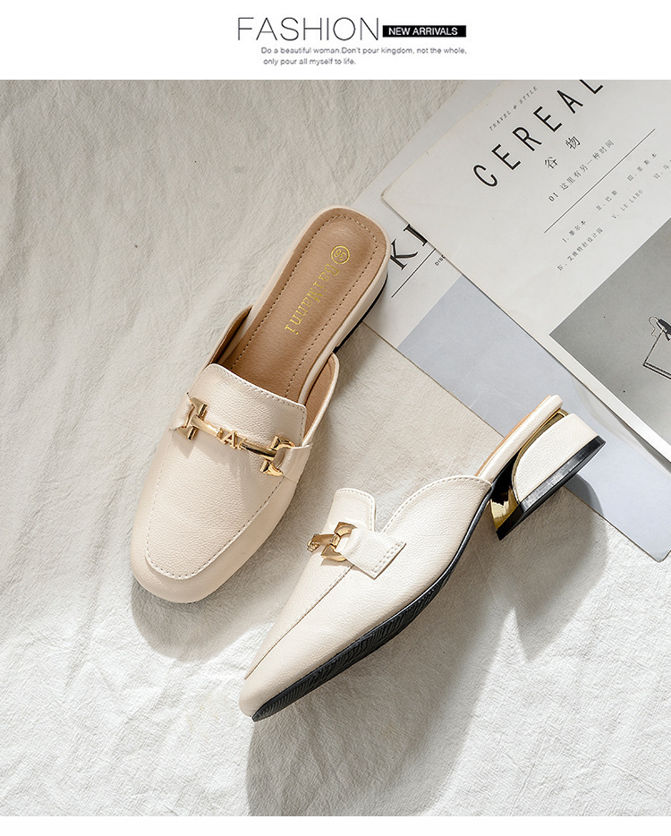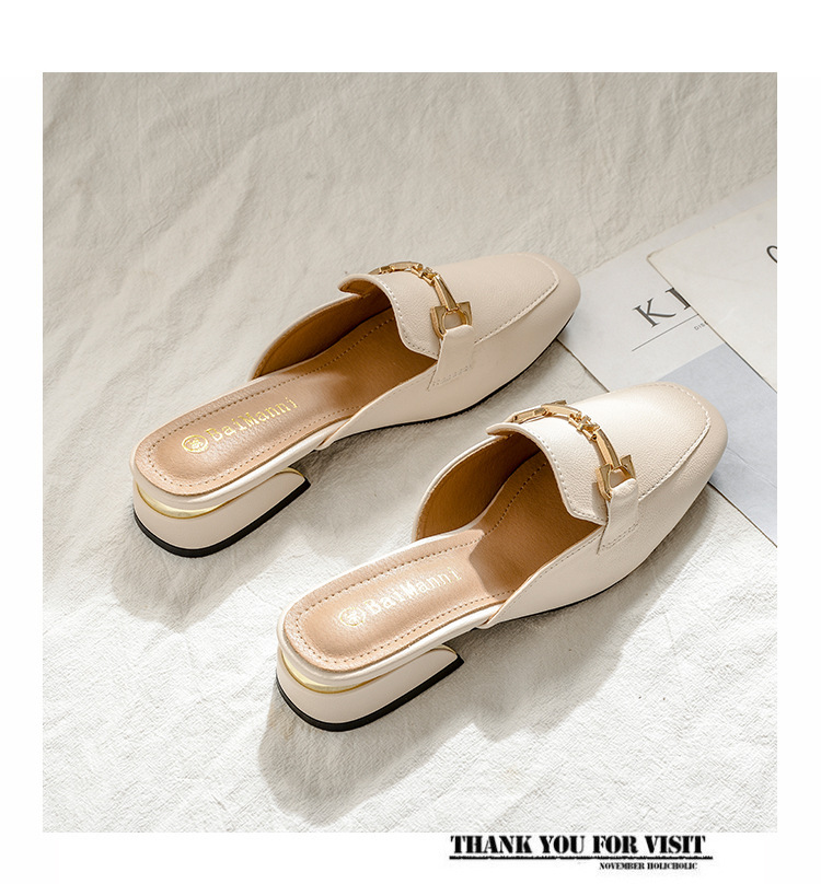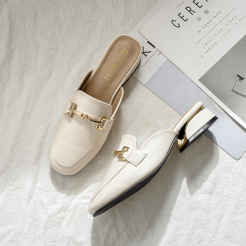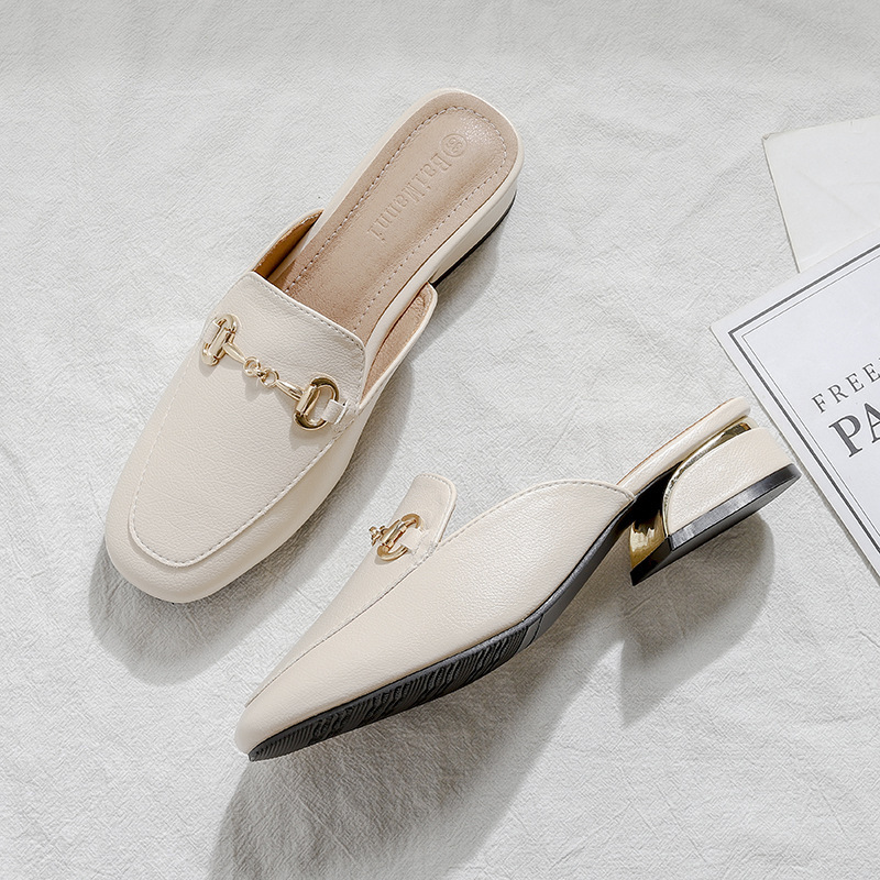 정품 가죽 슬리퍼 여성 아우터웨어 2025 새로운 평면 게으른 남자 하프 슬리퍼 여성 여름 신발 여성 봄과 가을 신발스토어 가기