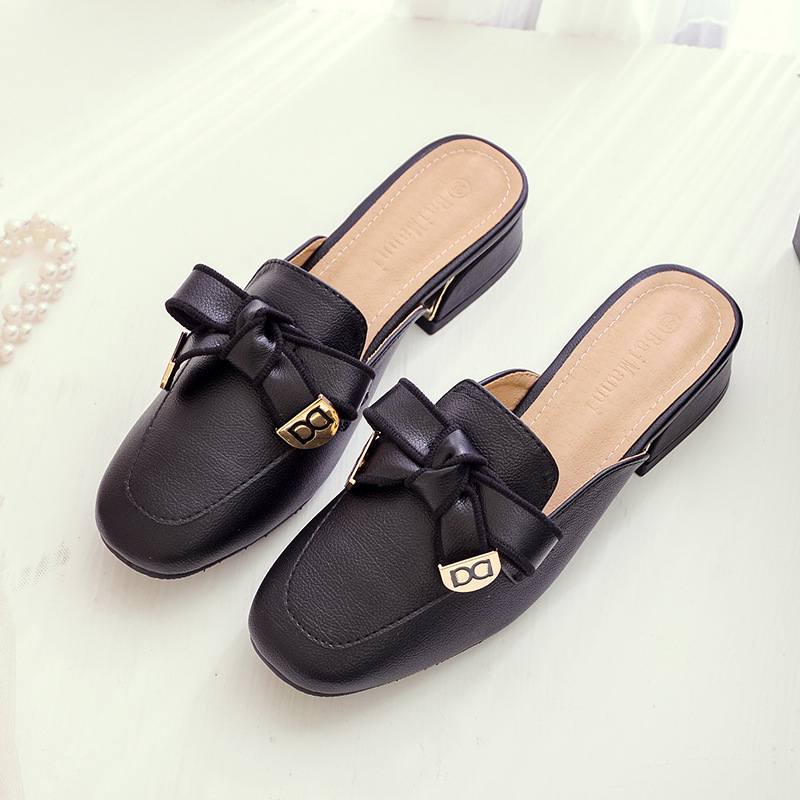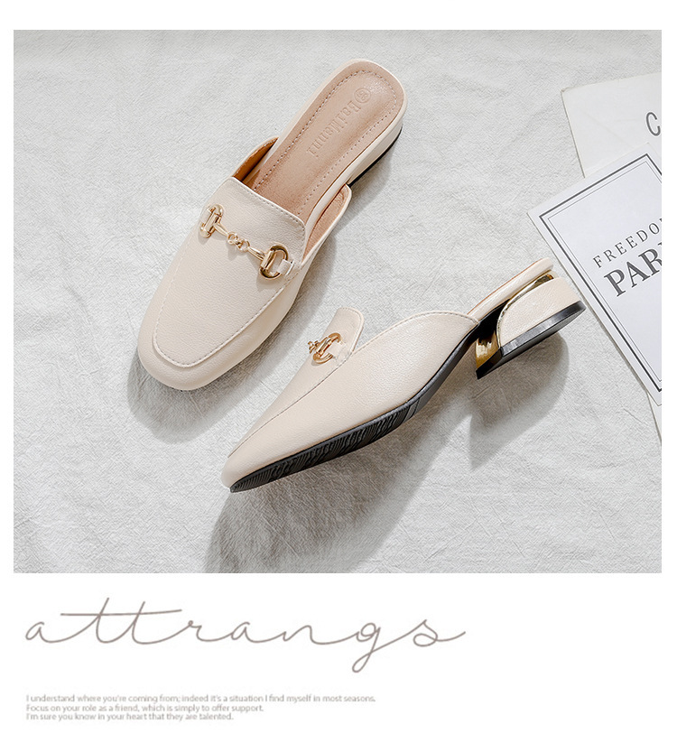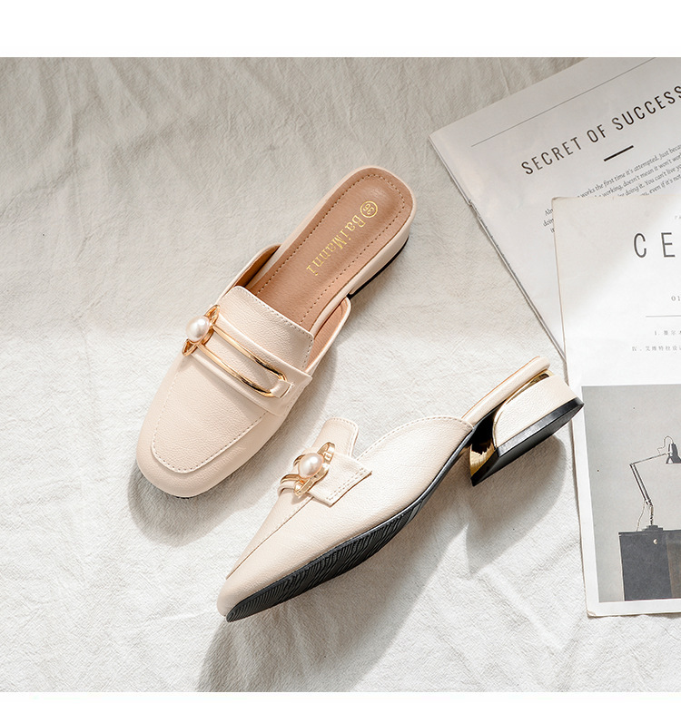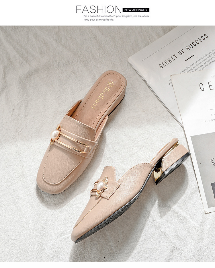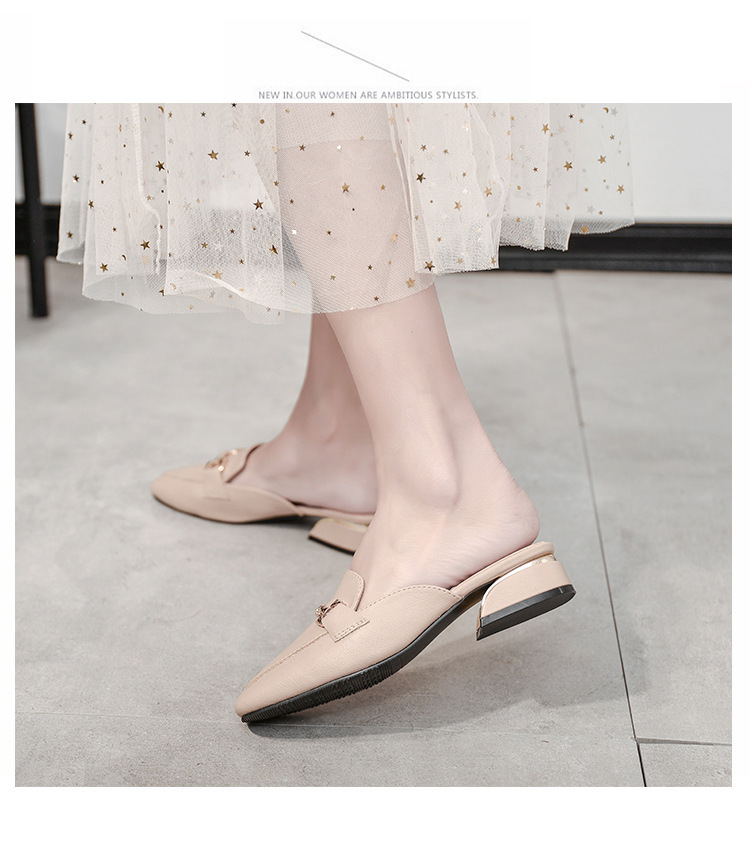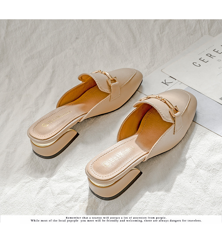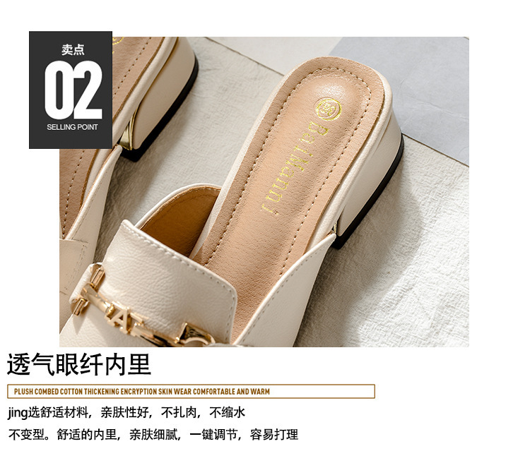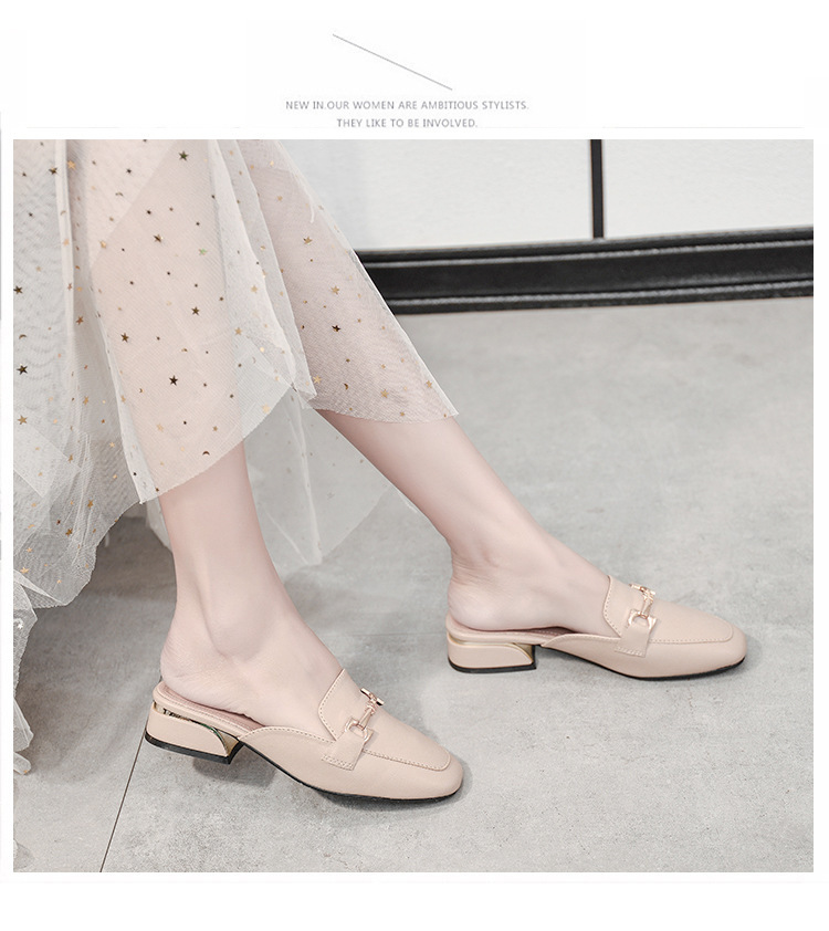 정품 가죽 슬리퍼 여성 아우터웨어 2025 새로운 평면 게으른 남자 하프 슬리퍼 여성 여름 신발 여성 봄과 가을 신발스토어 가기