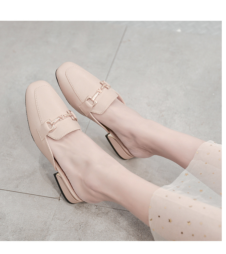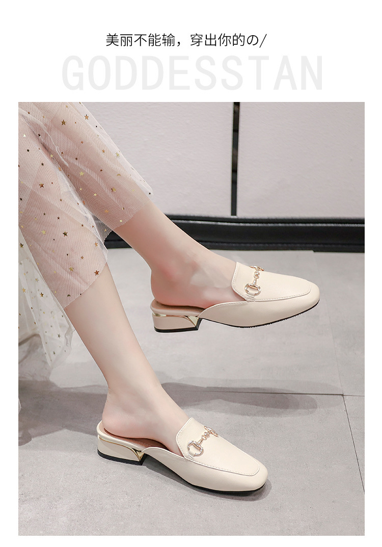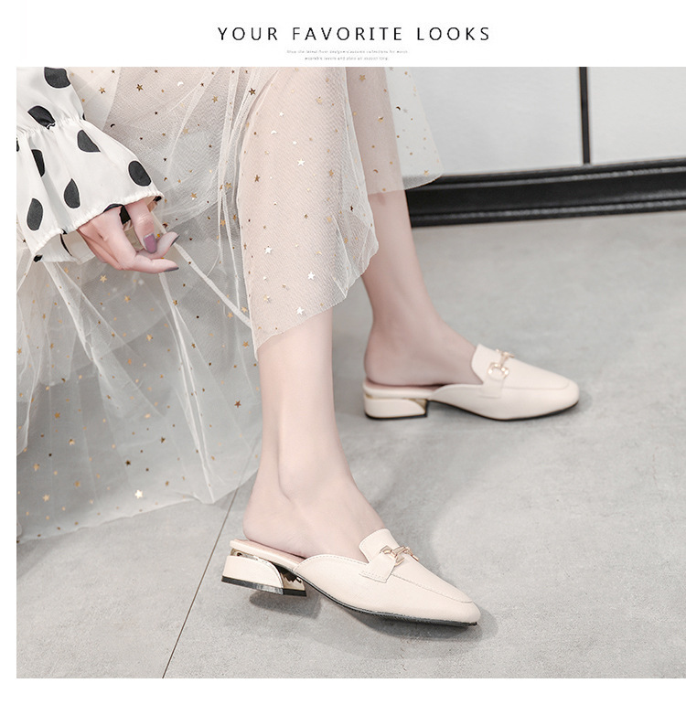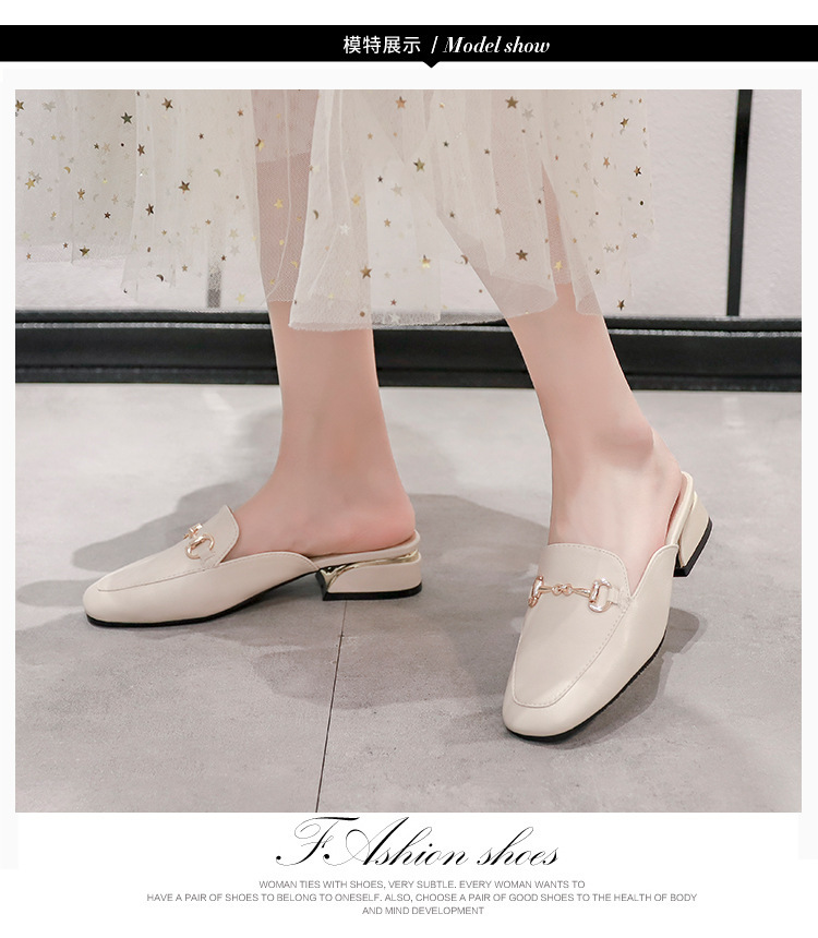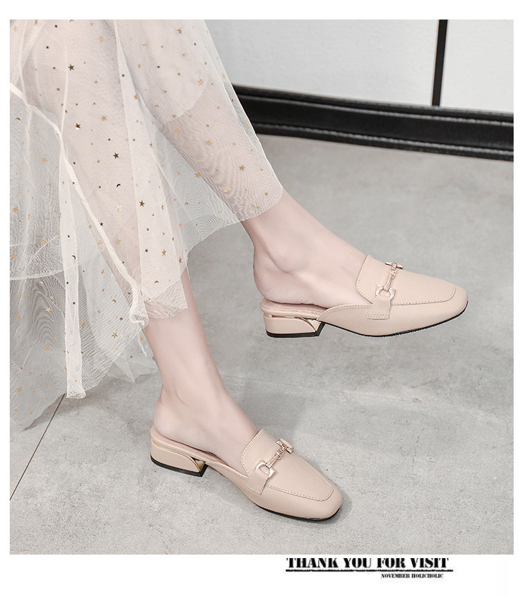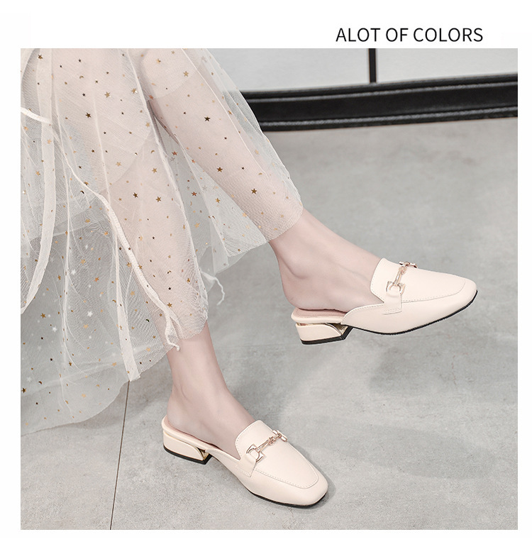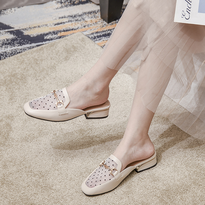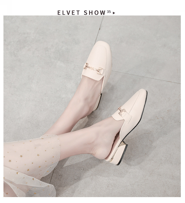 정품 가죽 슬리퍼 여성 아우터웨어 2025 새로운 평면 게으른 남자 하프 슬리퍼 여성 여름 신발 여성 봄과 가을 신발스토어 가기