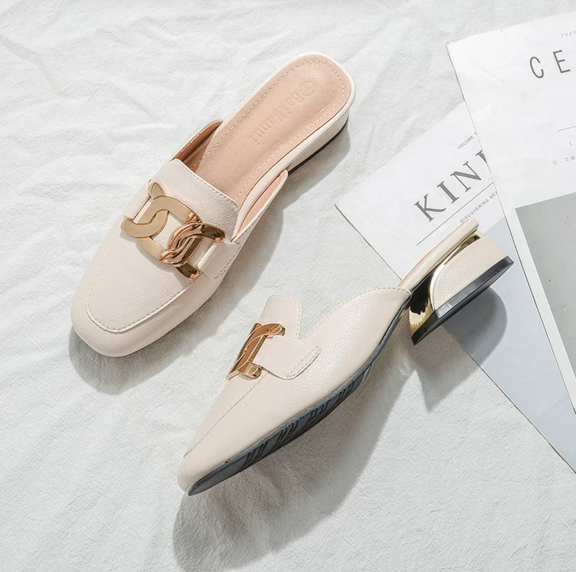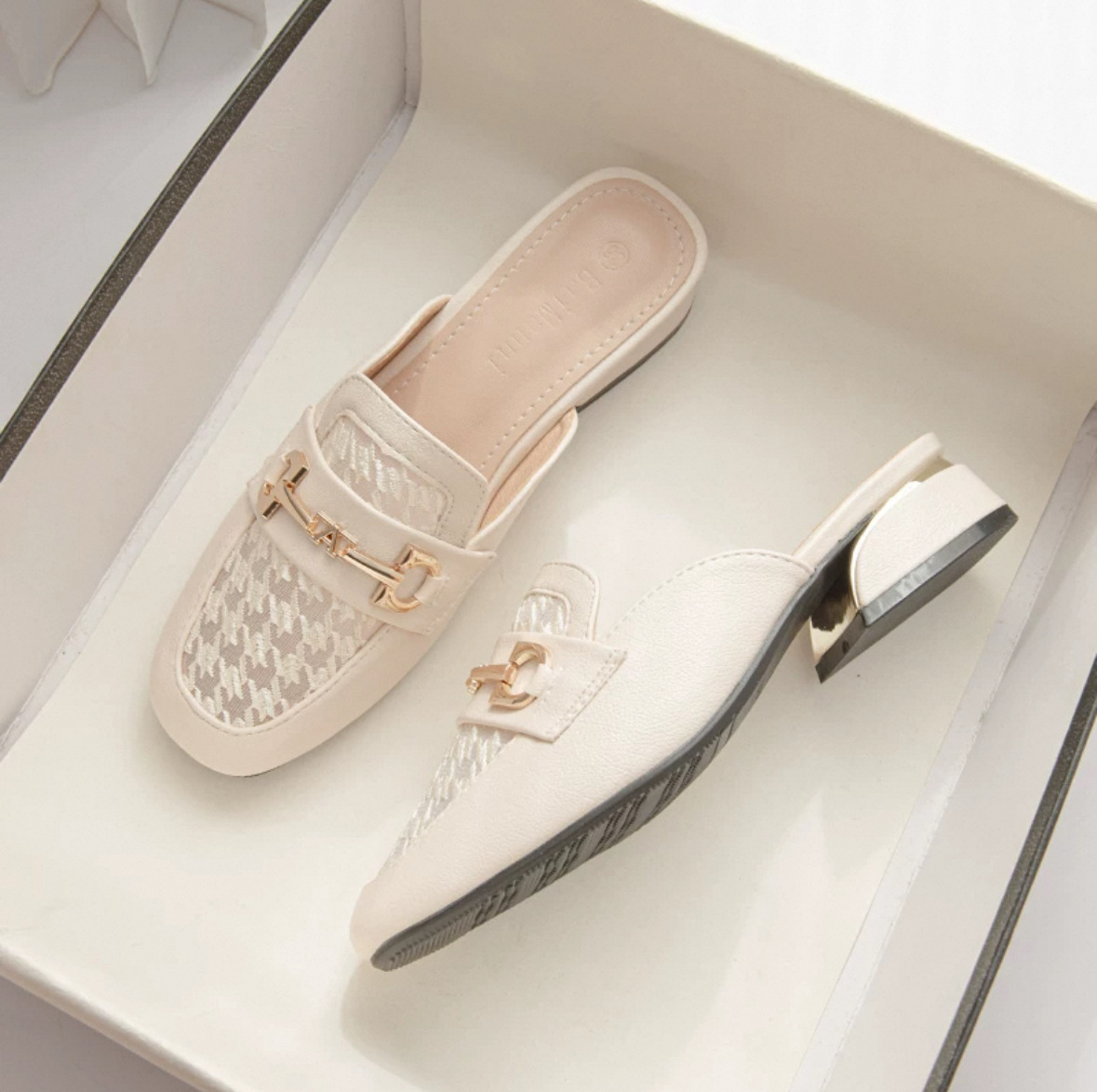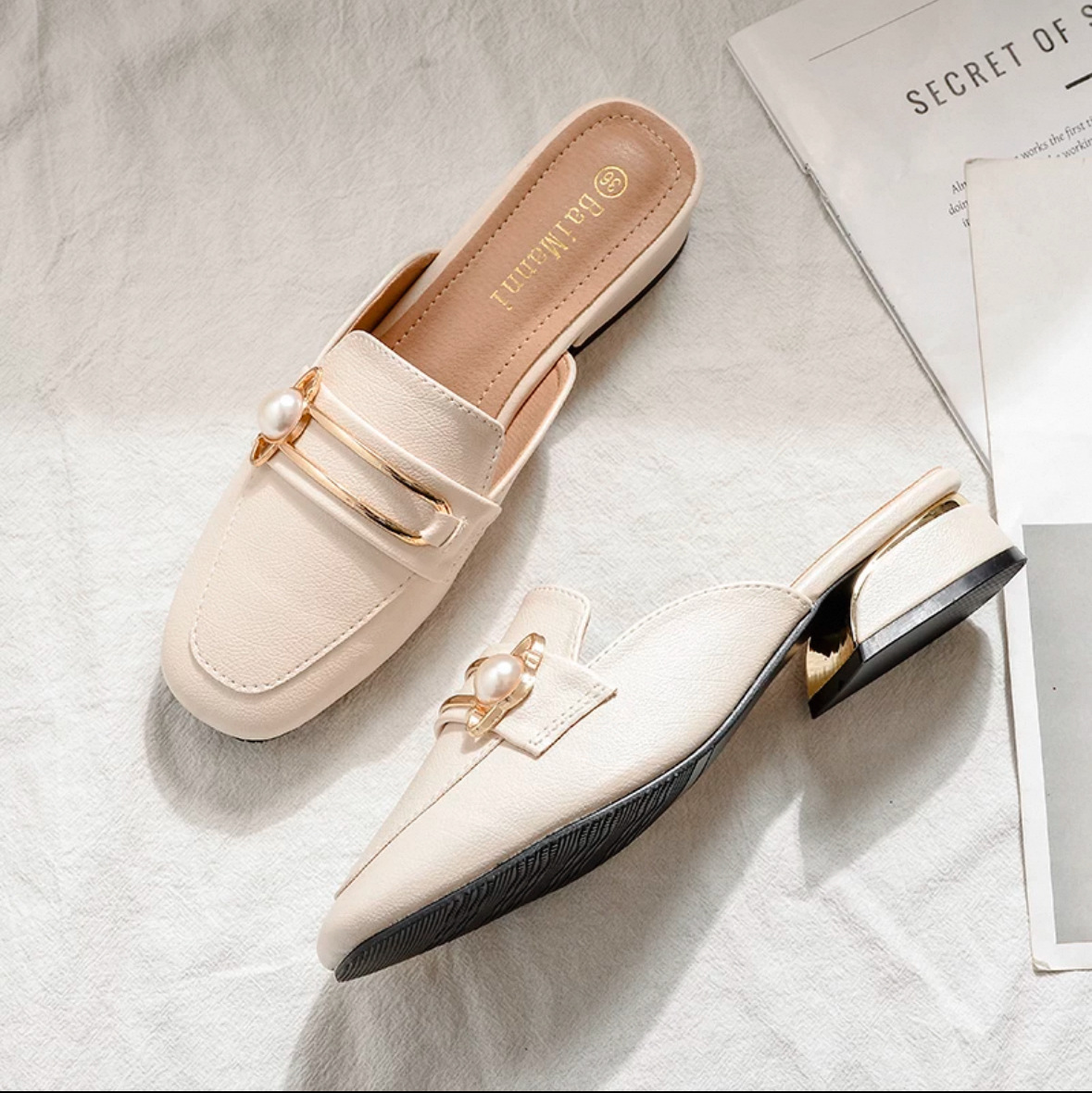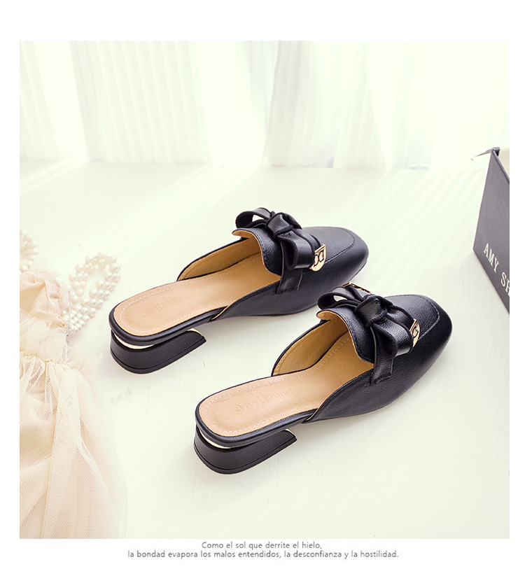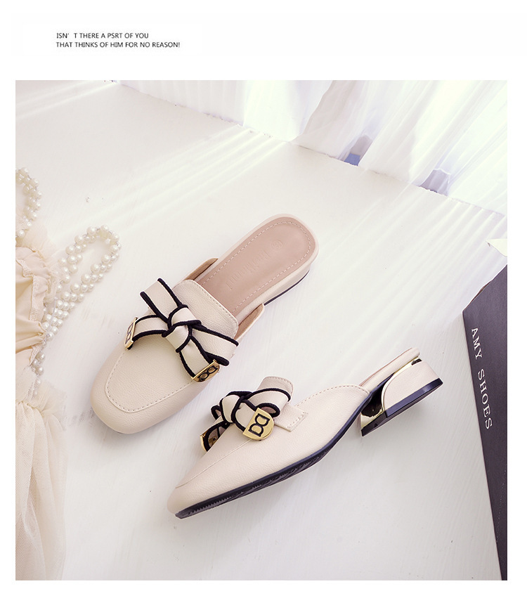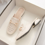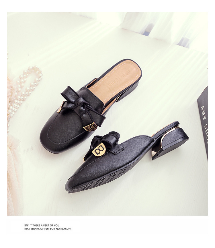 정품 가죽 슬리퍼 여성 아우터웨어 2025 새로운 평면 게으른 남자 하프 슬리퍼 여성 여름 신발 여성 봄과 가을 신발스토어 가기