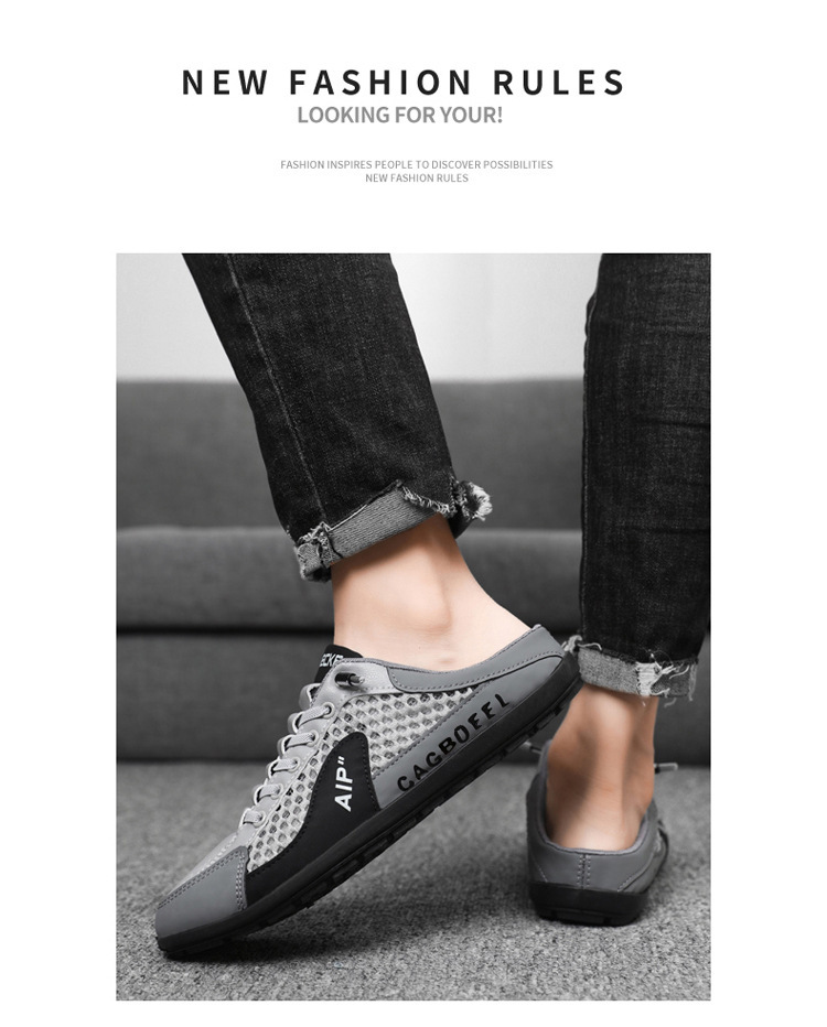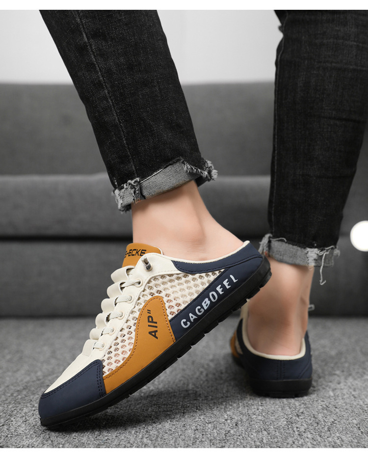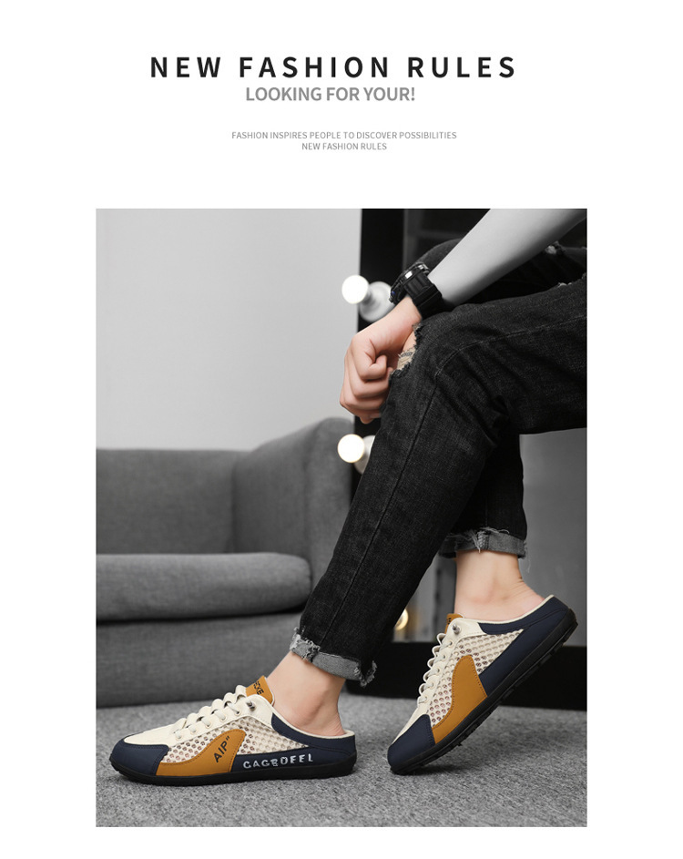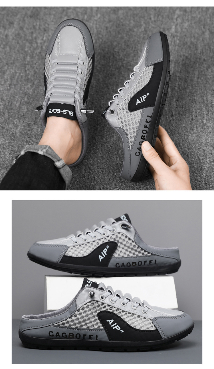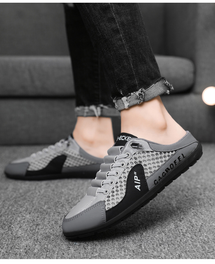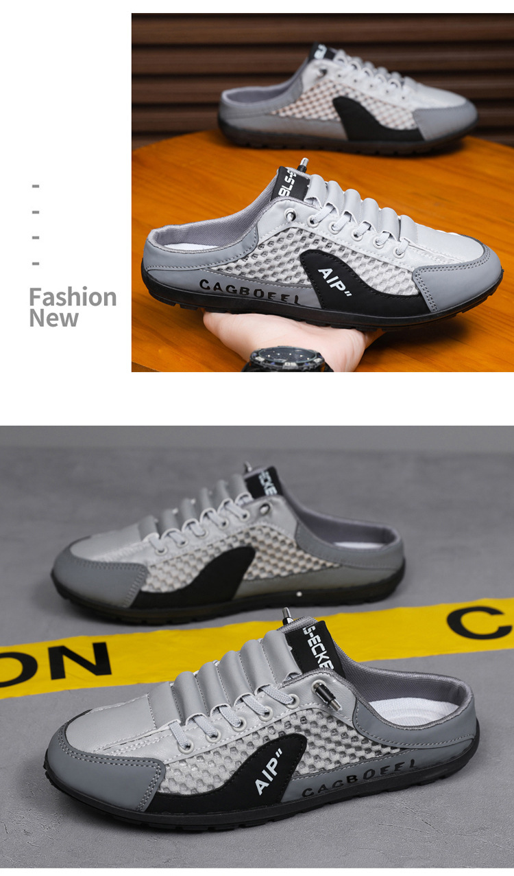 남성용 크로스보더 대형 바오터우 하프 슬립온 신발, 여름 신상 메쉬 통기성 슬립온 슬립온 신발, 패셔너블한 통기성 메쉬 신발스토어 가기