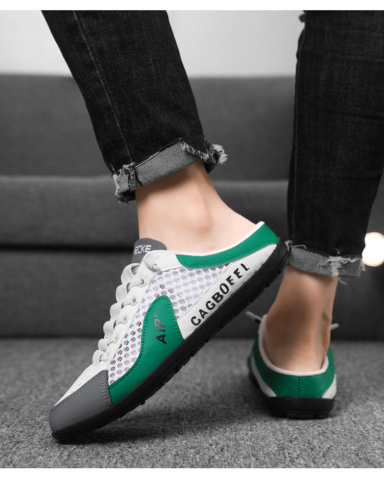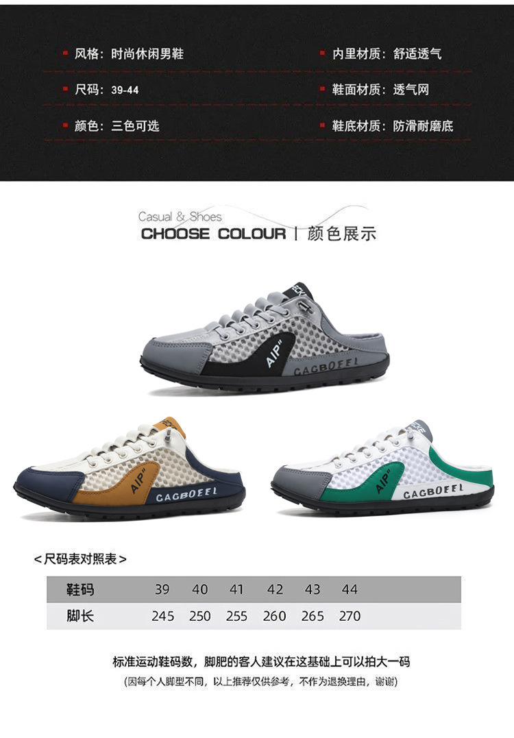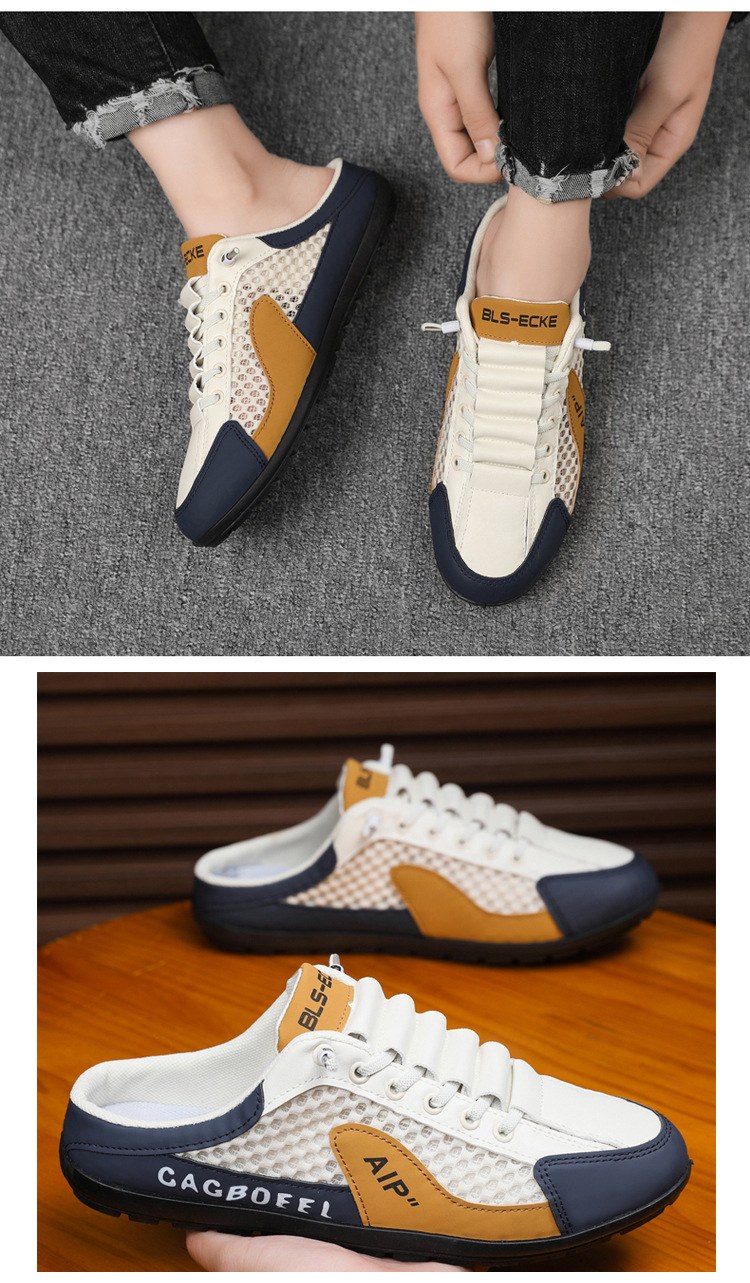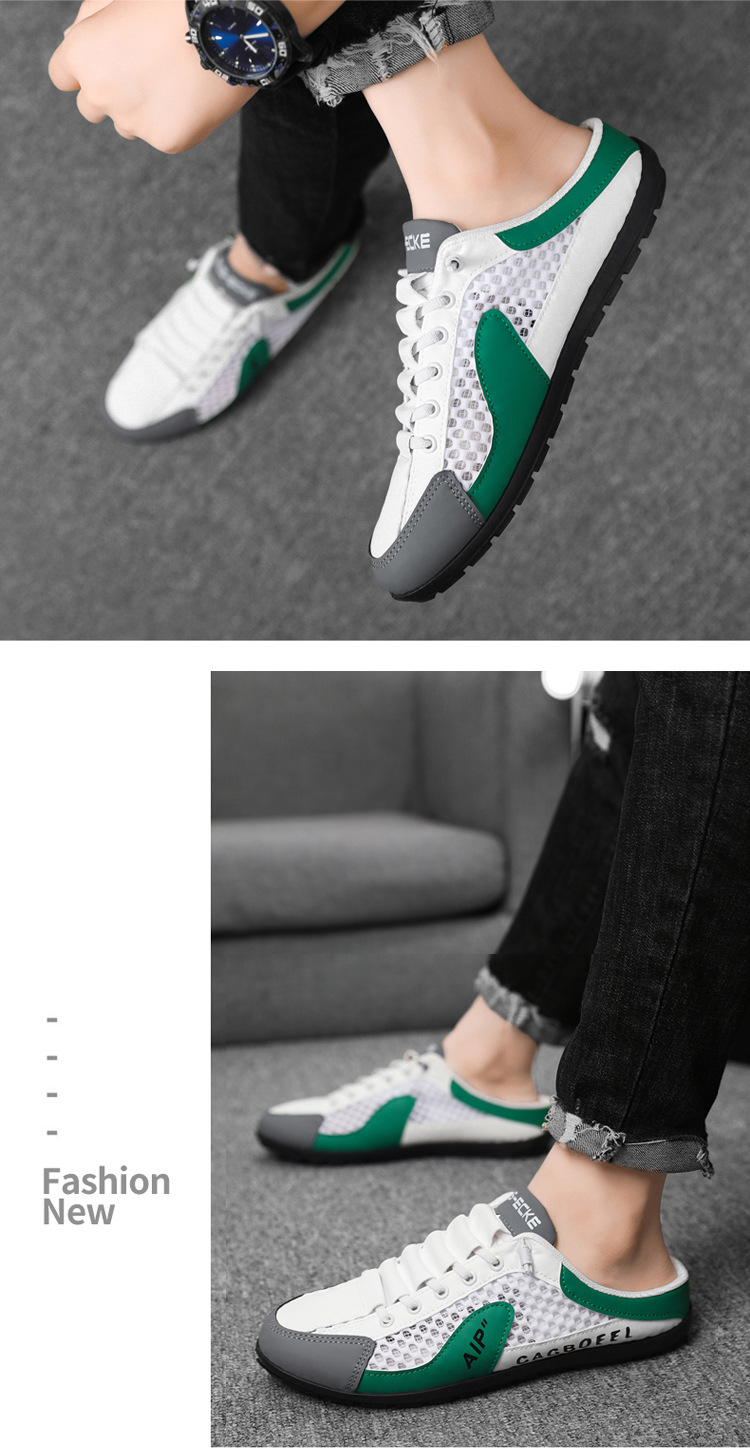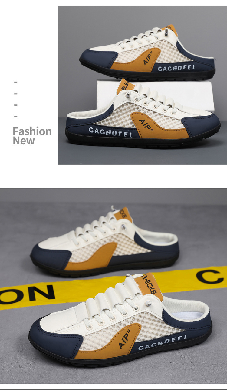 남성용 크로스보더 대형 바오터우 하프 슬립온 신발, 여름 신상 메쉬 통기성 슬립온 슬립온 신발, 패셔너블한 통기성 메쉬 신발스토어 가기