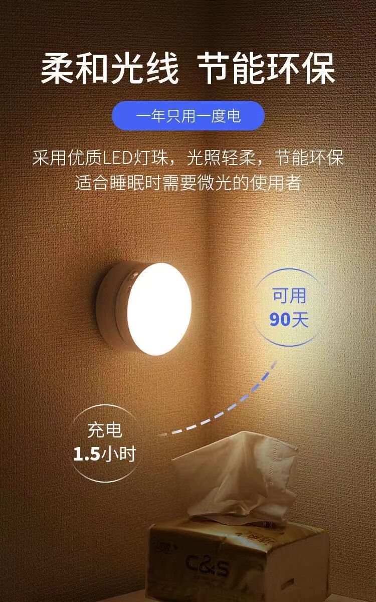 충전식 센서 LED 야간등 기숙사 침실 무선 벽 부착등