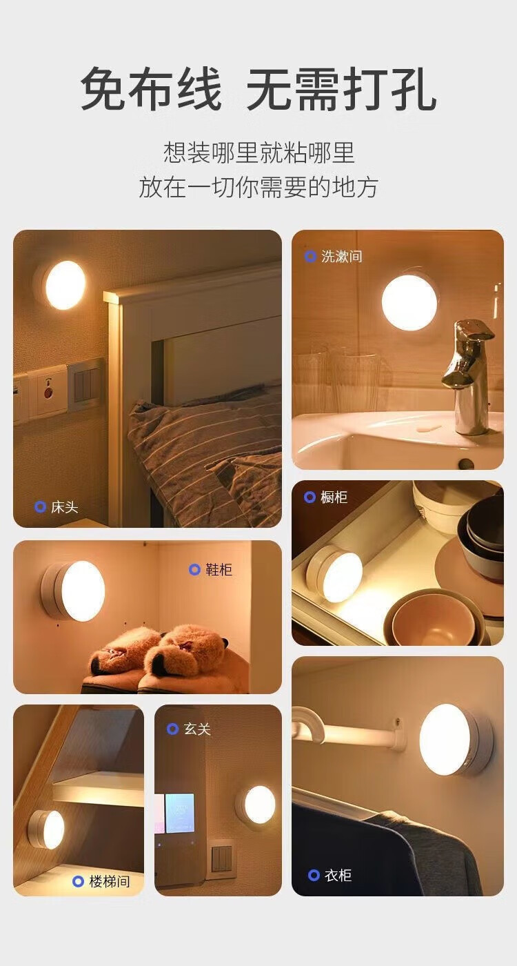 충전식 센서 LED 야간등 기숙사 침실 무선 벽 부착등스토어 가기