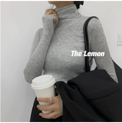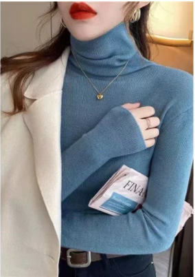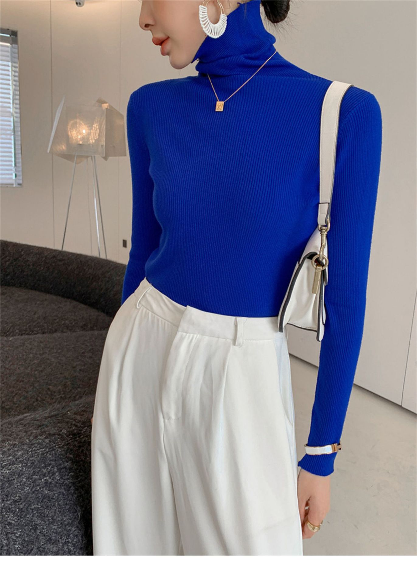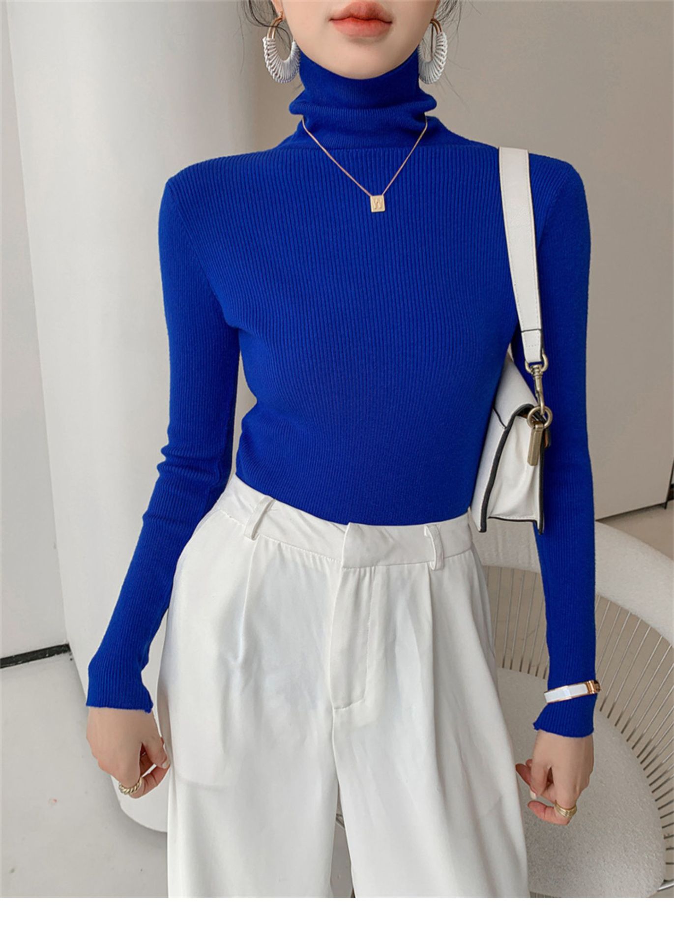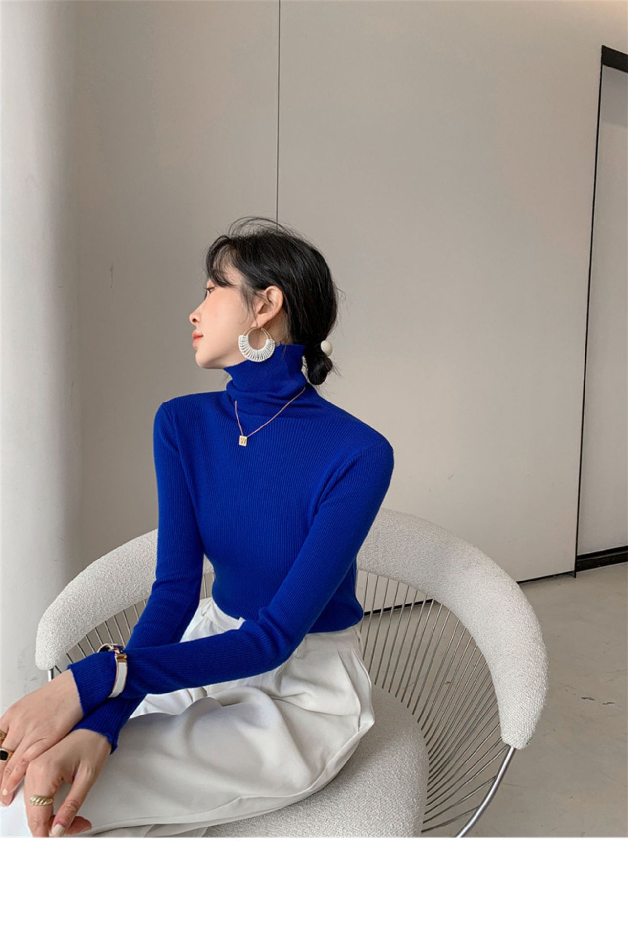 가을 새로운 여성 클라인 블루 더미 칼라베이스 셔츠 터틀넥 스웨터 타이트 핏 슬림 내부 탑