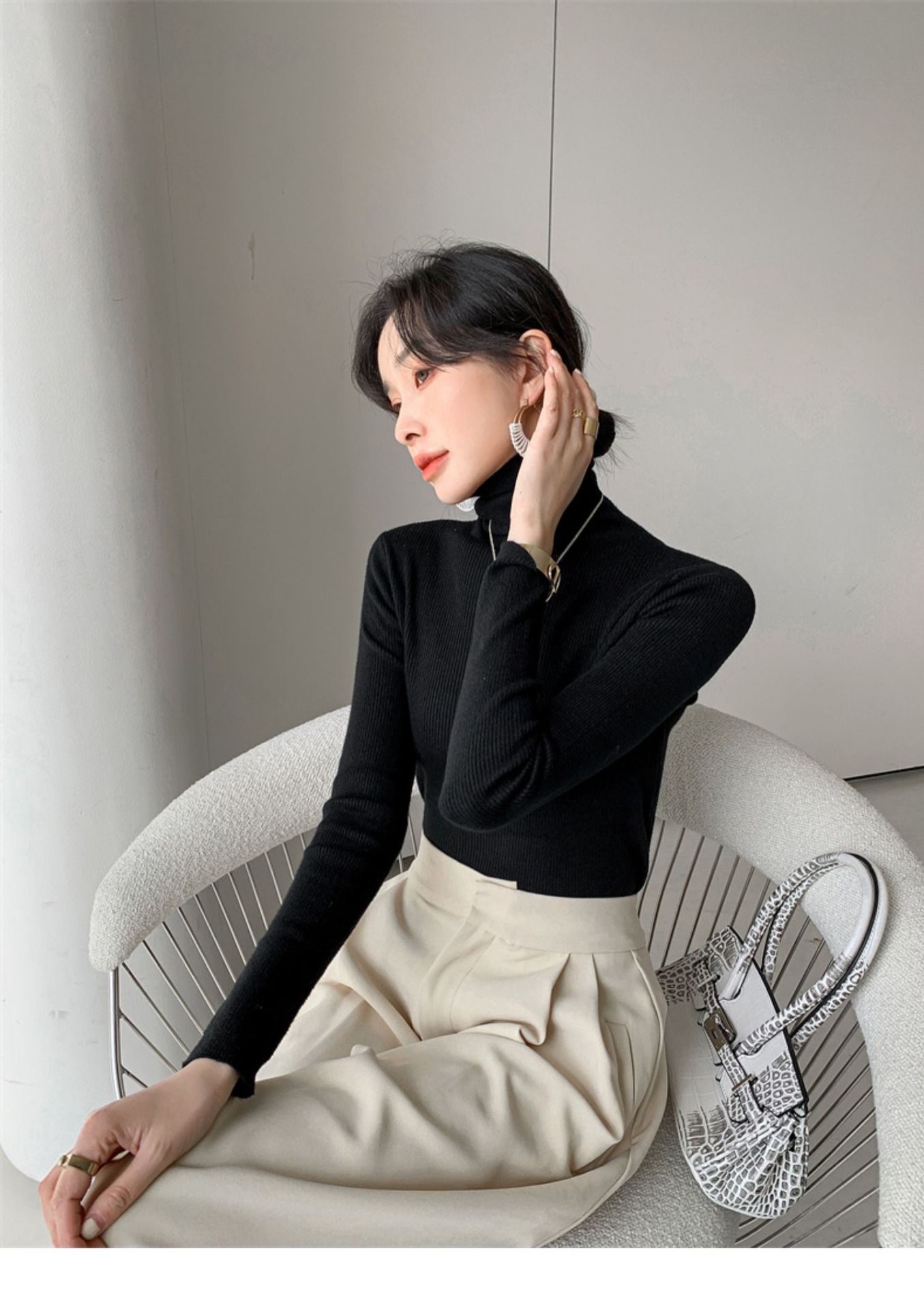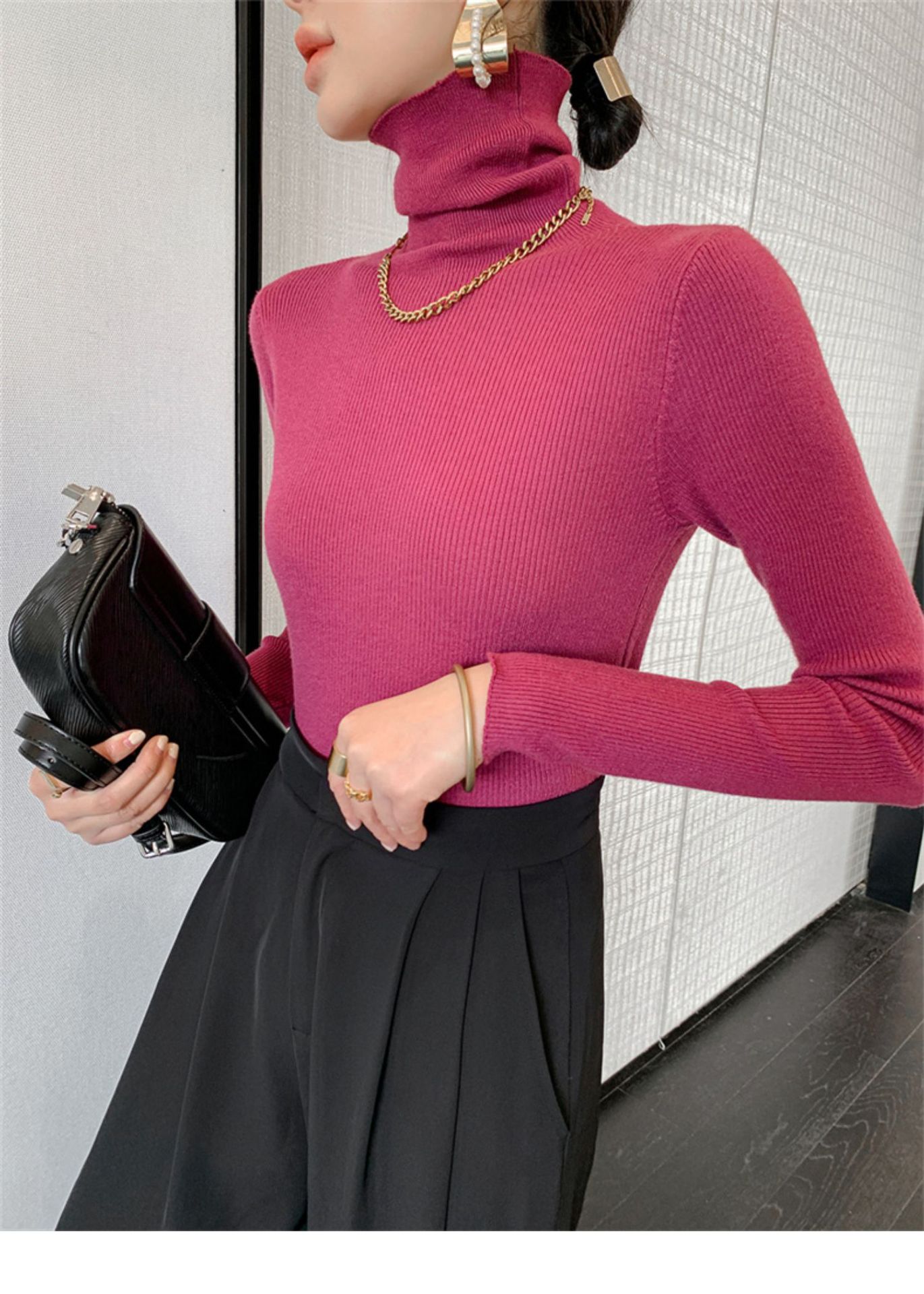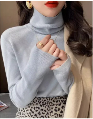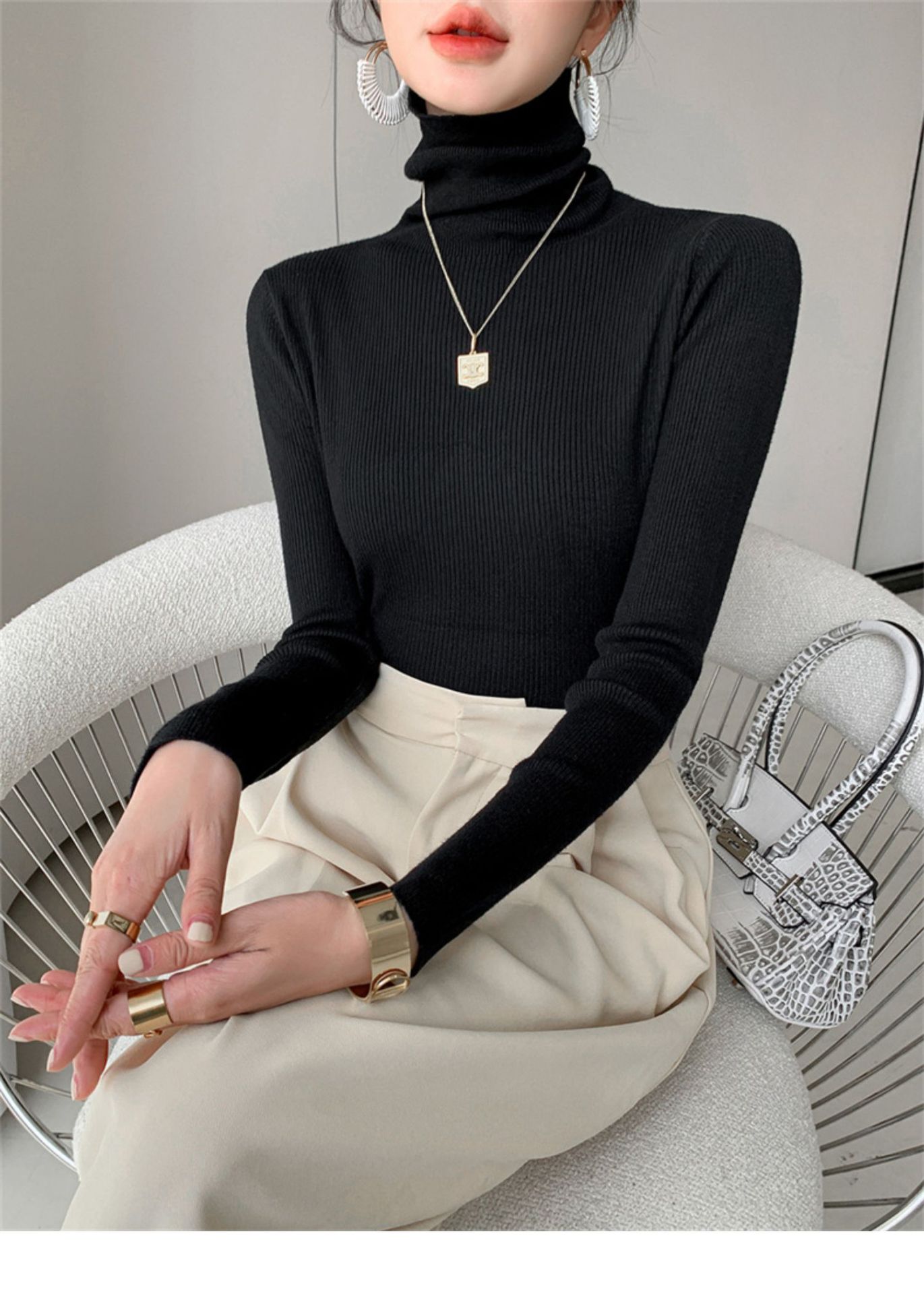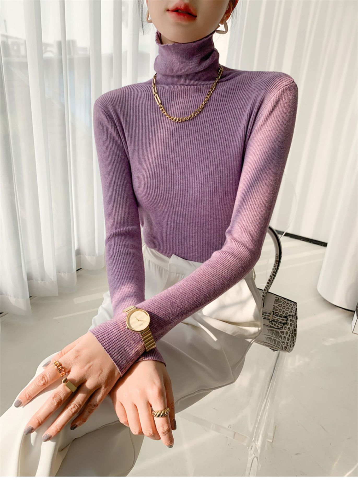 가을 새로운 여성 클라인 블루 더미 칼라베이스 셔츠 터틀넥 스웨터 타이트 핏 슬림 내부 탑