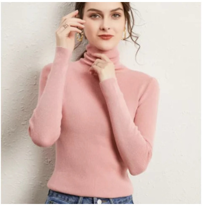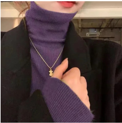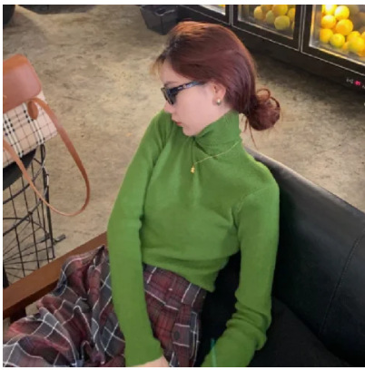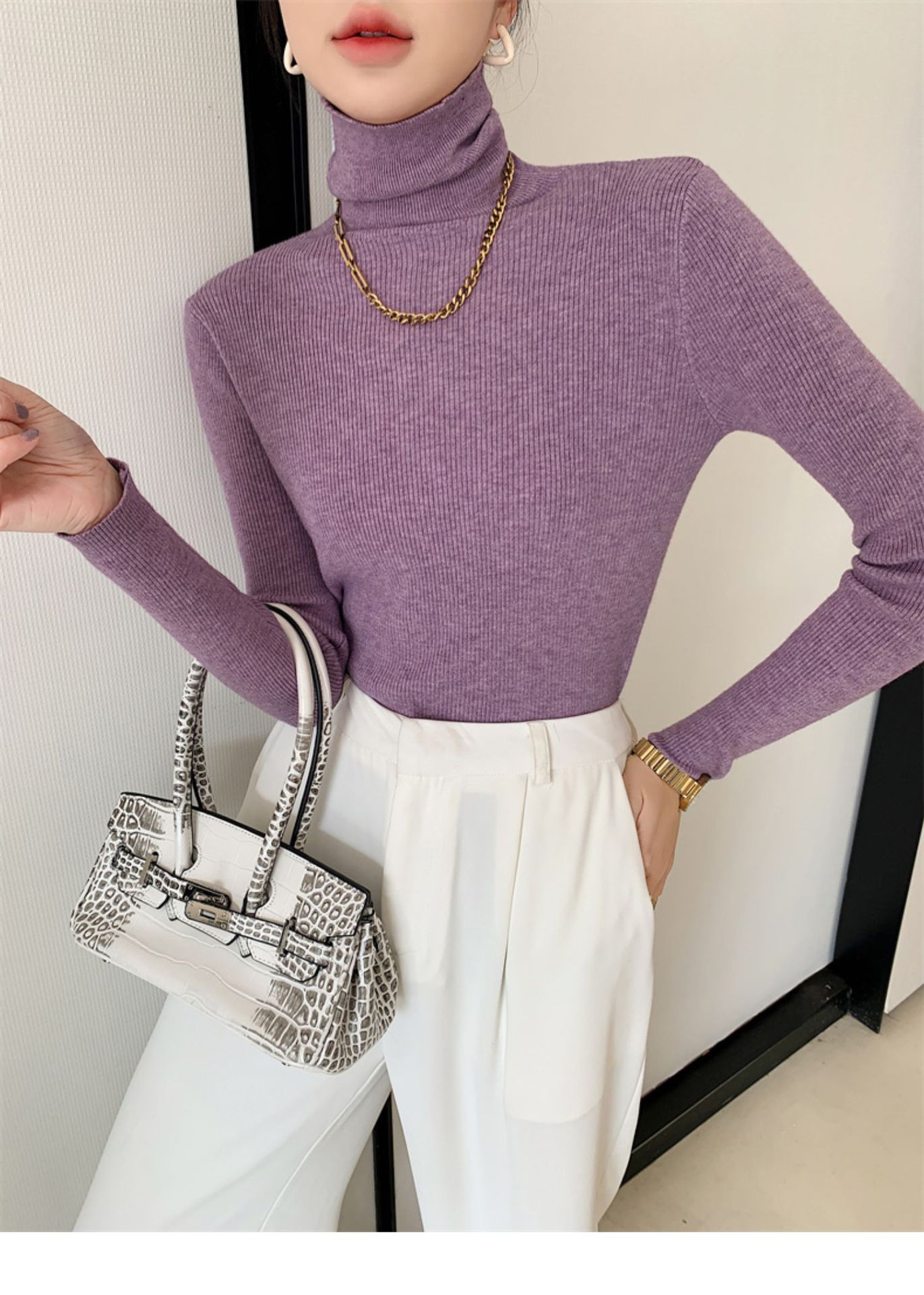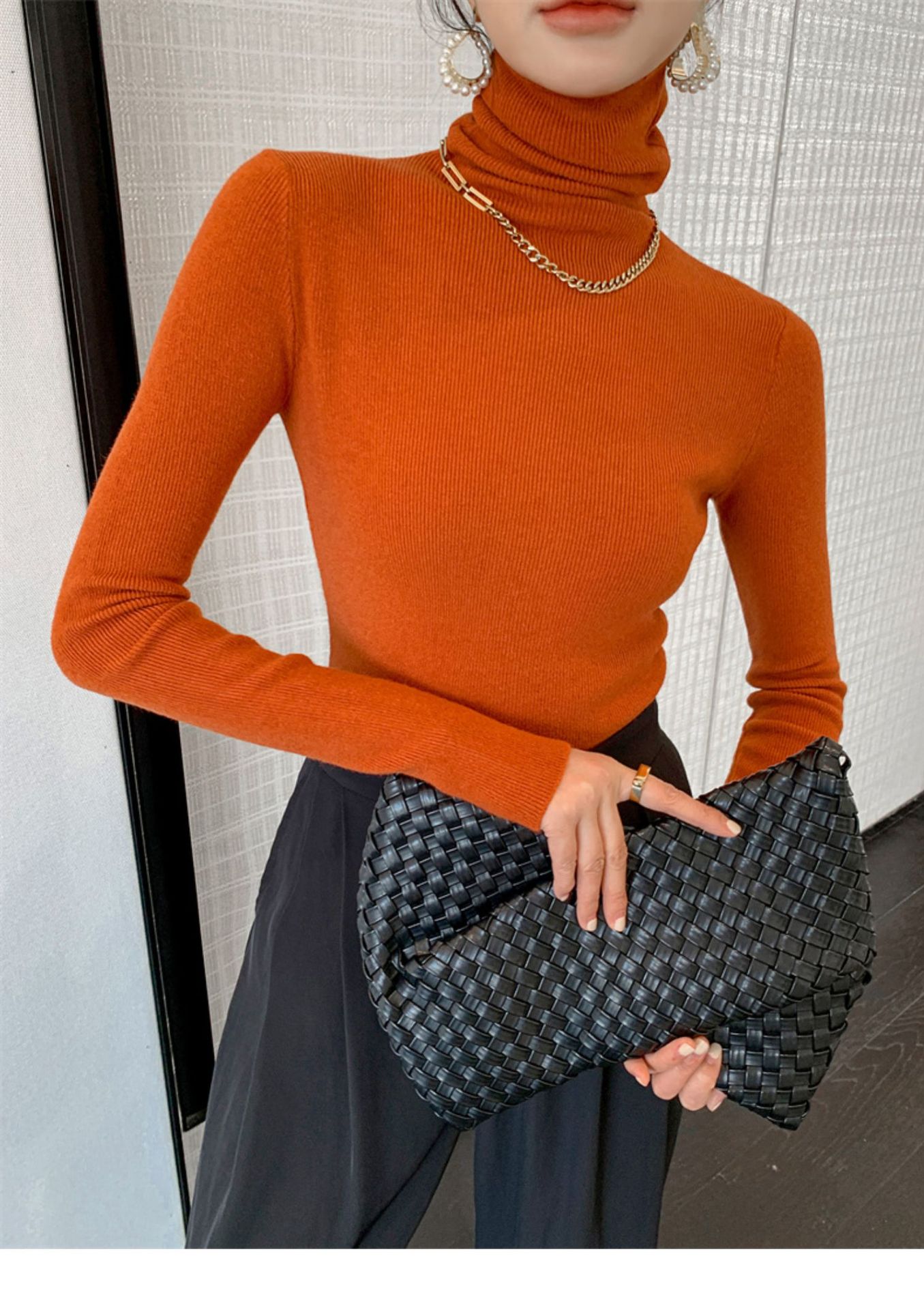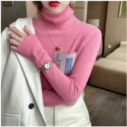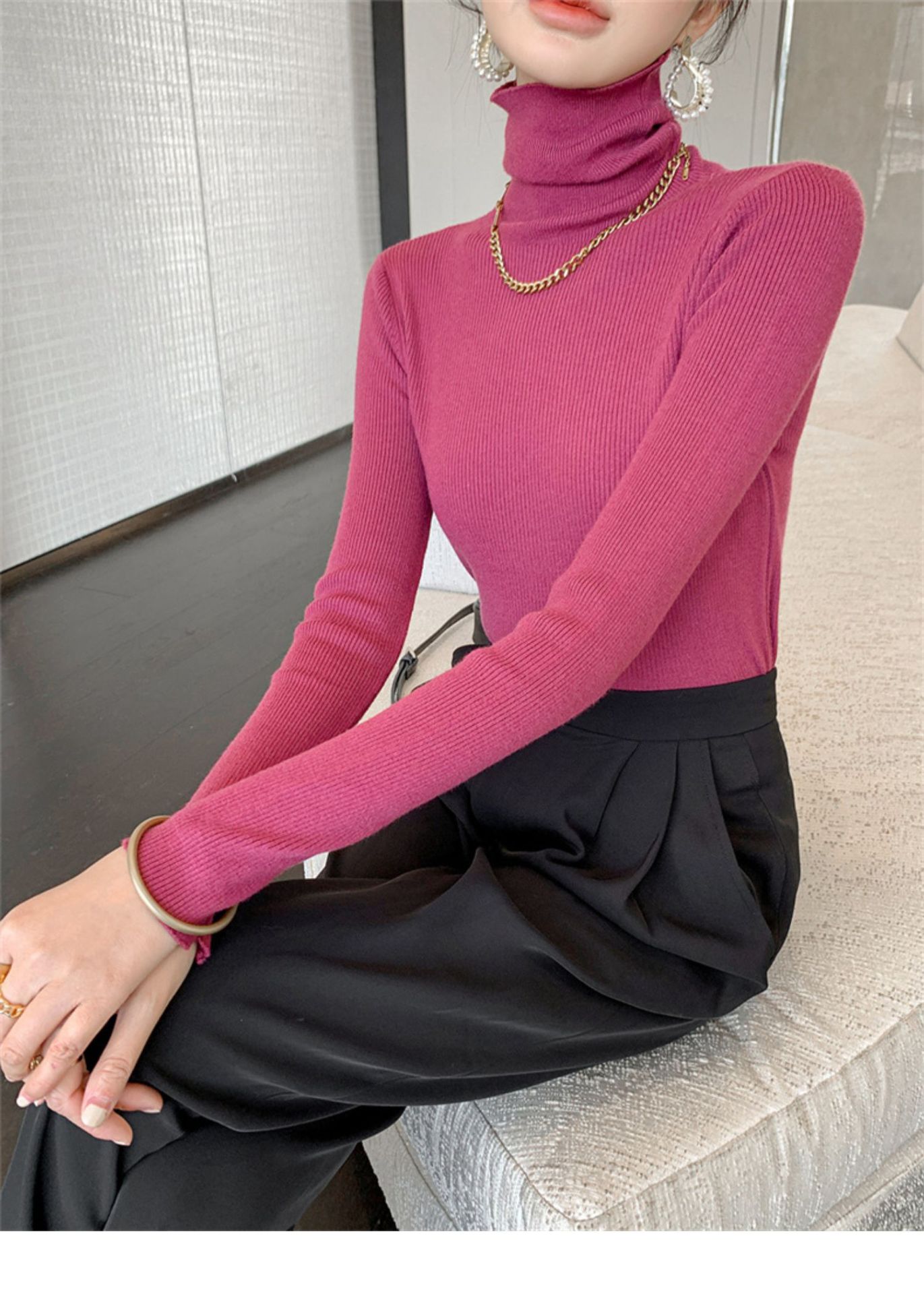 가을 새로운 여성 클라인 블루 더미 칼라베이스 셔츠 터틀넥 스웨터 타이트 핏 슬림 내부 탑