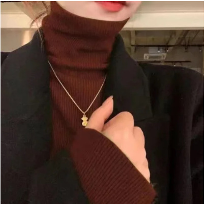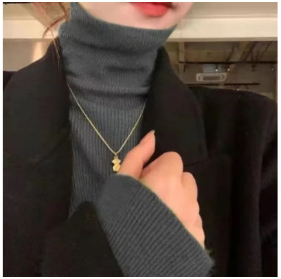 가을 새로운 여성 클라인 블루 더미 칼라베이스 셔츠 터틀넥 스웨터 타이트 핏 슬림 내부 탑스토어 가기