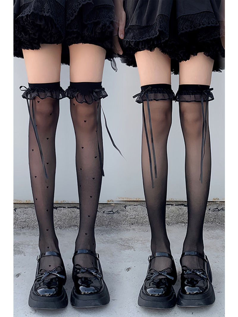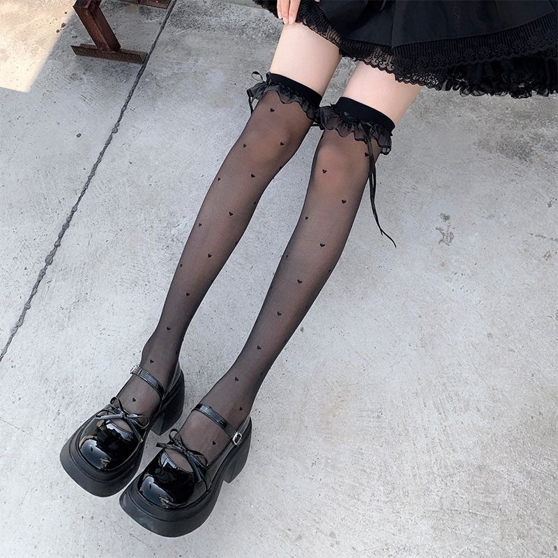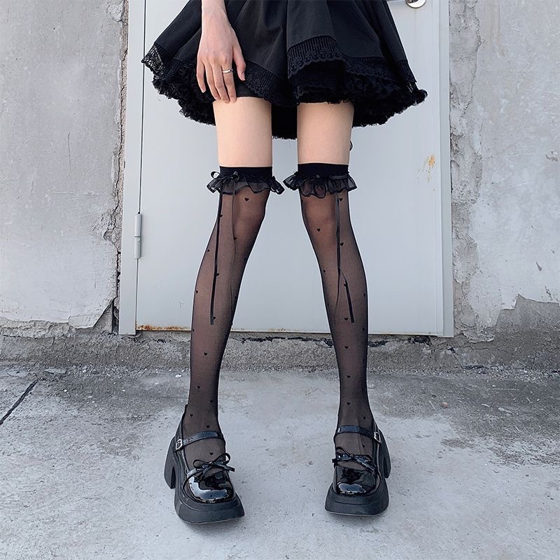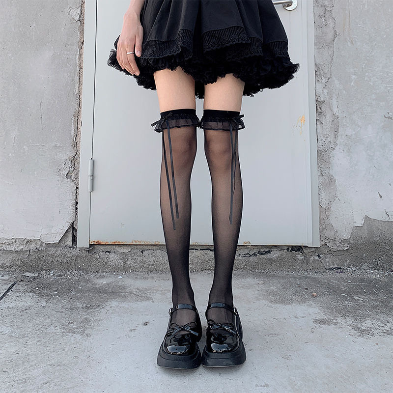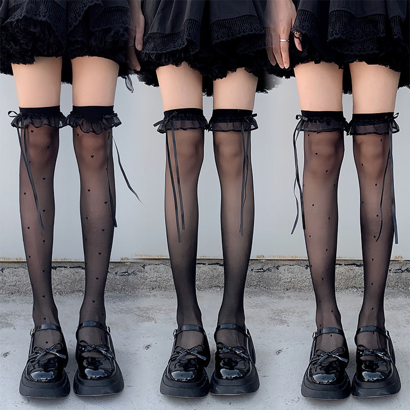 룸 블랙 실크 무릎 위 양말 여성 여름 얇은 레이스 양말 슬림 섹시한 jk 종아리 양말스토어 가기
