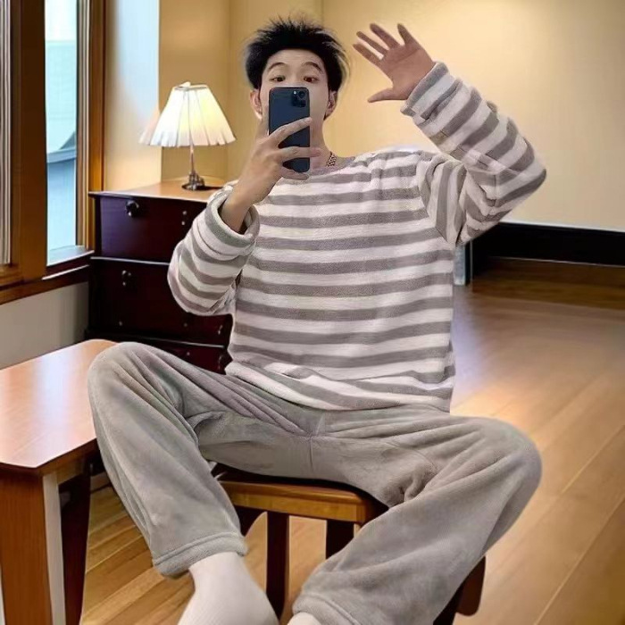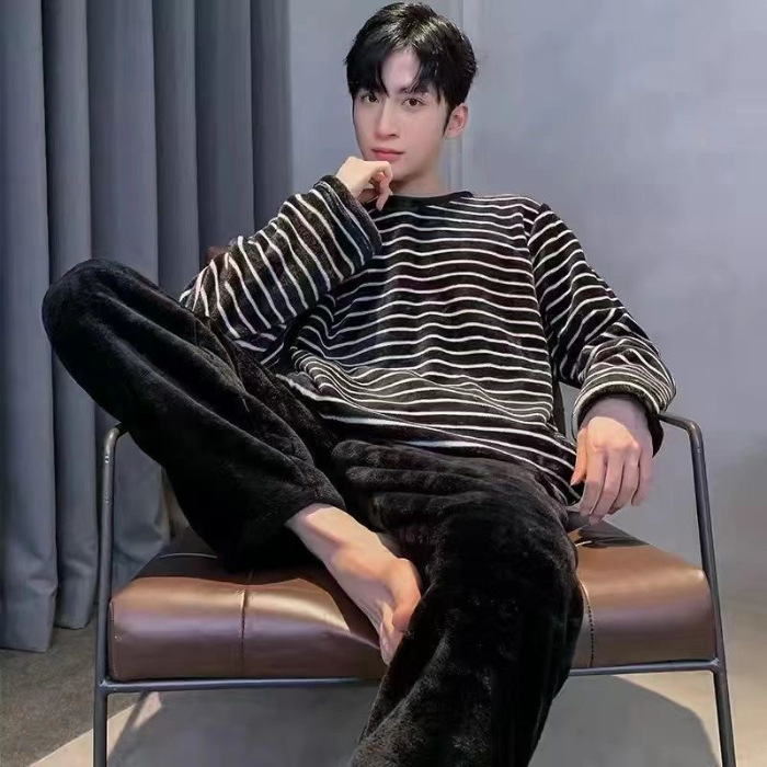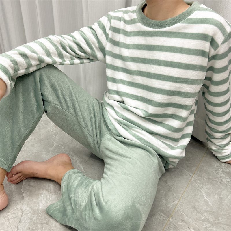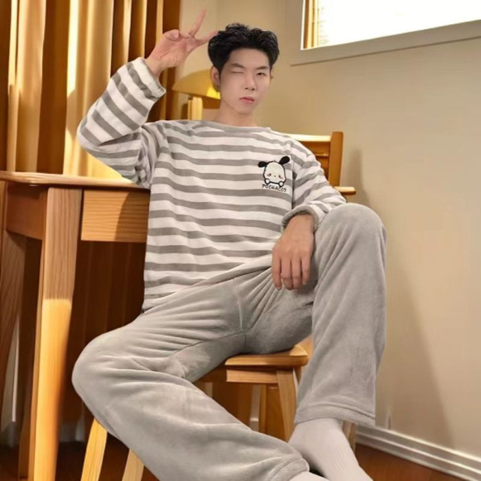 패션 세트 공장 직접 남성 잠옷 가을과 겨울 산호 양털 패딩 만화 플란넬 홈 의류 세트