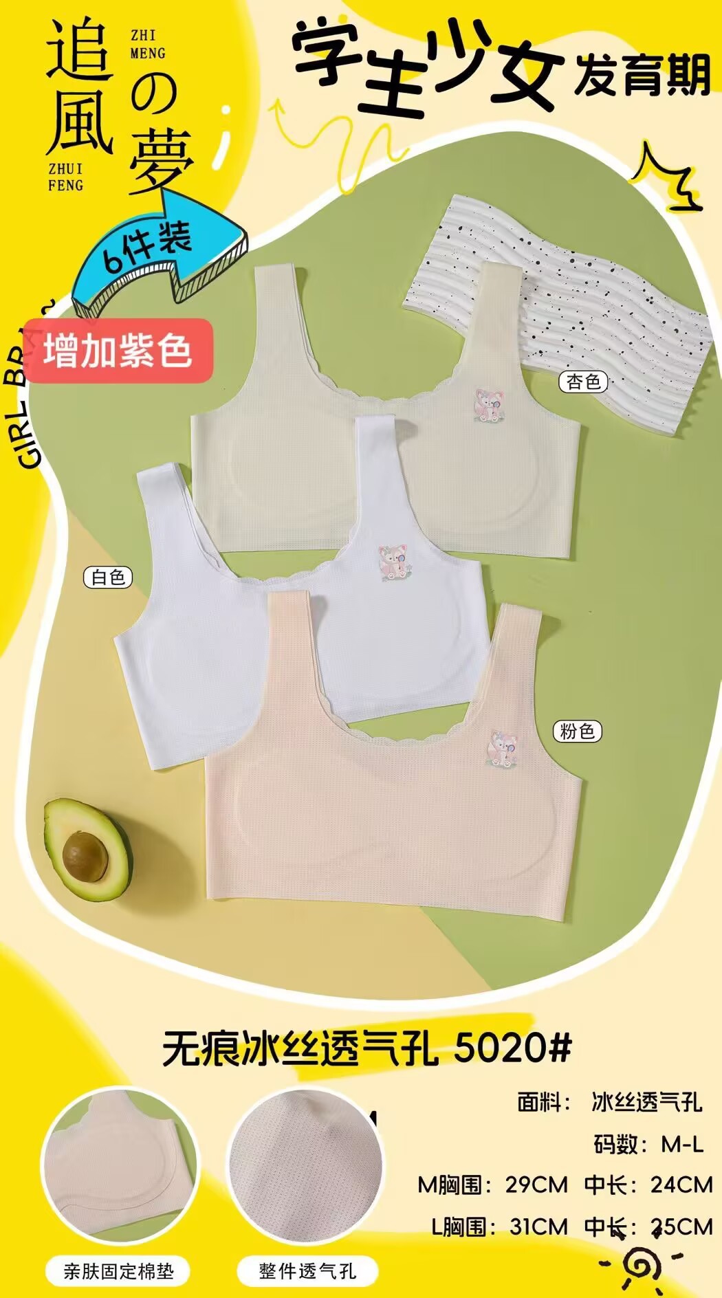 흔적 없는 아이스 실크 여아 속옷 브라 얇은 모델 성장기 학생 소녀용 여름 통기성 조끼형 탑스토어 가기