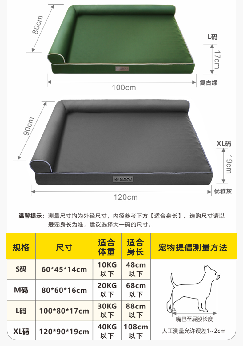CROCI Kennel Four Seasons Universal Pet Sofa Bed 분리 가능하고 세척 가능한 겨울 개 매트 슬립 매트 겨울 따뜻한 큰 개스토어 가기