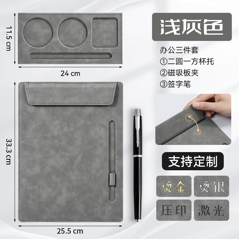 • [업그레이드 모델] A4 보드 클립 - 라이트 그레이 + 컵홀더 + 메탈 시그니처 펜 세트
