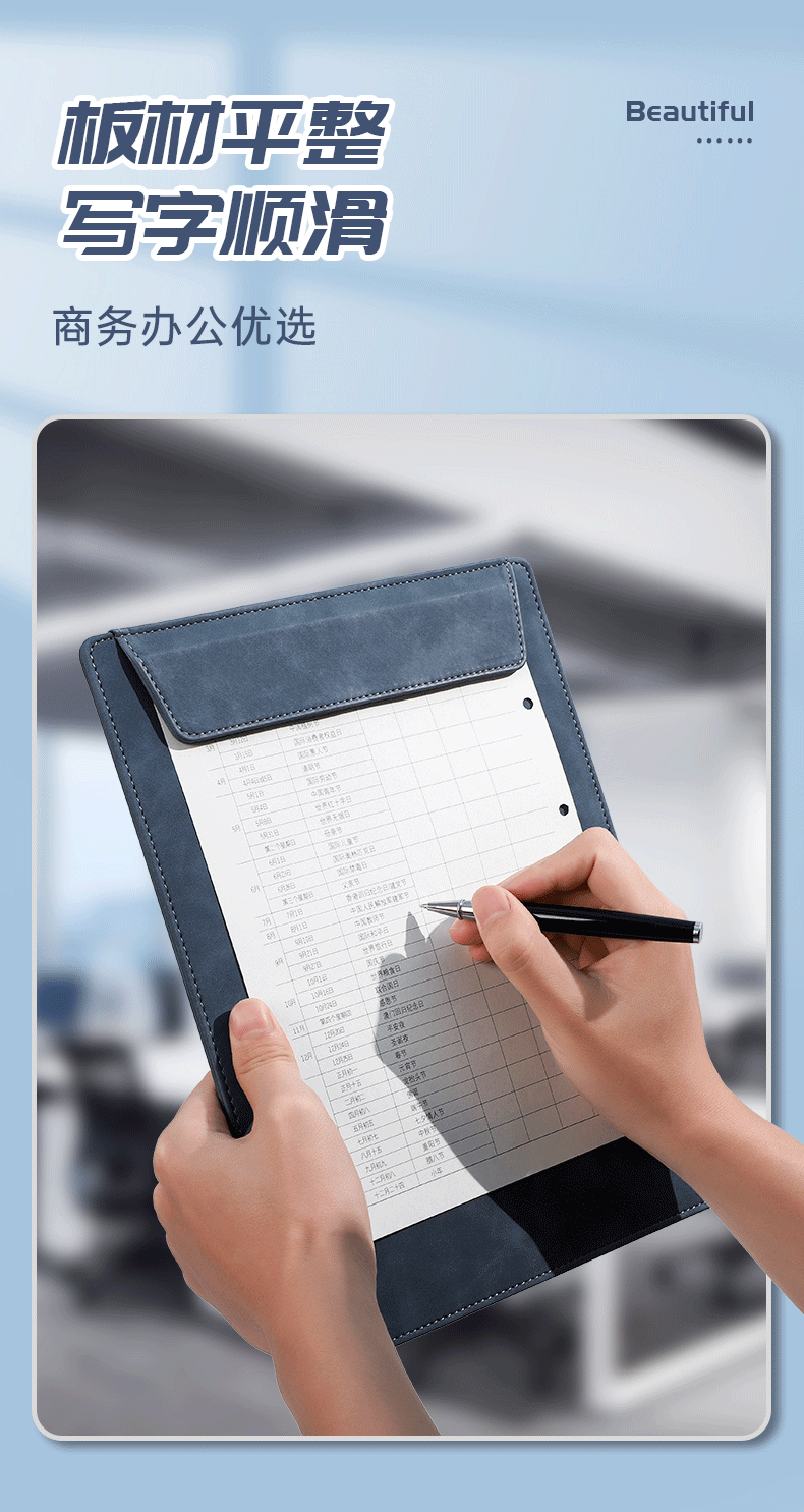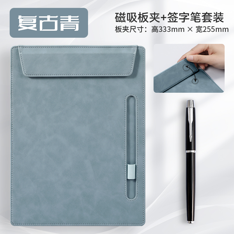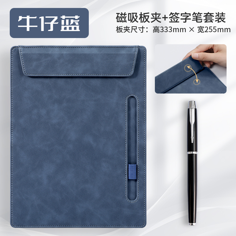 • [업그레이드 모델] A4 보드 클립 - 데님 블루 + 메탈 시그니처 펜 세트