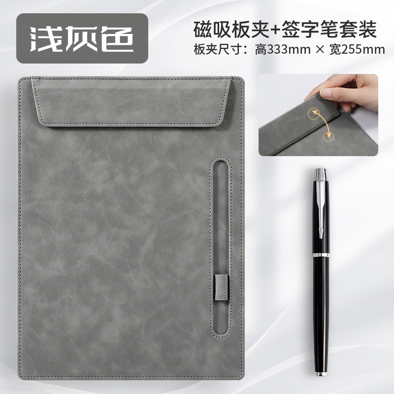 • [업그레이드 모델] A4 보드 클립 - 라이트 그레이 + 메탈 시그니처 펜 세트