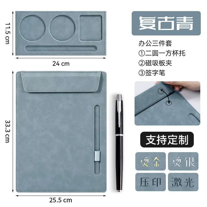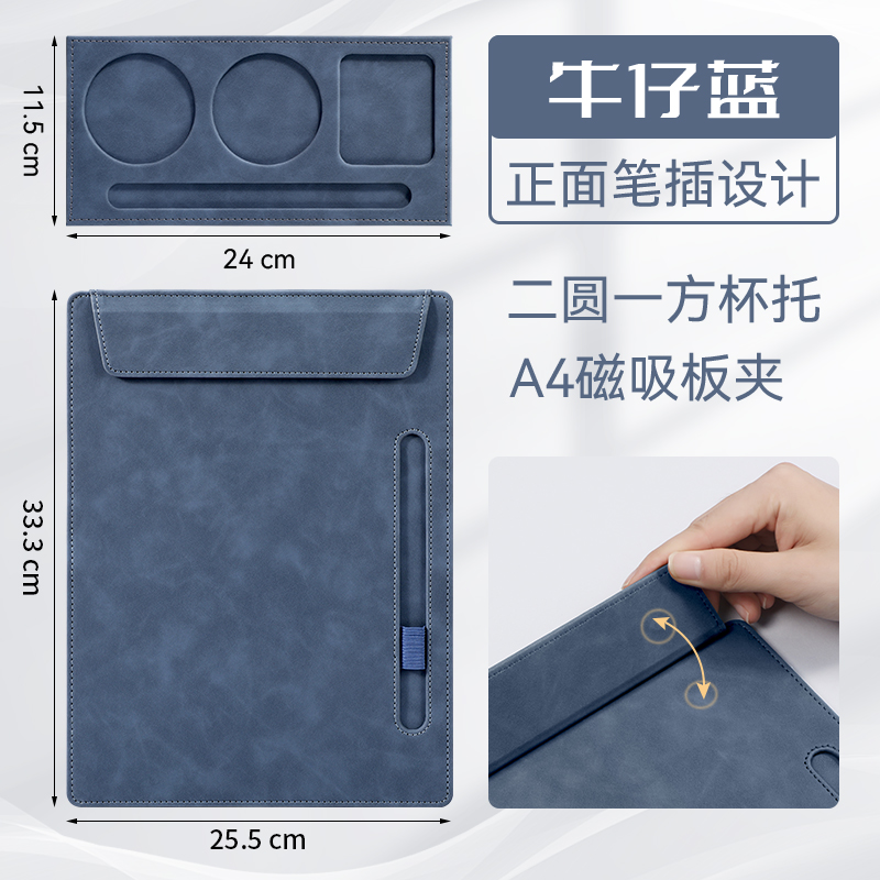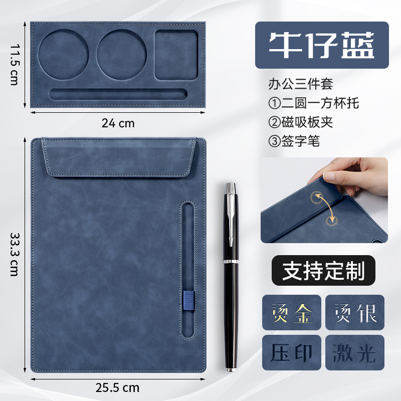 • [업그레이드 모델] A4 플레이트 클립 - 데님 블루 + 컵홀더 + 메탈 시그니처 펜 세트