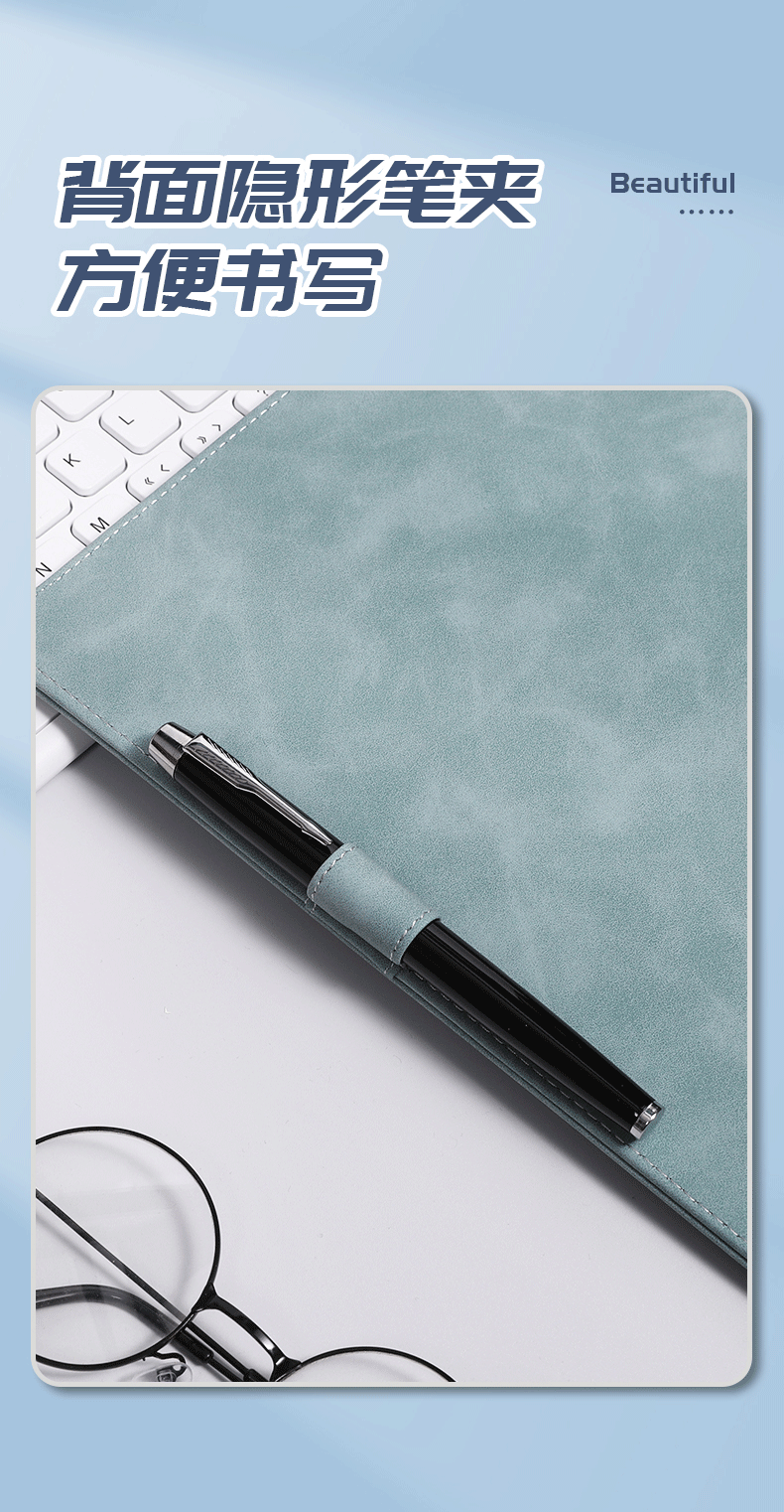 • A4 뉴 플레이트 클립 - 데님 블루 + 시그니처 메탈 펜 세트