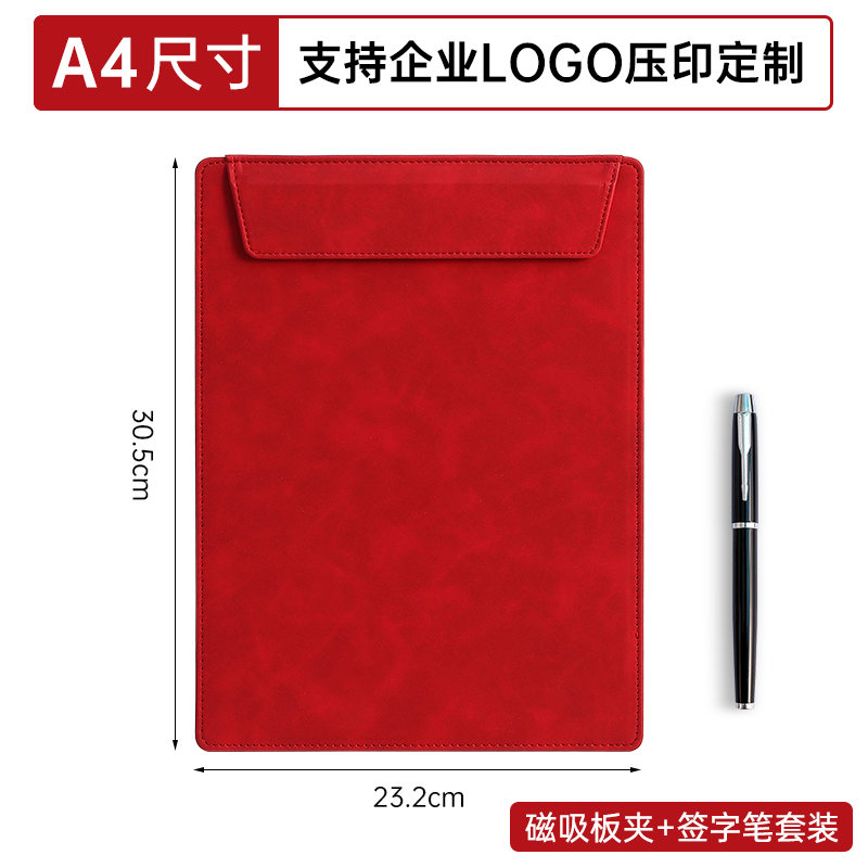 • A4 뉴 플레이트 클립 - 차이니즈 레드 + 시그니처 메탈 펜 세트