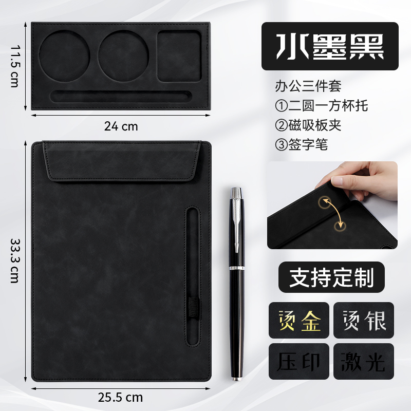 • [업그레이드 모델] A4 플레이트 클립 - 잉크 블랙 + 컵홀더 + 메탈 시그니처 펜 세트