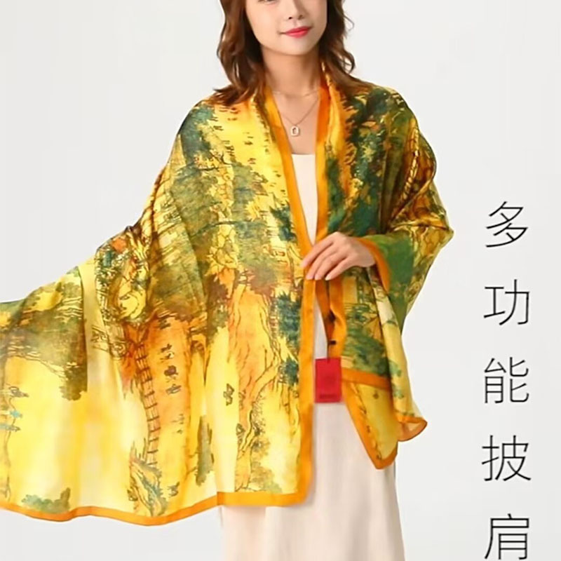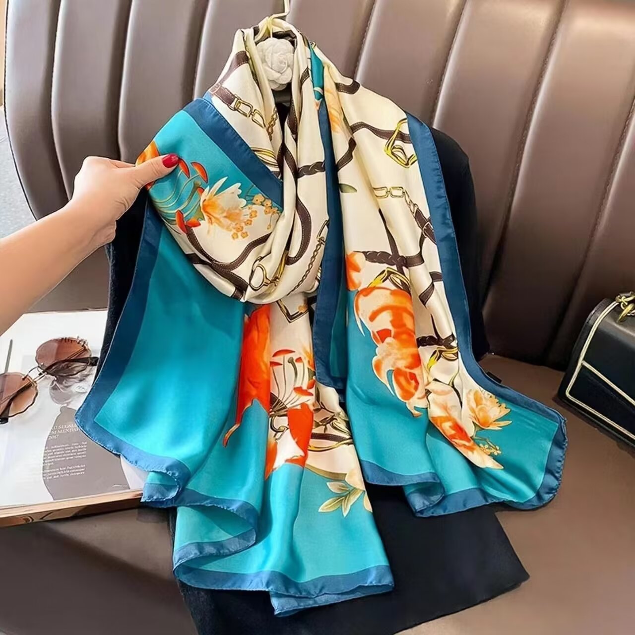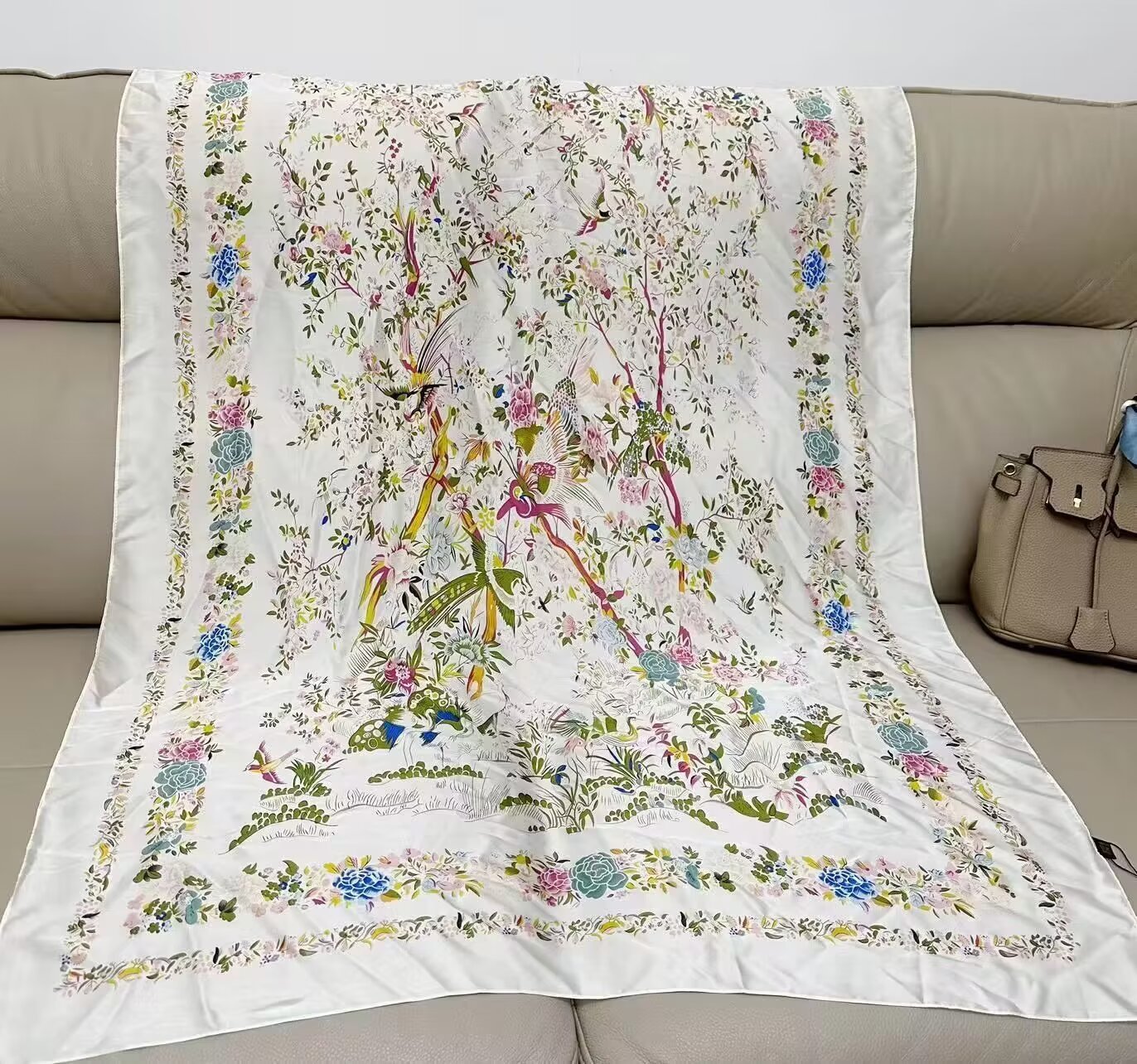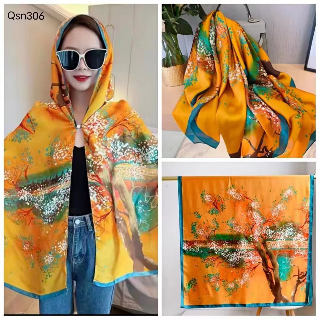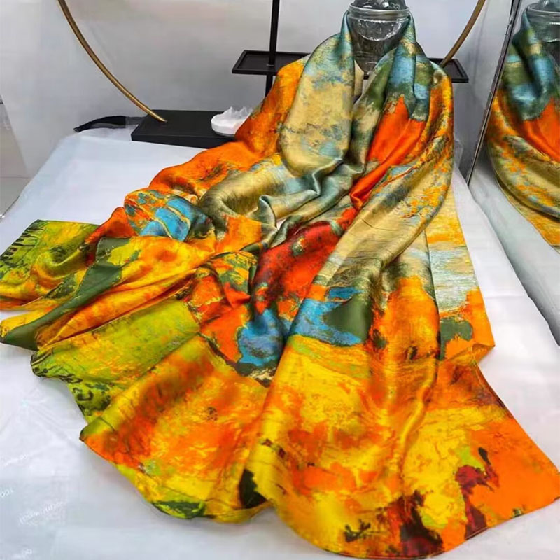 새로운 모조 실크 브로케이드 새틴 야외 목도리 선 스크린 비치 타월 에어컨 프린트 스카프 여성 도매스토어 가기