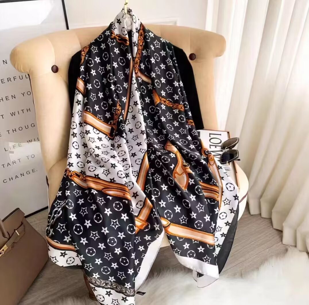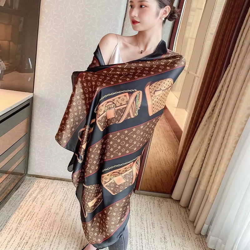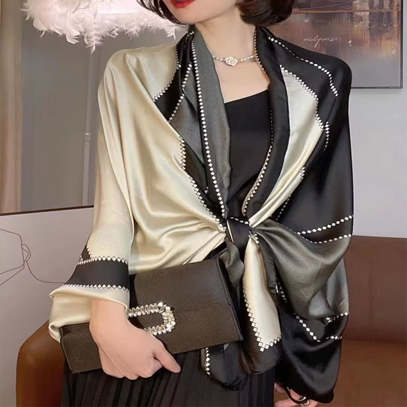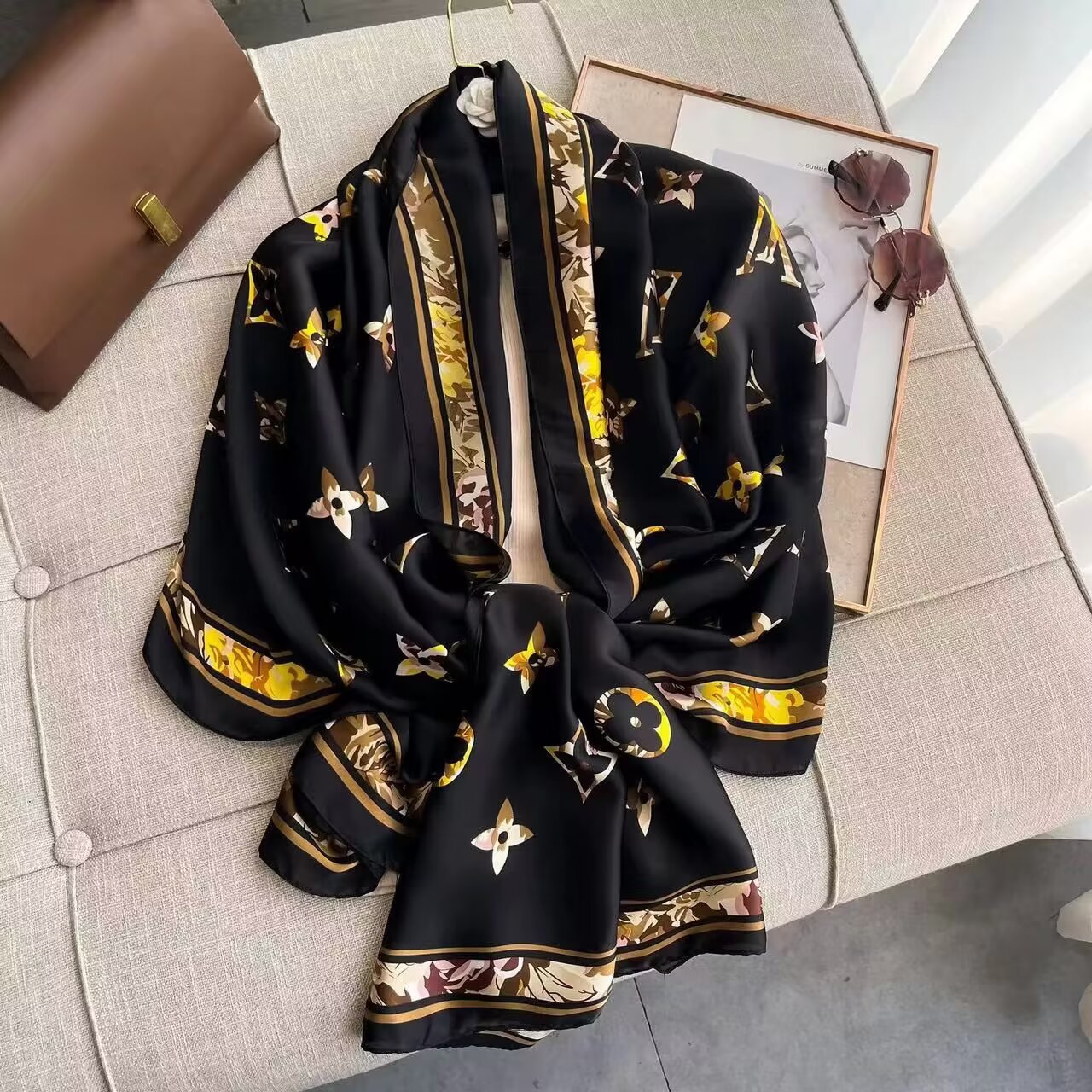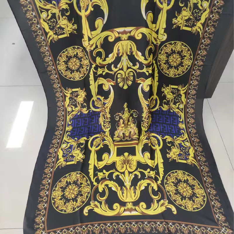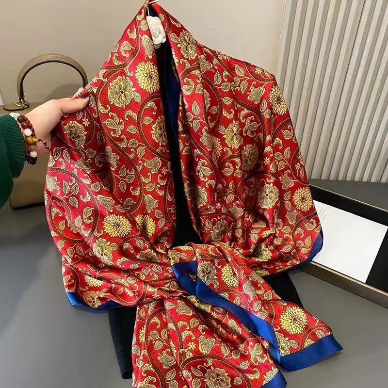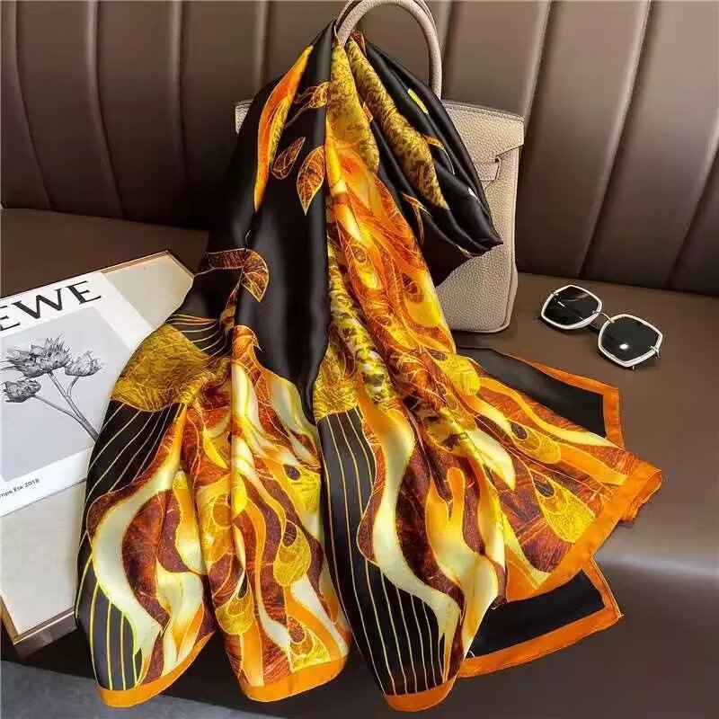 새로운 모조 실크 브로케이드 새틴 야외 목도리 선 스크린 비치 타월 에어컨 프린트 스카프 여성 도매
