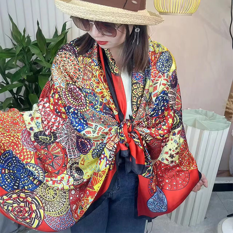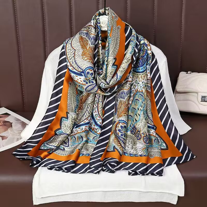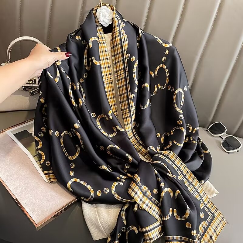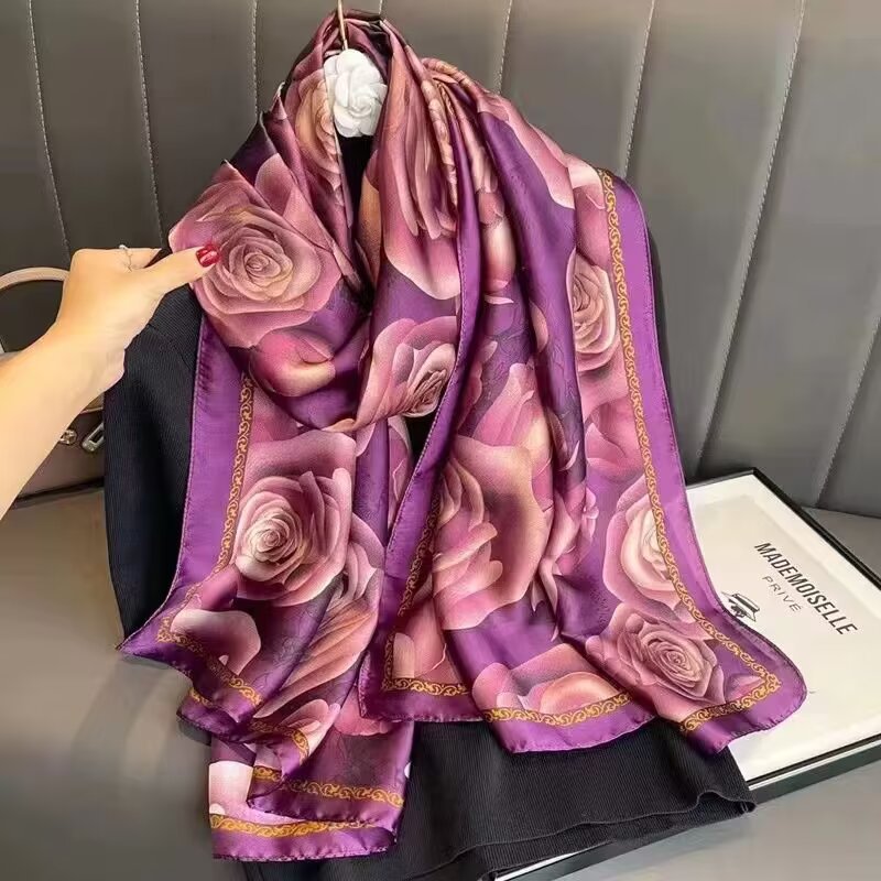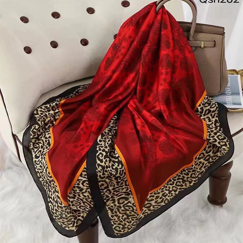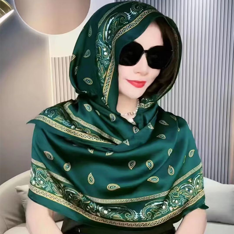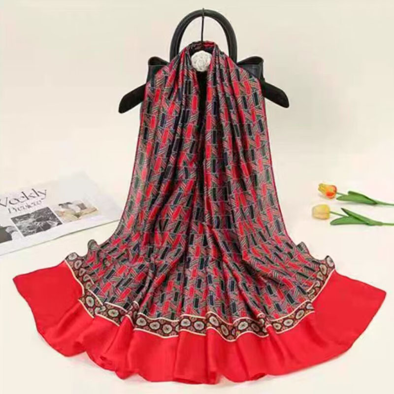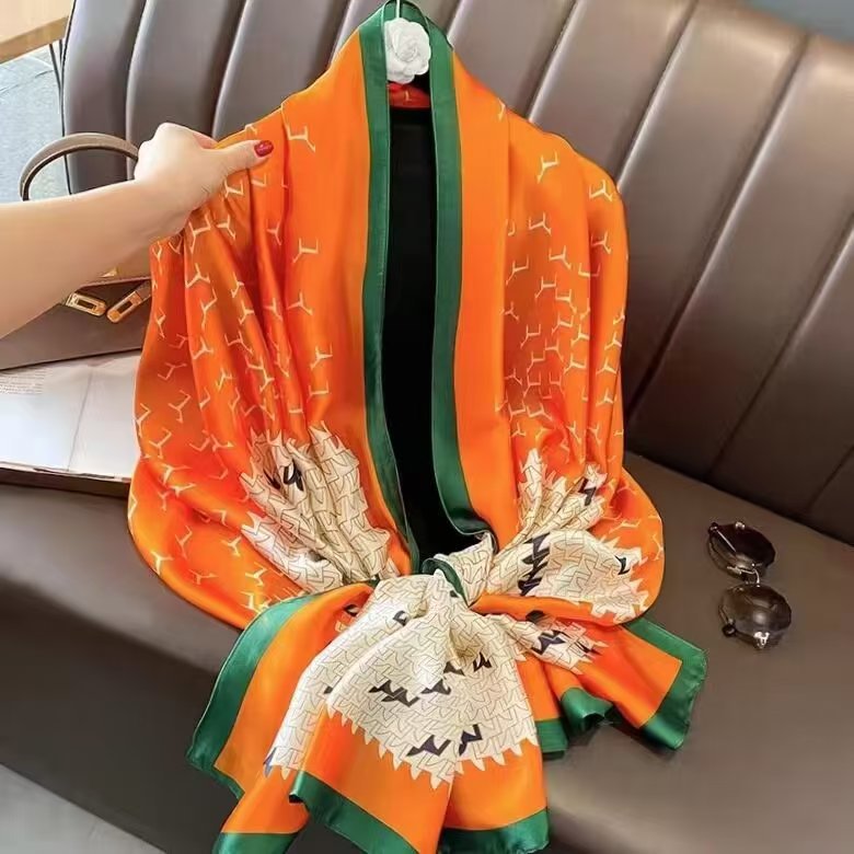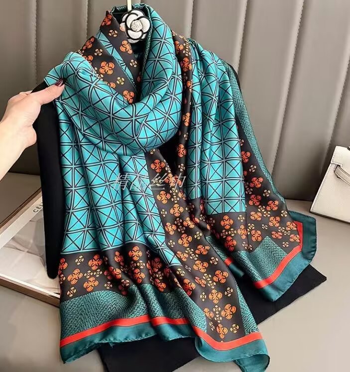 새로운 모조 실크 브로케이드 새틴 야외 목도리 선 스크린 비치 타월 에어컨 프린트 스카프 여성 도매