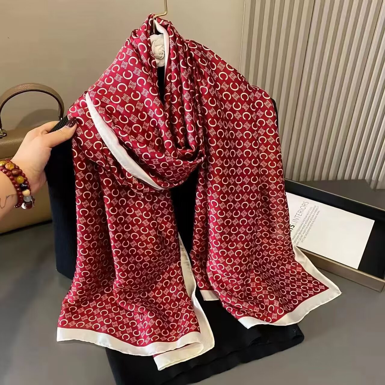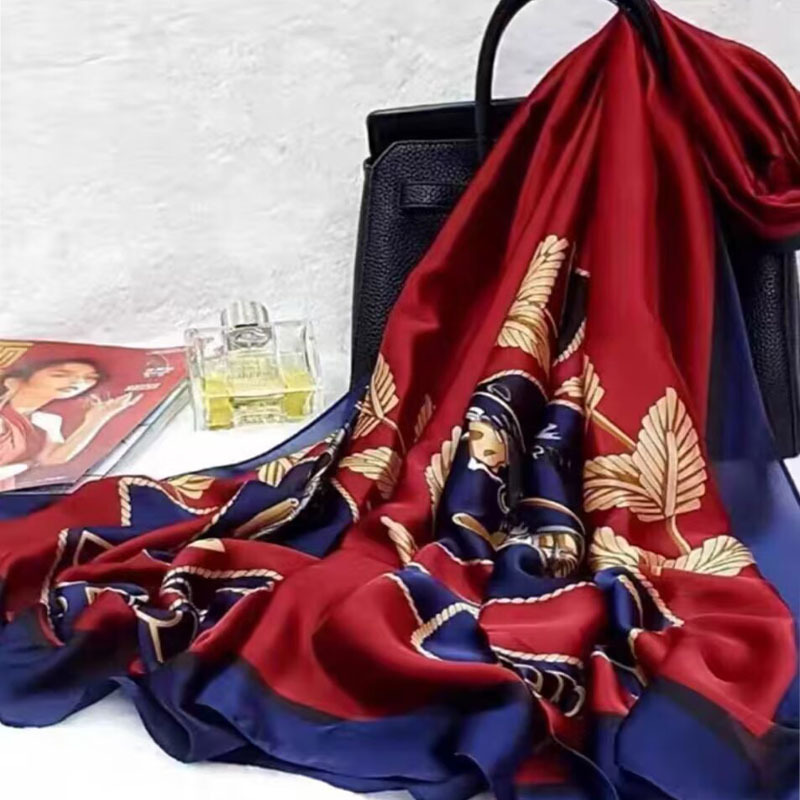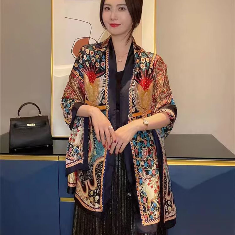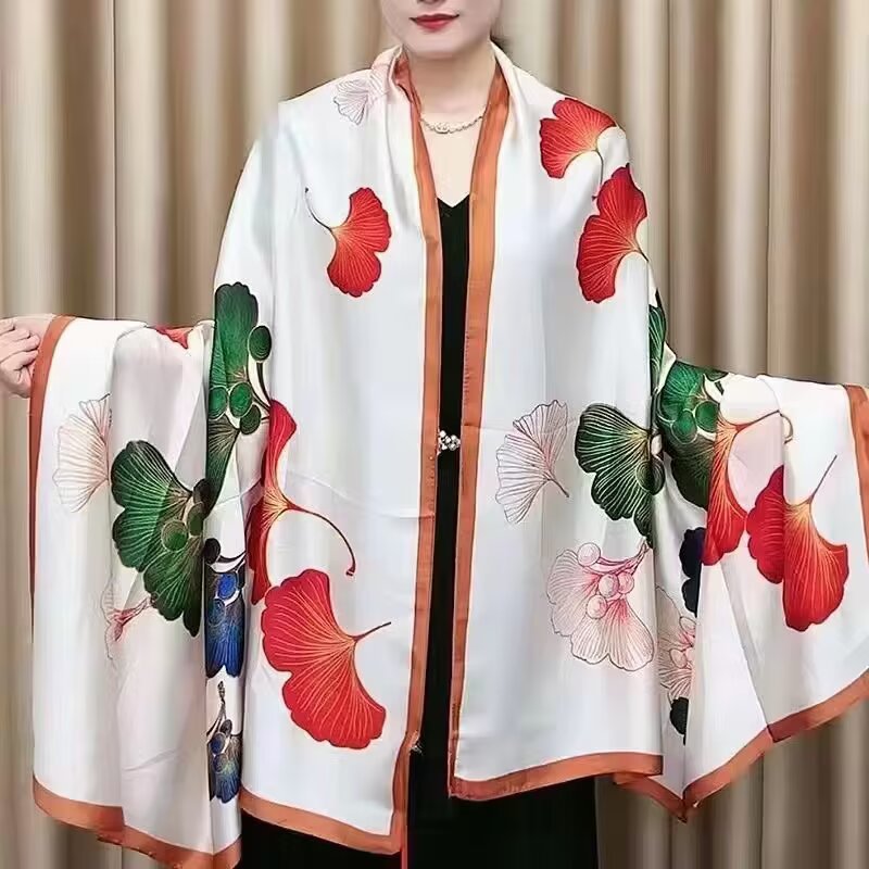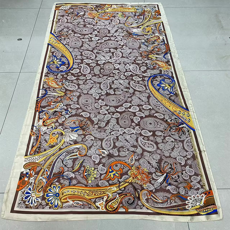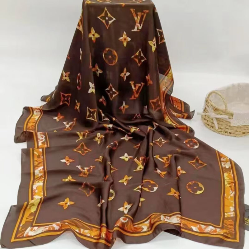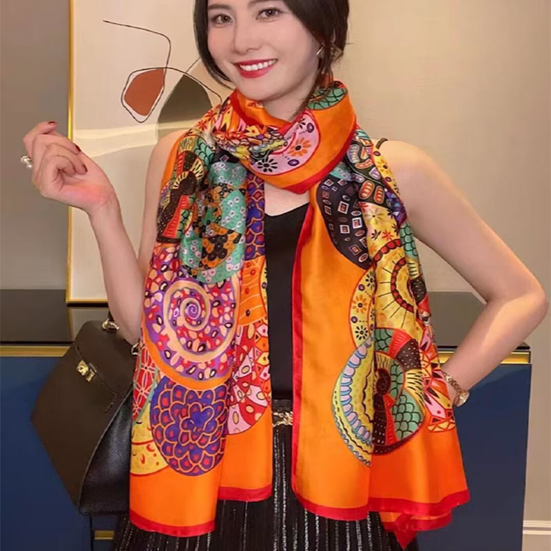 새로운 모조 실크 브로케이드 새틴 야외 목도리 선 스크린 비치 타월 에어컨 프린트 스카프 여성 도매