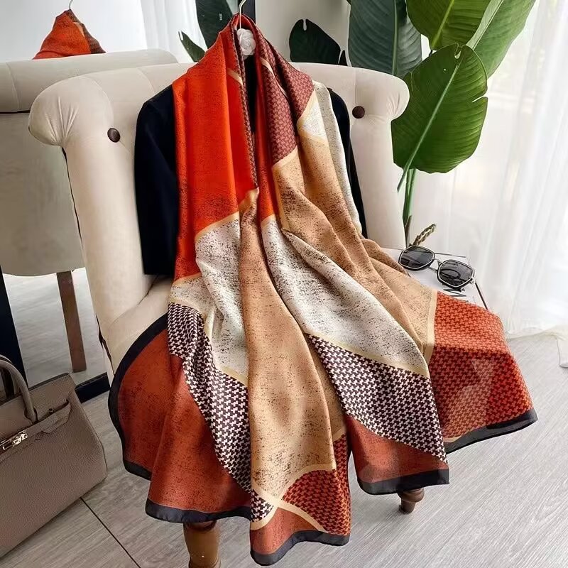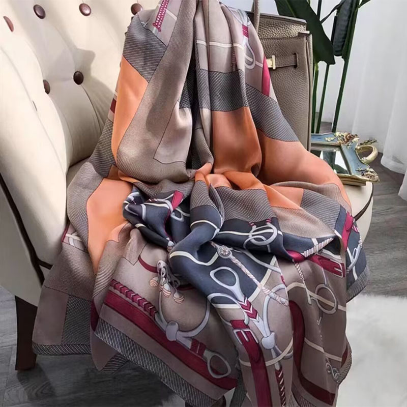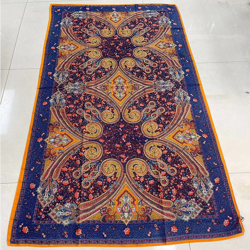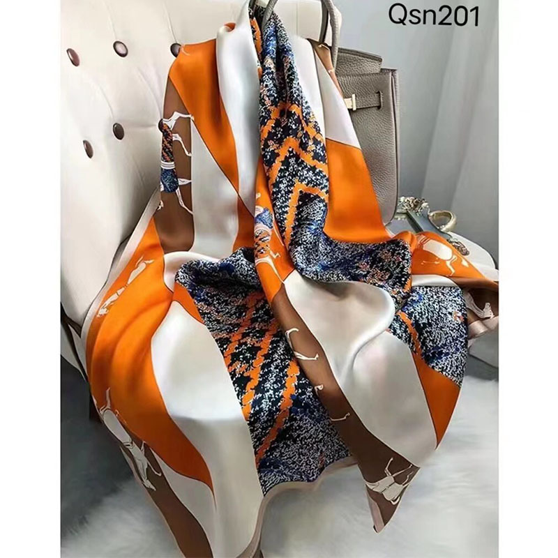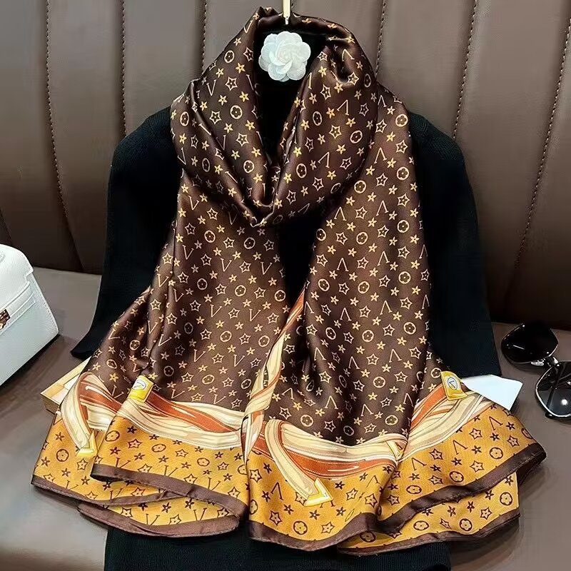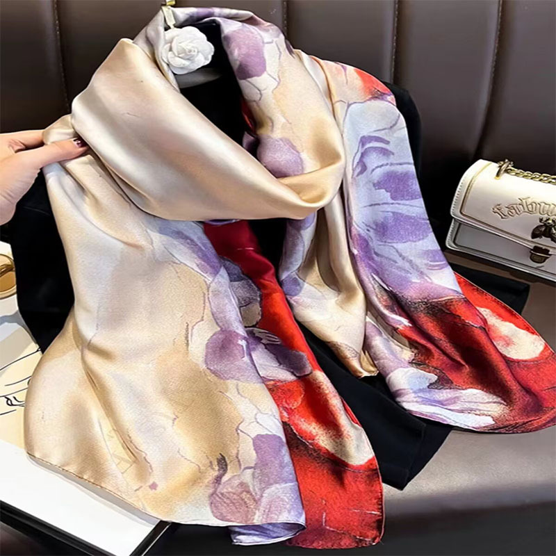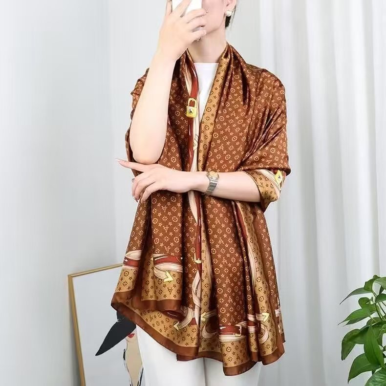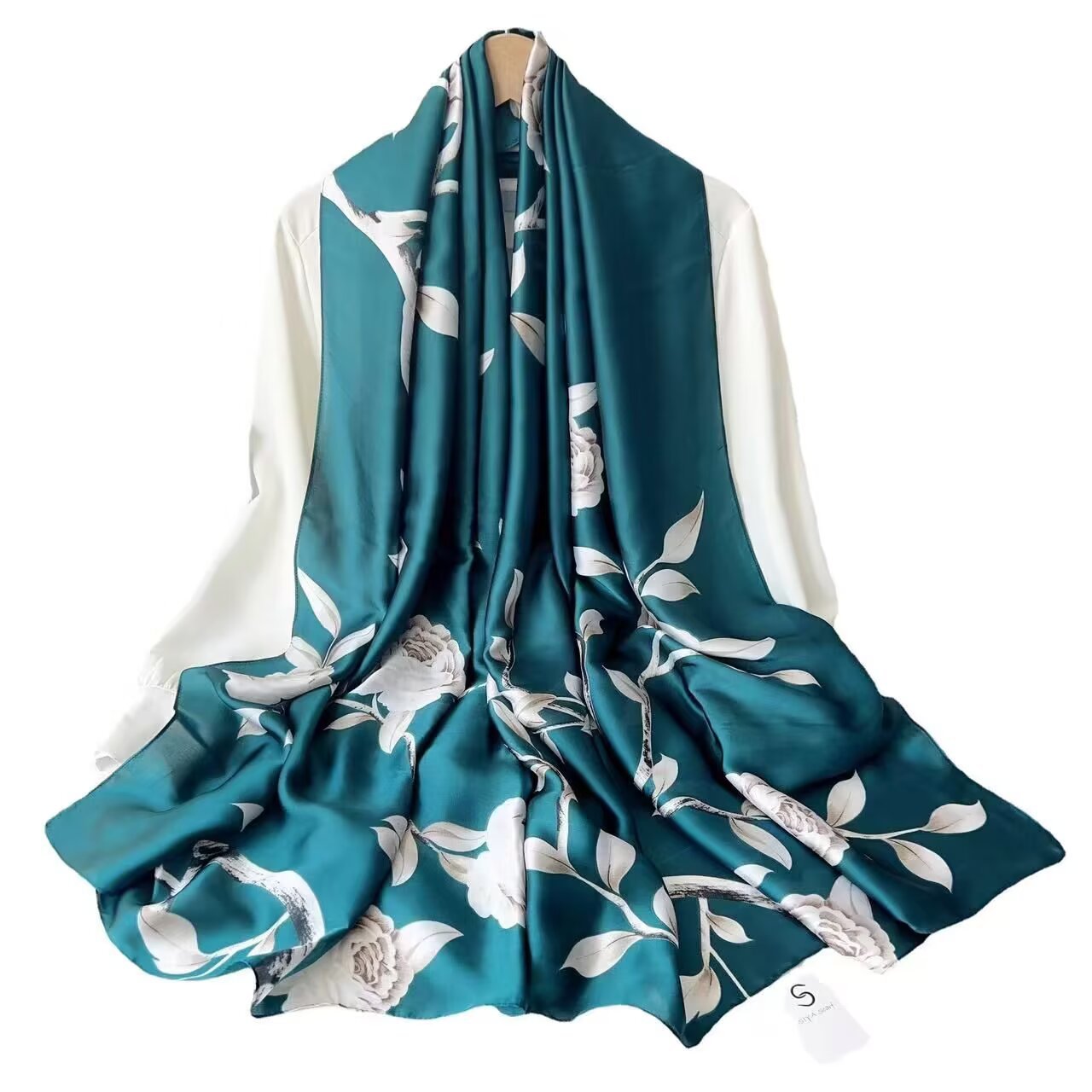 새로운 모조 실크 브로케이드 새틴 야외 목도리 선 스크린 비치 타월 에어컨 프린트 스카프 여성 도매