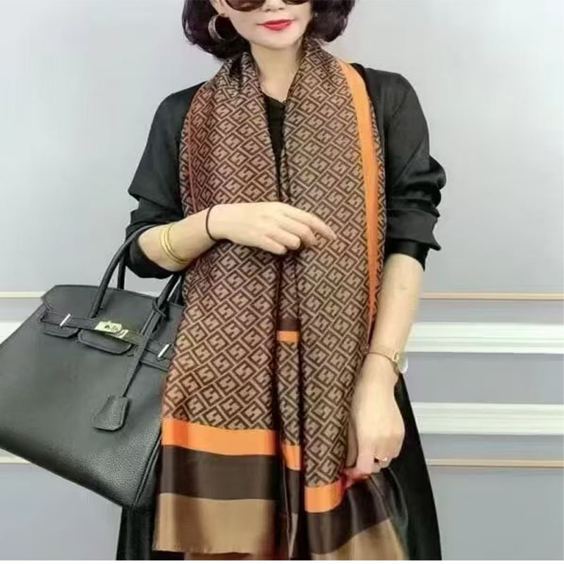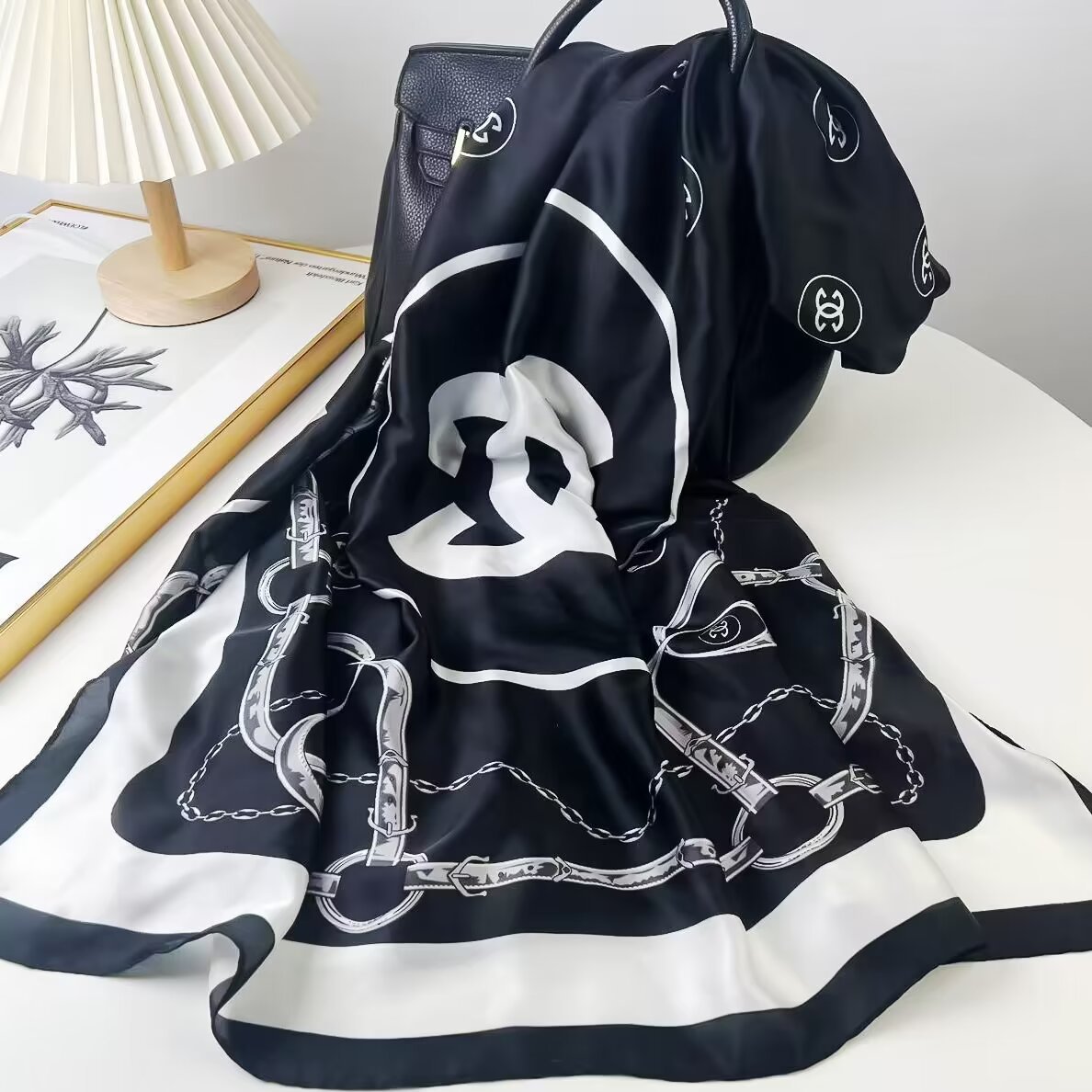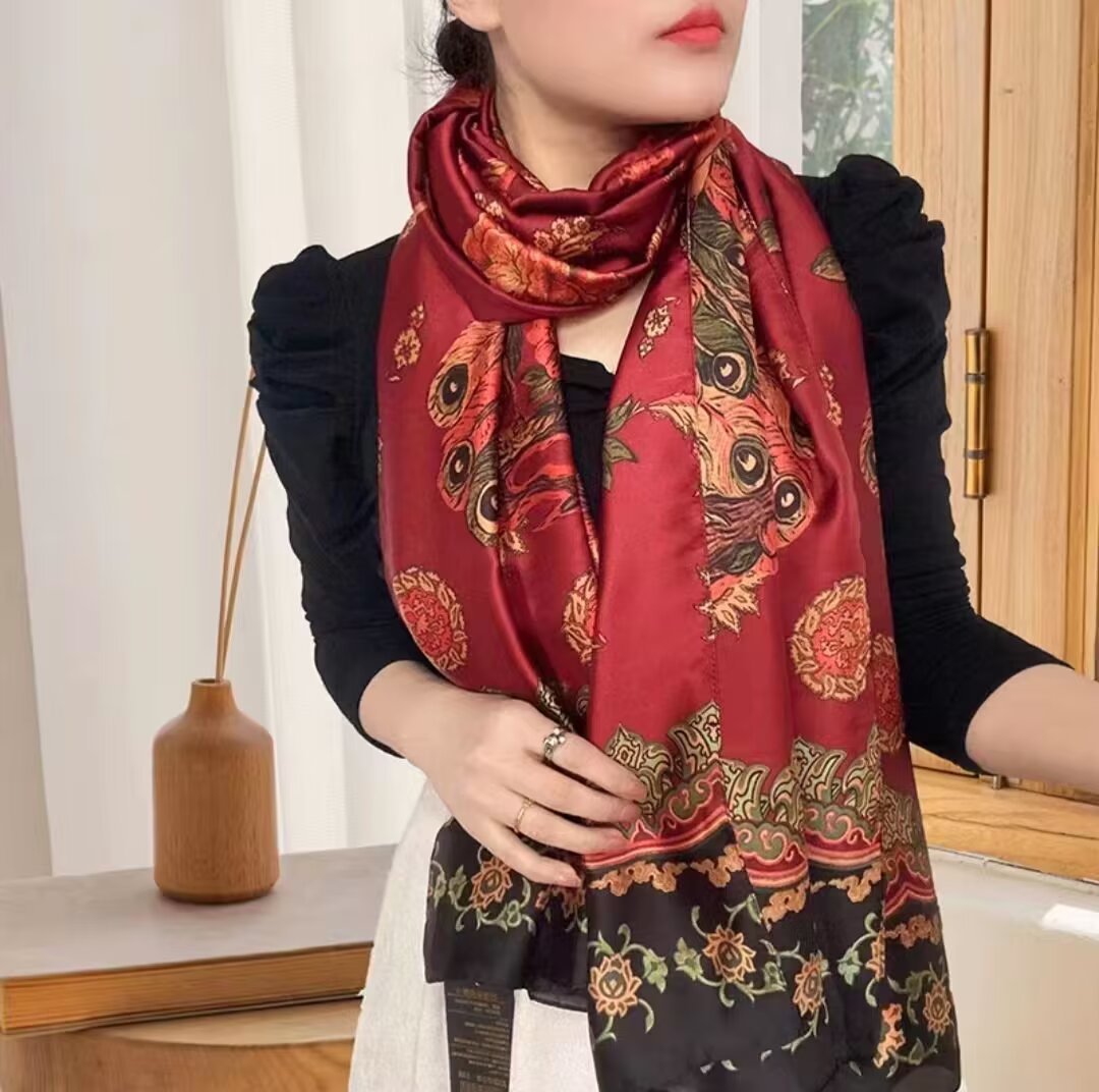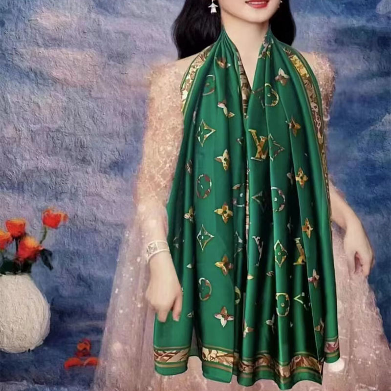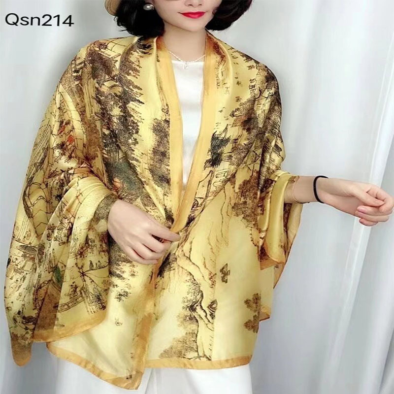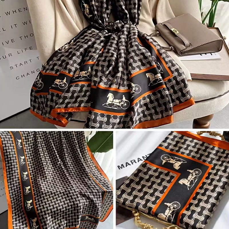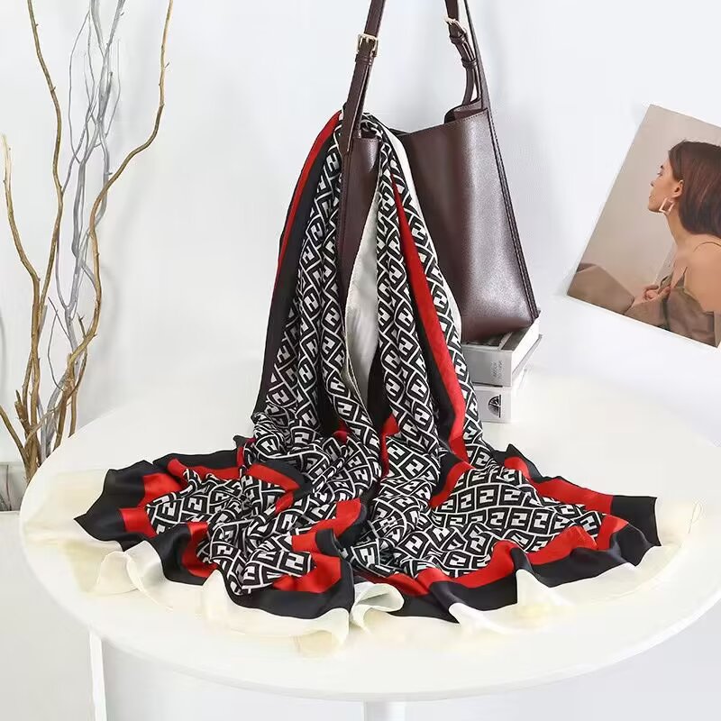 새로운 모조 실크 브로케이드 새틴 야외 목도리 선 스크린 비치 타월 에어컨 프린트 스카프 여성 도매