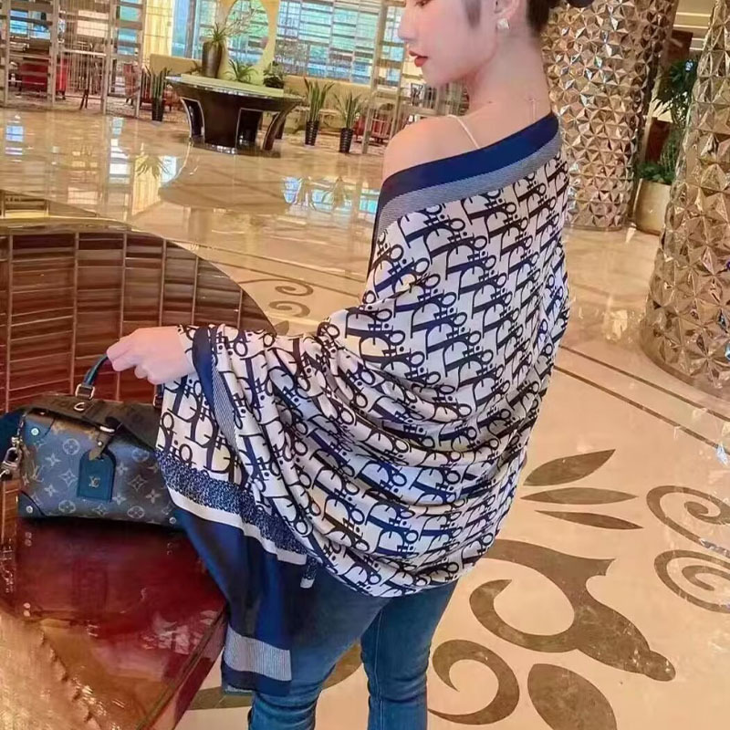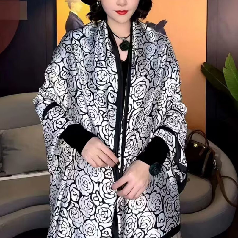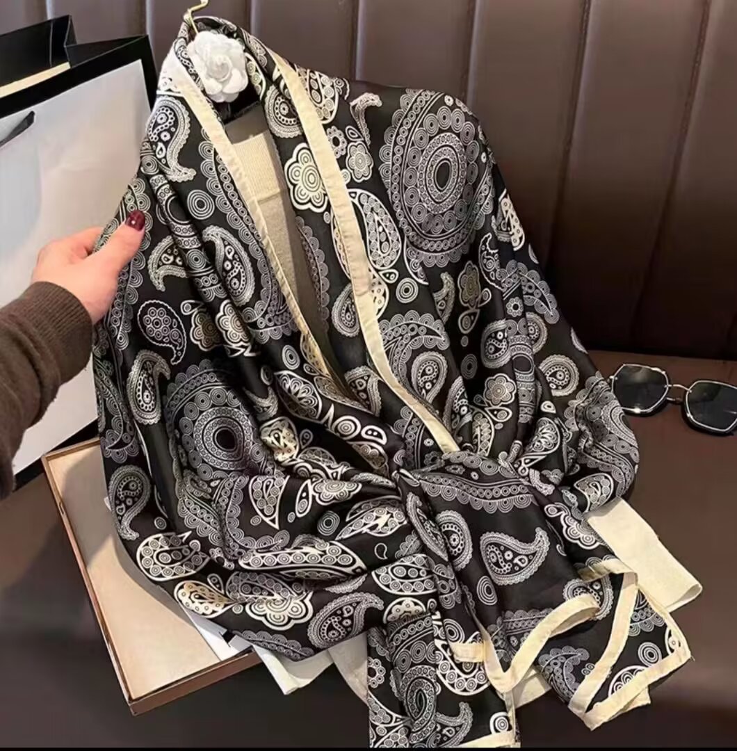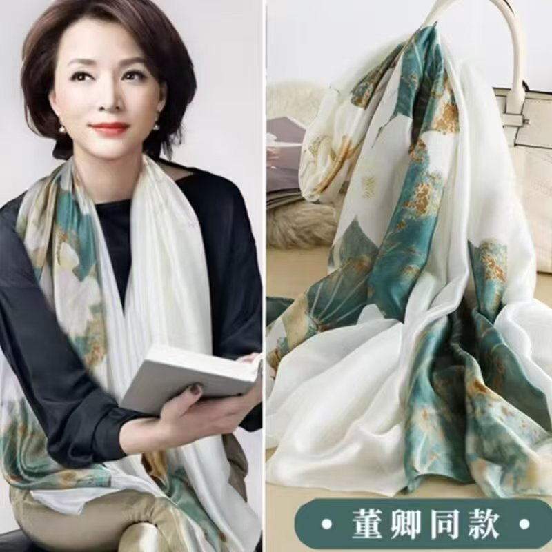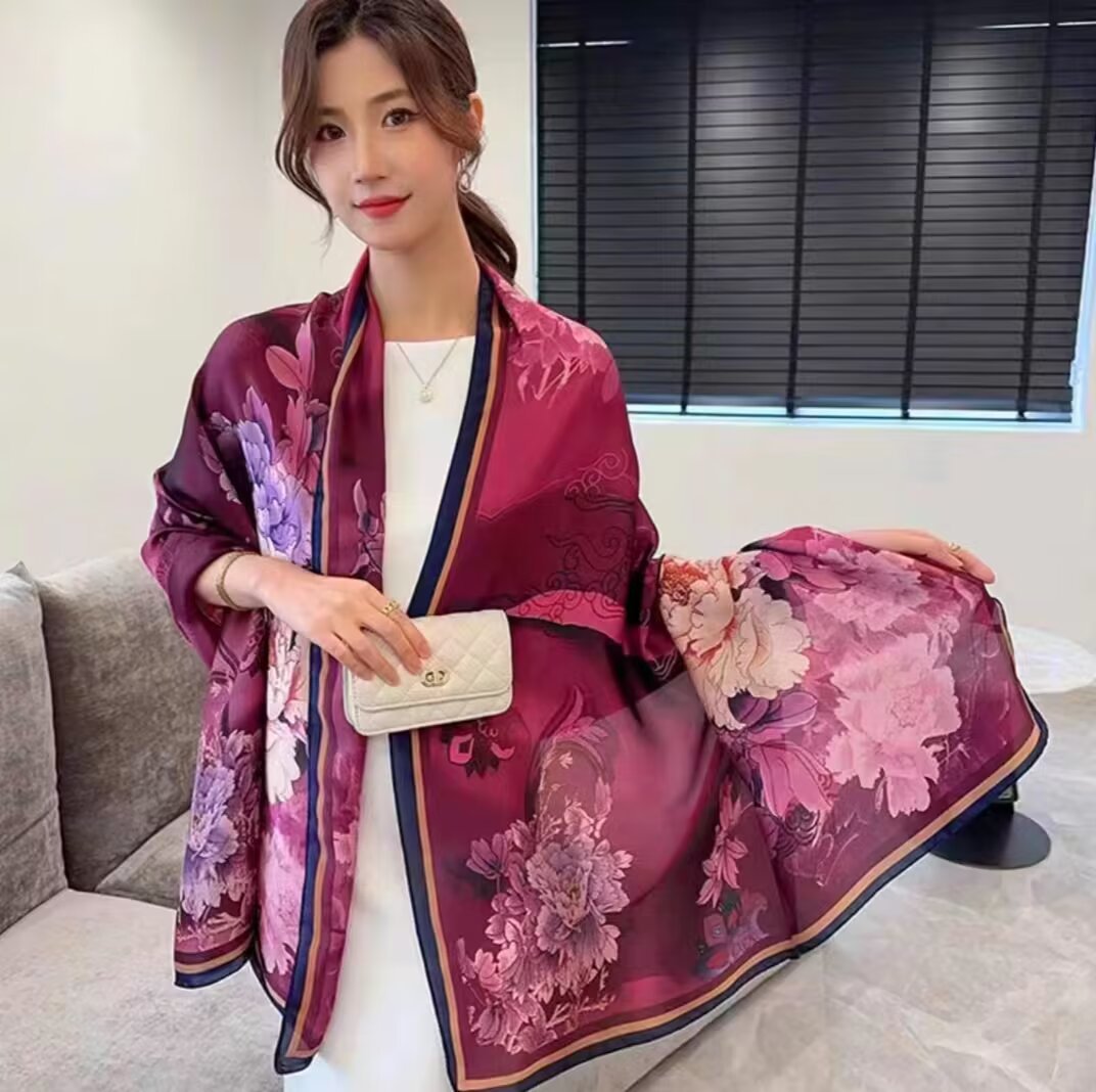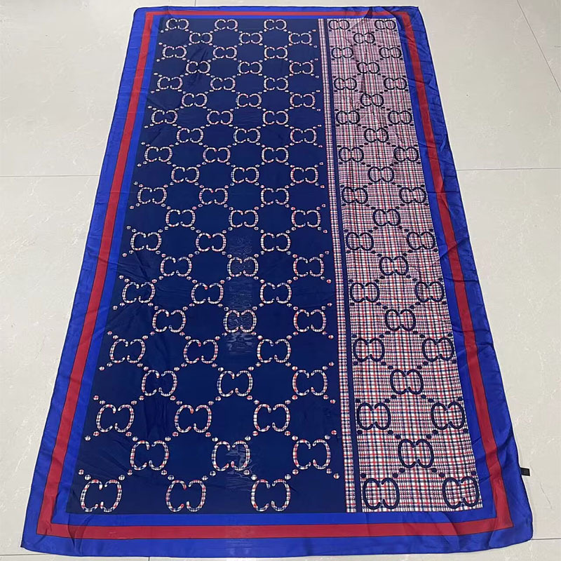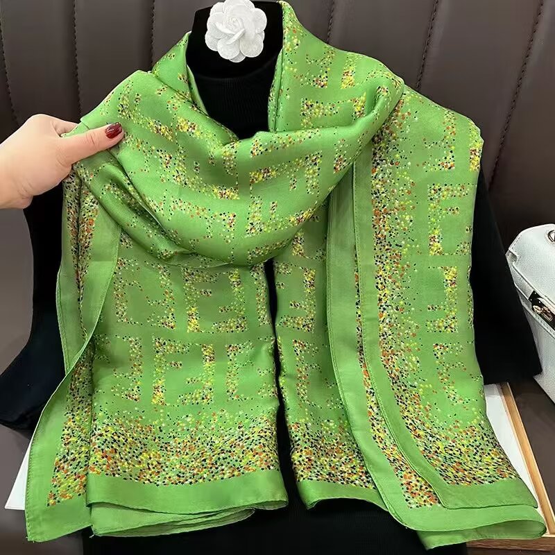 새로운 모조 실크 브로케이드 새틴 야외 목도리 선 스크린 비치 타월 에어컨 프린트 스카프 여성 도매
