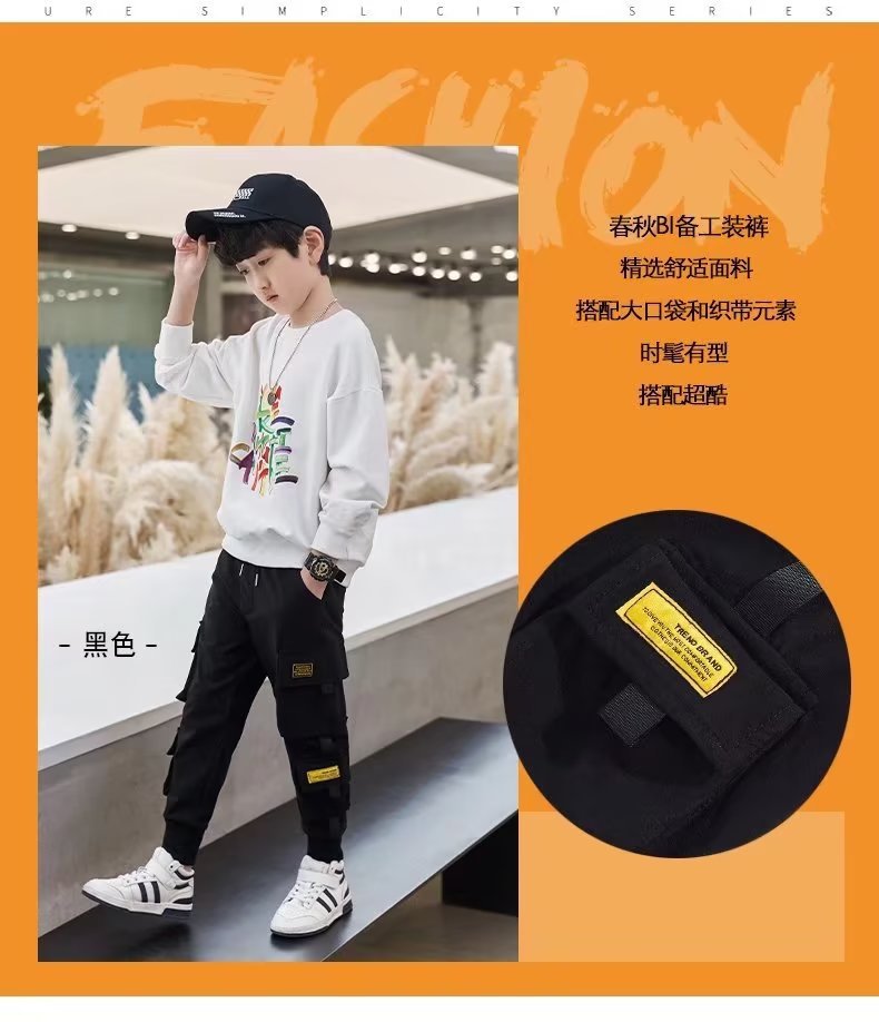 아동복 소년 캐주얼 바지 2025 년 봄과 가을 새로운 얇은 양털 다리 캐주얼 바지 대형 어린이 양말 바지 트렌디