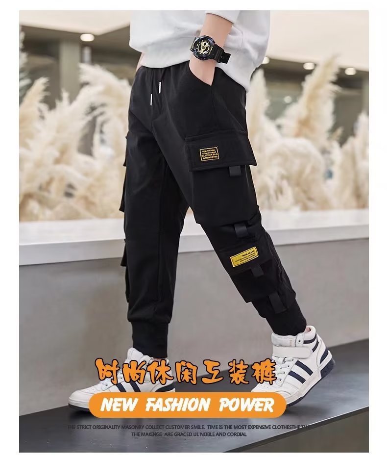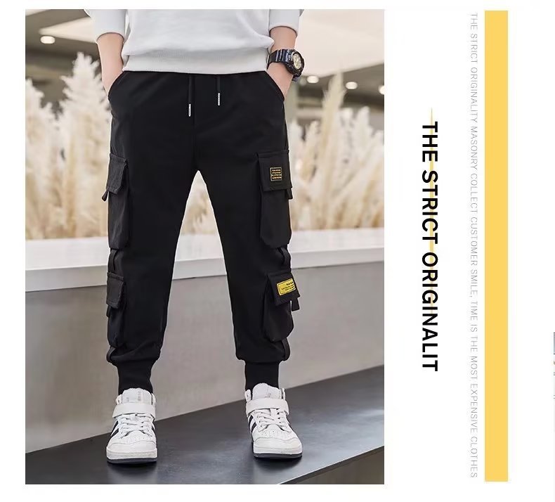 아동복 소년 캐주얼 바지 2025 년 봄과 가을 새로운 얇은 양털 다리 캐주얼 바지 대형 어린이 양말 바지 트렌디스토어 가기
