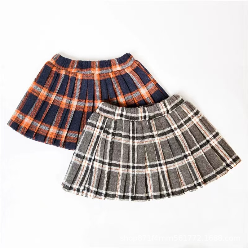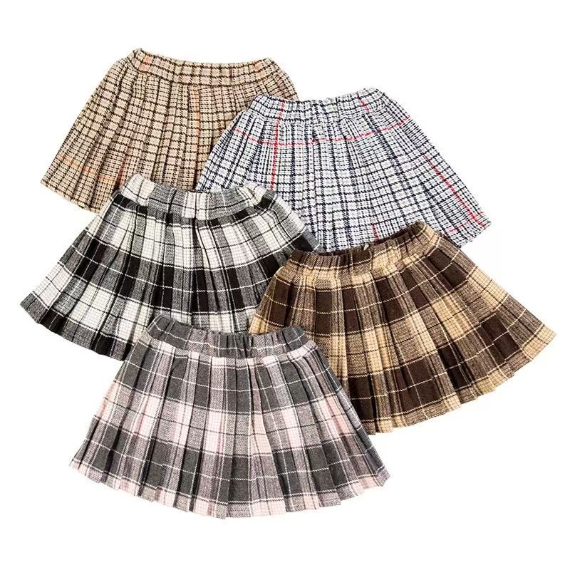 여아 플리츠 스커트, 봄, 가을, 겨울용 한국 스타일, 학교 유니폼, 모직 체크무늬, 어린이용, 큰 밑단, JK 스타일