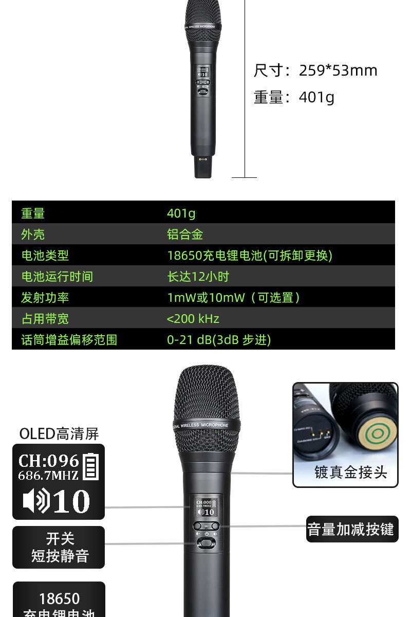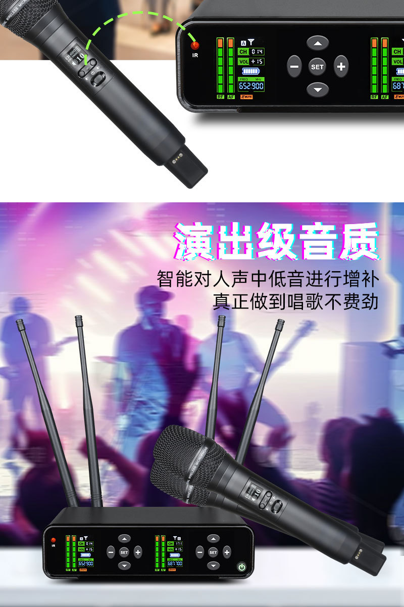 국경 간 전문 무선 마이크 진정한 다양성 한 드래그 두 핸드 헬드 충전 마이크 노래 무대 노래방
