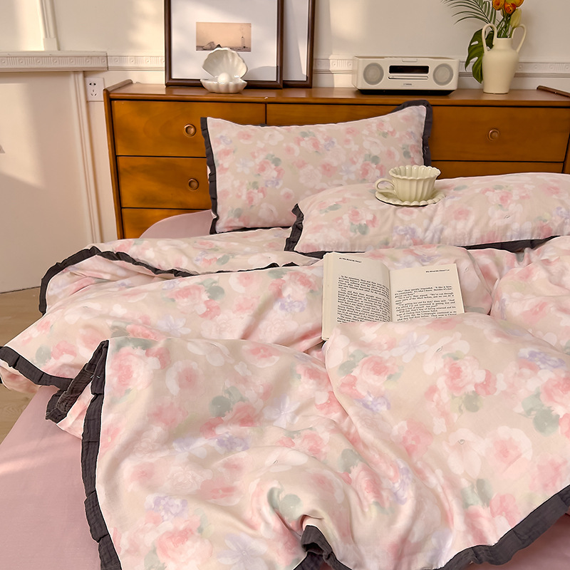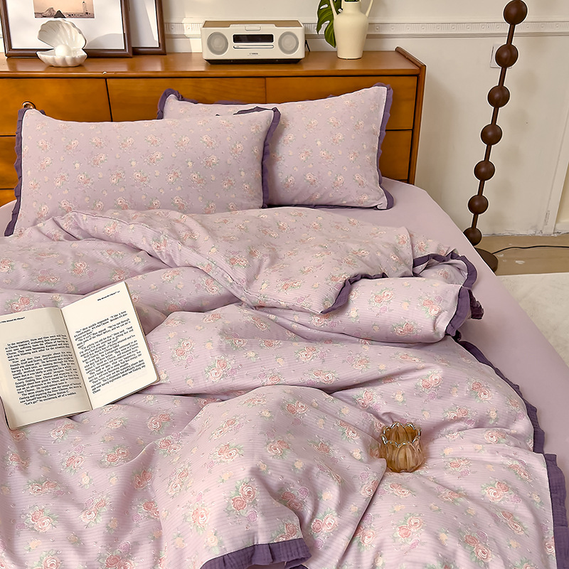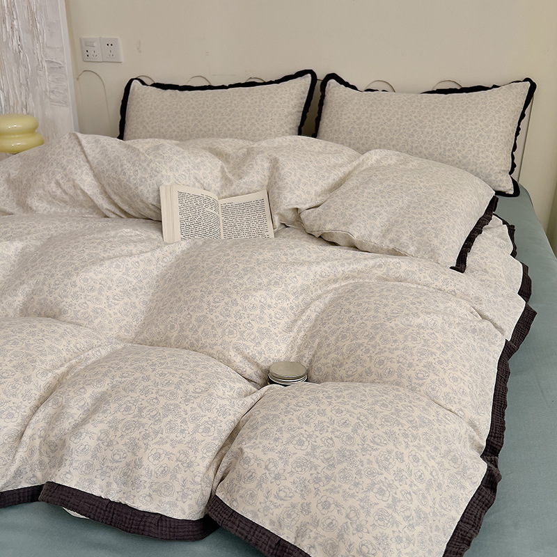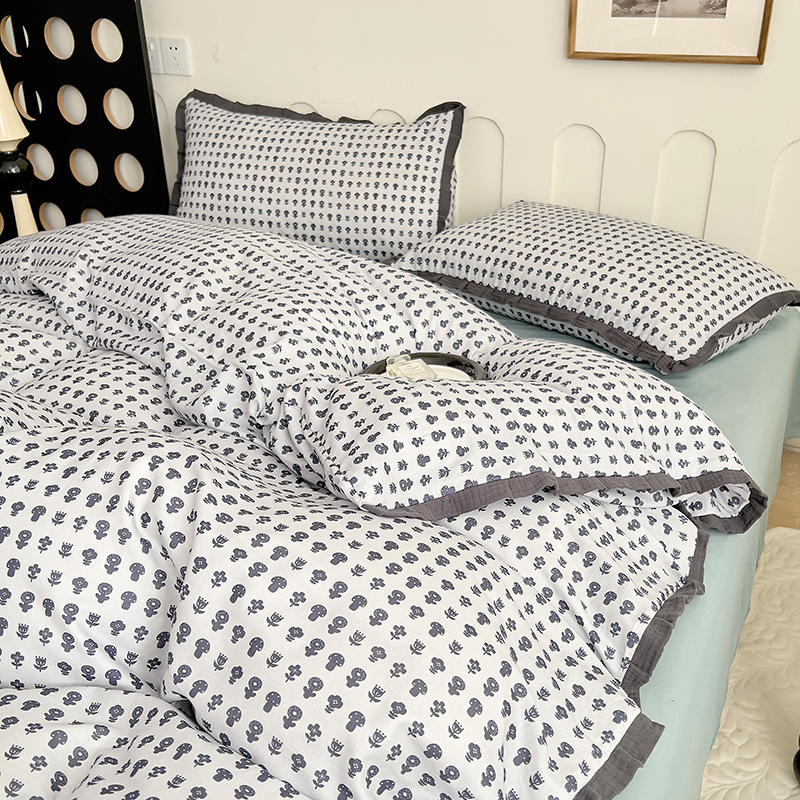 프랑스 면 이중층 원사 나무 귀 4 종 세트 모성 및 유아면 거즈 학생 기숙사 3 종 세트 도매