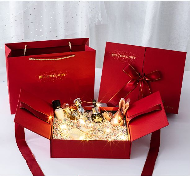 • 레드 실크 선물 상자 선물 가방 라파드 잔디 깜박이는 인사말 카드