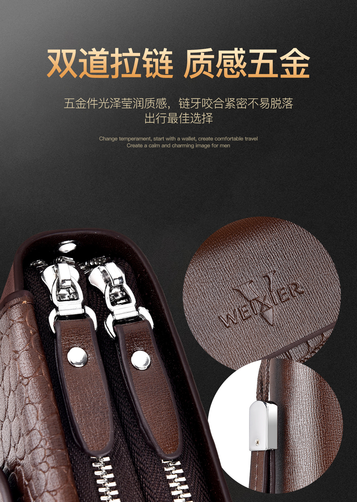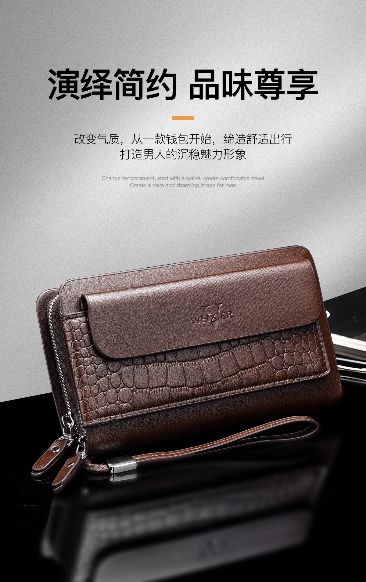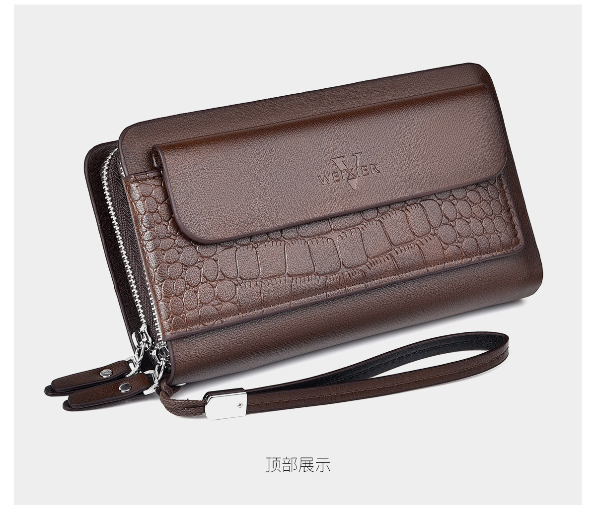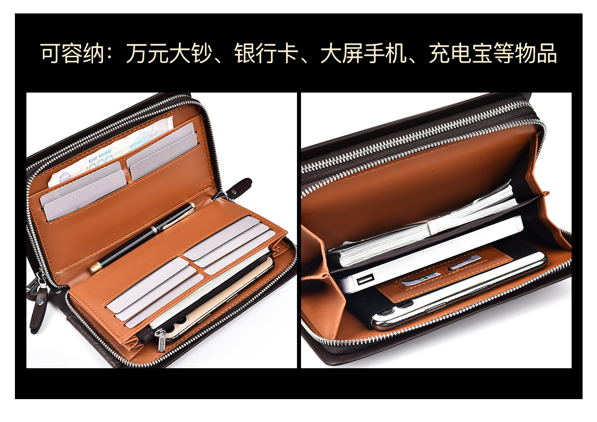 WEIXIER 비즈니스 빈티지 남성용 클러치 백 PU 가죽 긴 방수 핸드백 멀티 카드 더블 지퍼 지갑스토어 가기