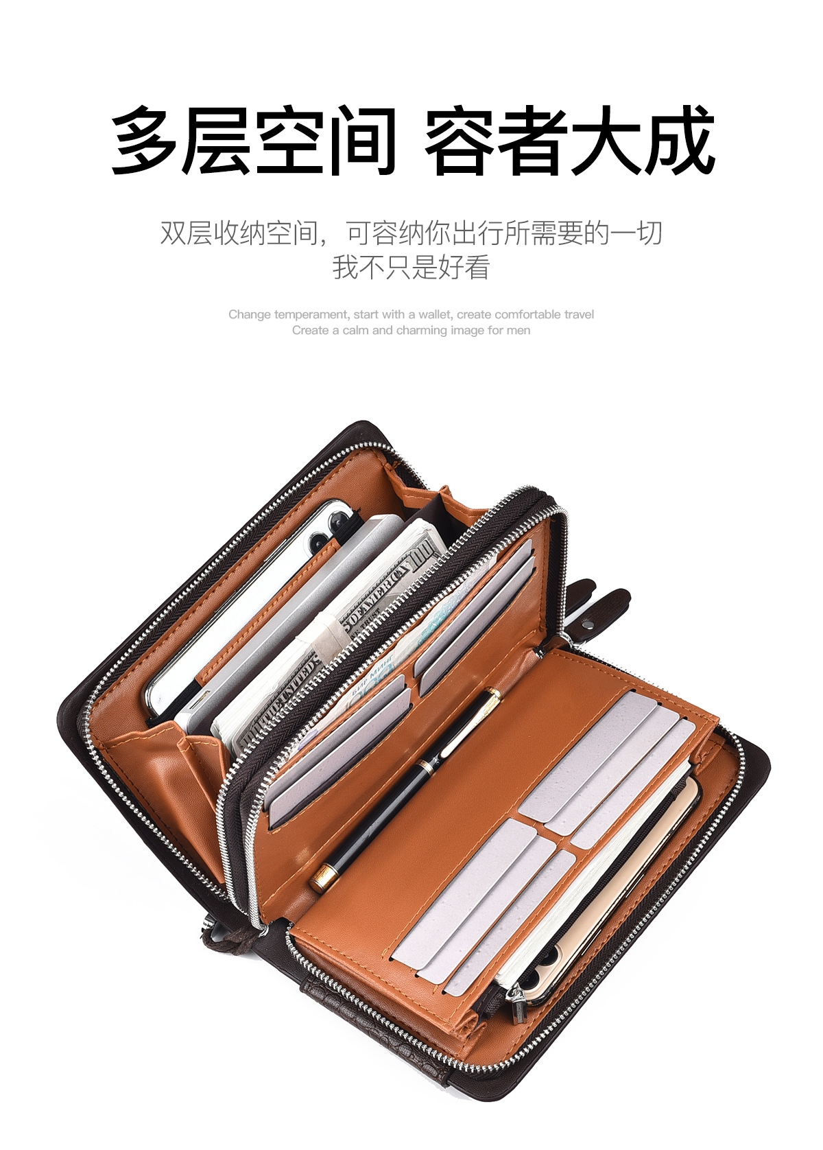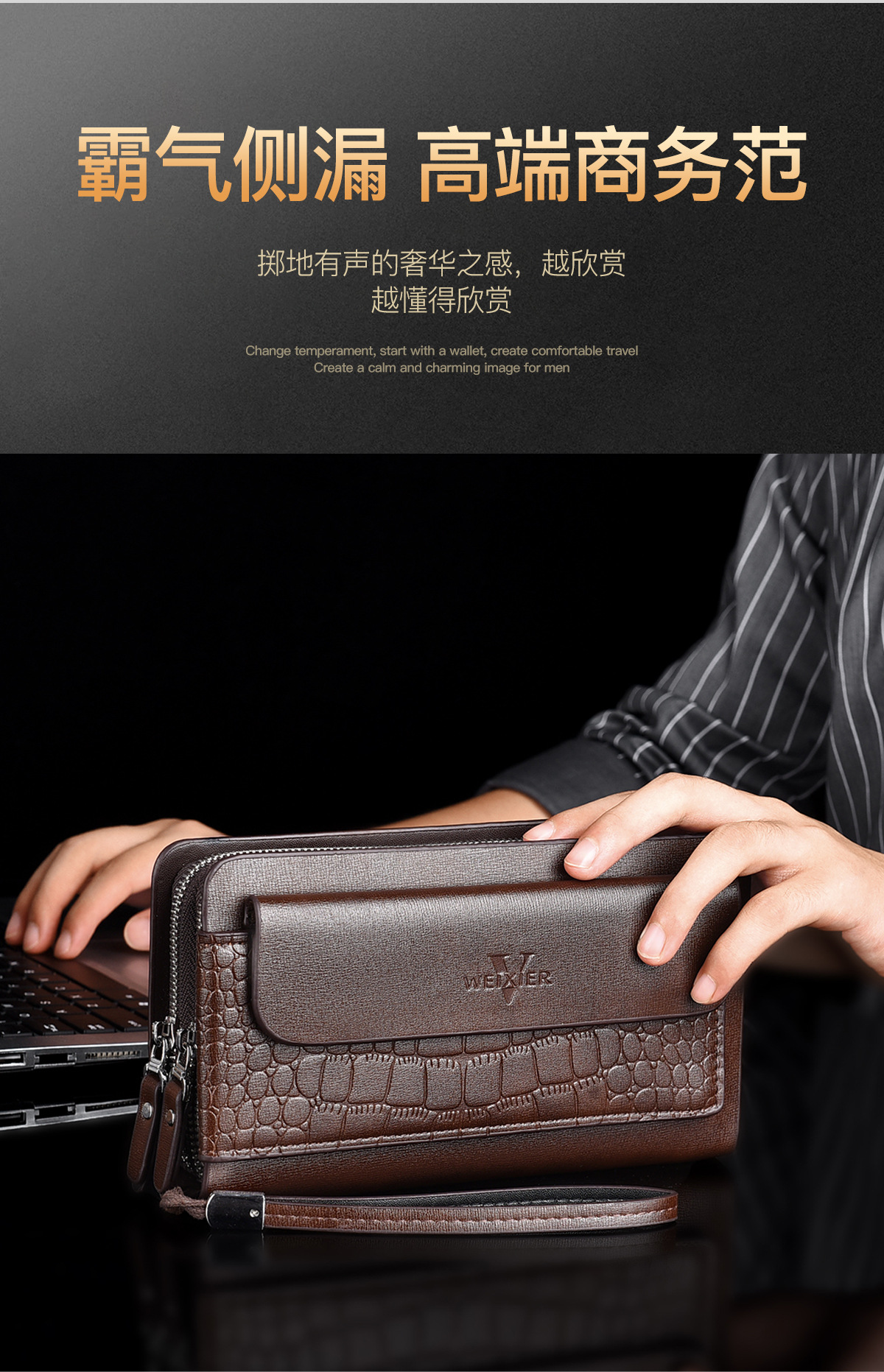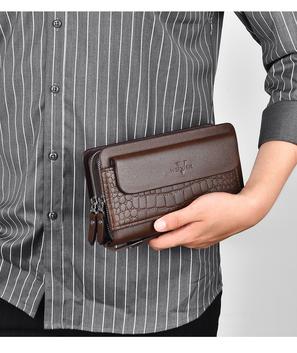 WEIXIER 비즈니스 빈티지 남성용 클러치 백 PU 가죽 긴 방수 핸드백 멀티 카드 더블 지퍼 지갑스토어 가기