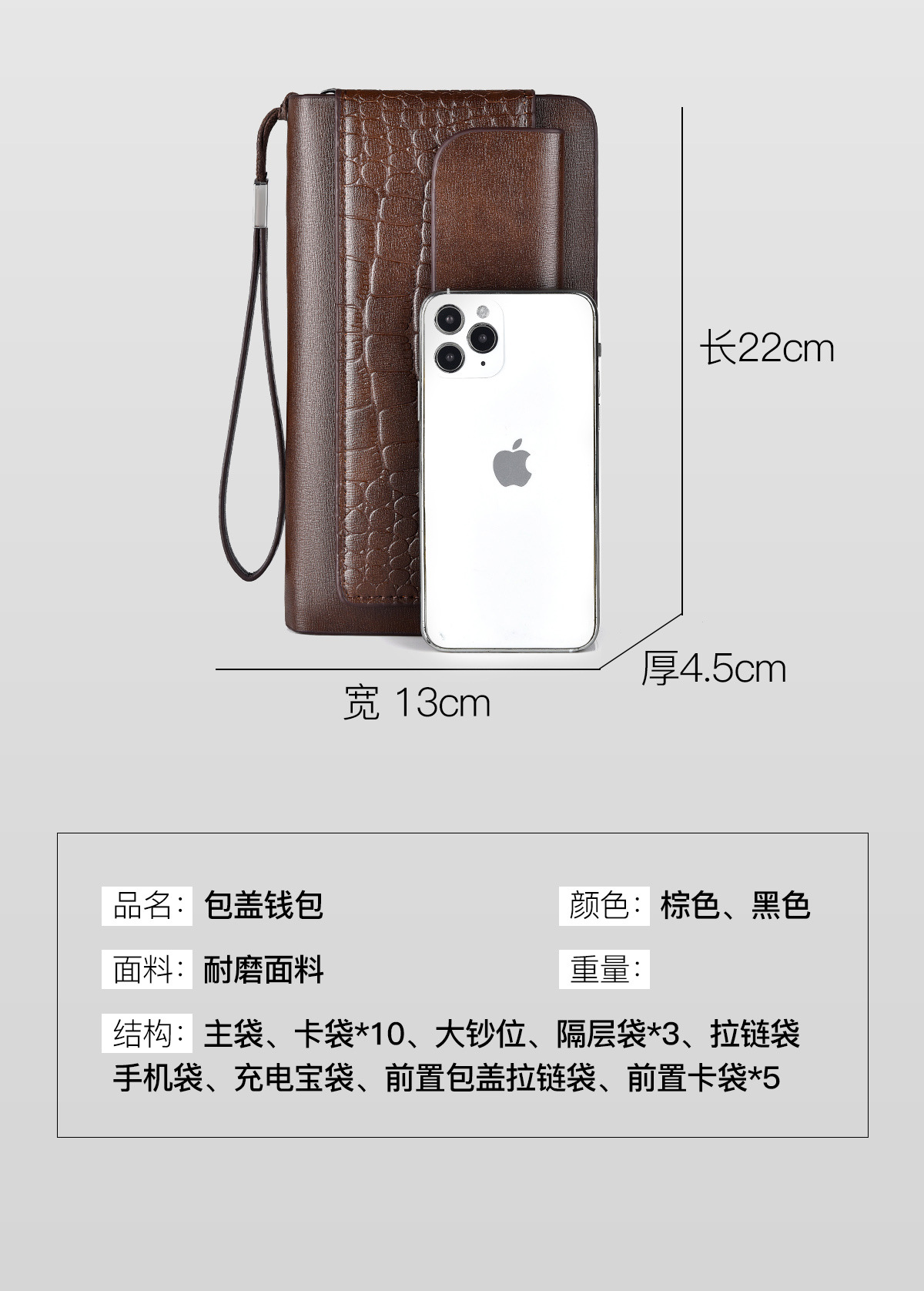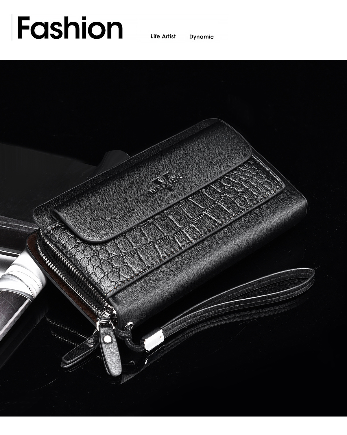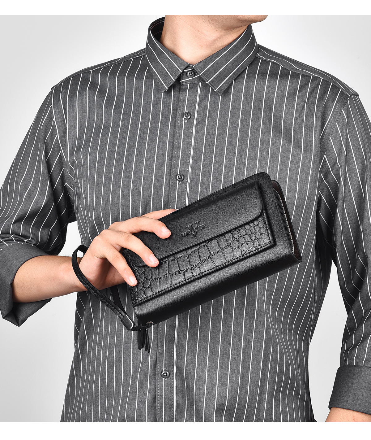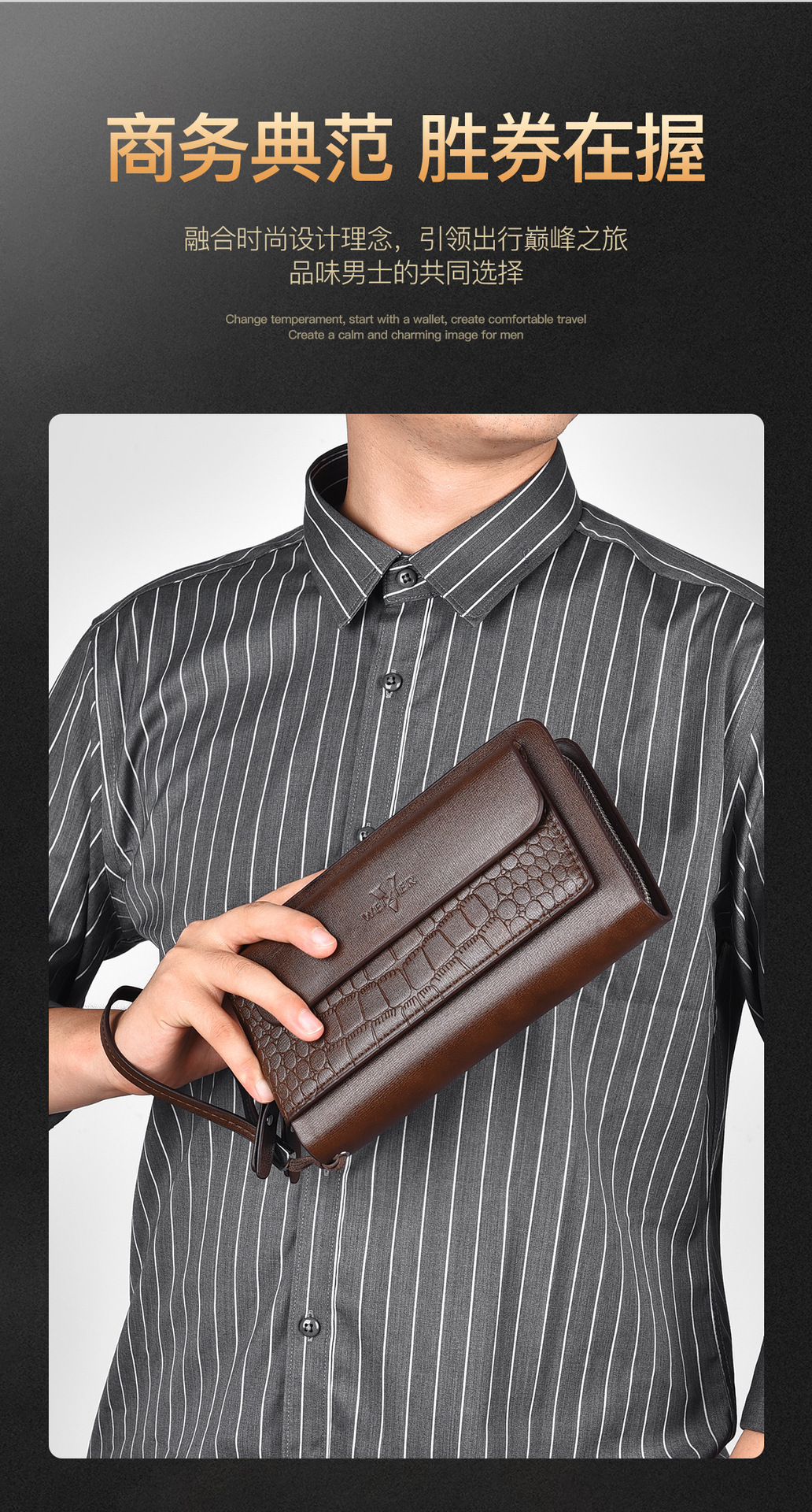 WEIXIER 비즈니스 빈티지 남성용 클러치 백 PU 가죽 긴 방수 핸드백 멀티 카드 더블 지퍼 지갑스토어 가기