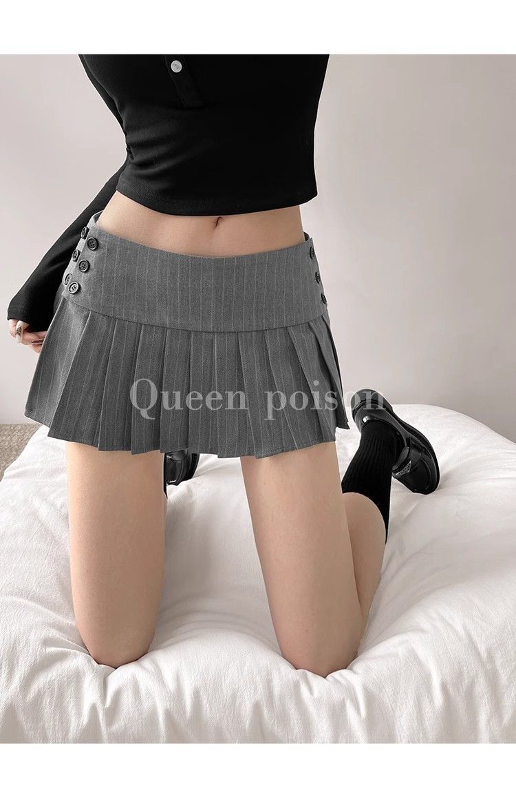 빈티지 스트라이프 세트 주름 치마 여자 2025 년 봄과 여름 뜨거운 여자 순수한 욕망 섹시한 올매치 A 라인 낮은 허리 미니 스커트