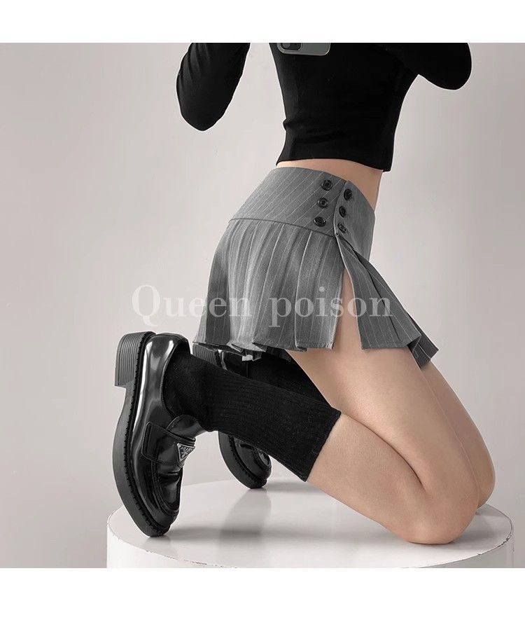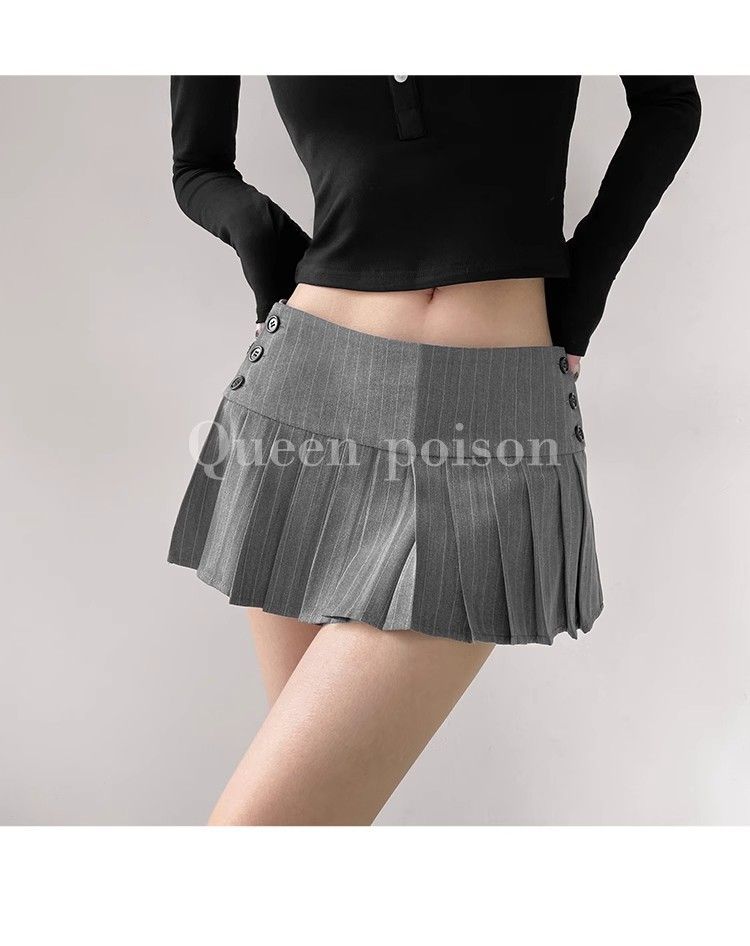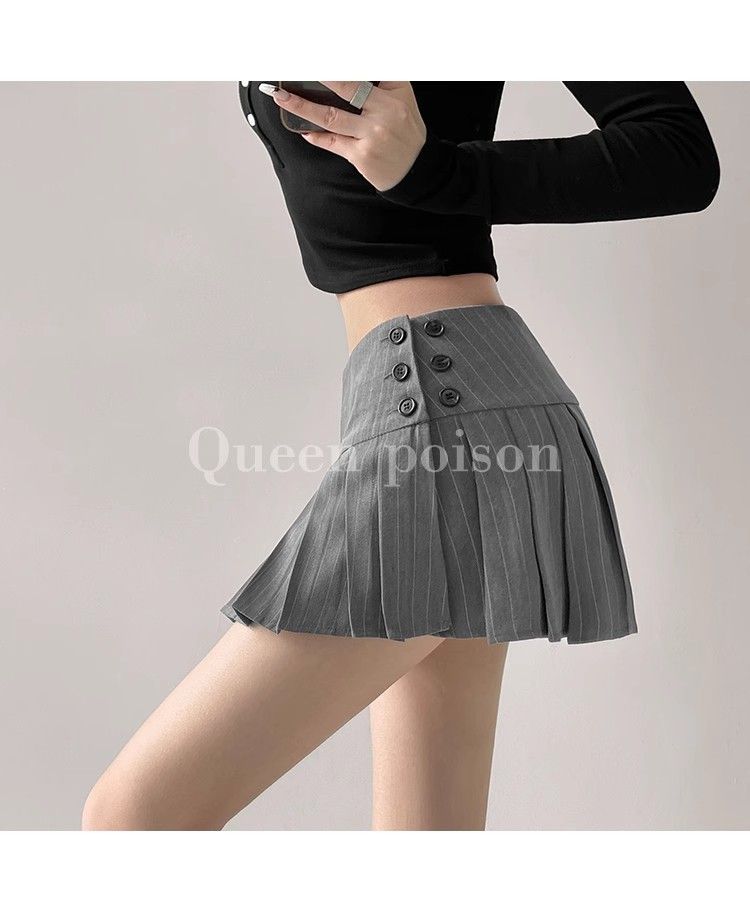빈티지 스트라이프 세트 주름 치마 여자 2025 년 봄과 여름 뜨거운 여자 순수한 욕망 섹시한 올매치 A 라인 낮은 허리 미니 스커트스토어 가기