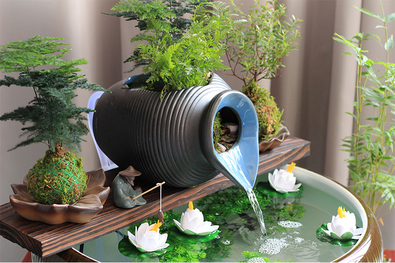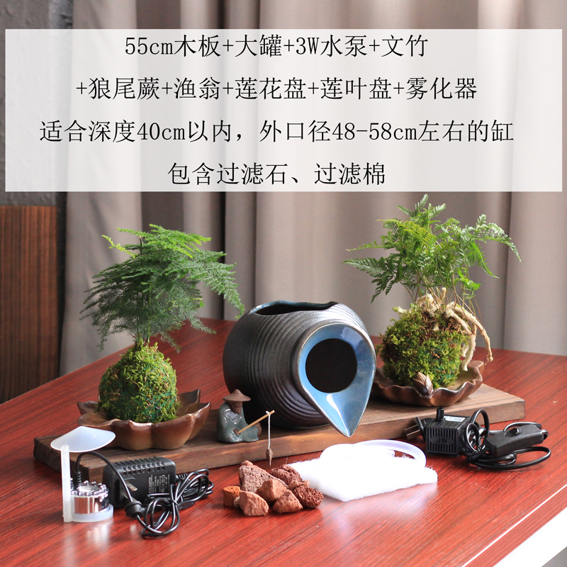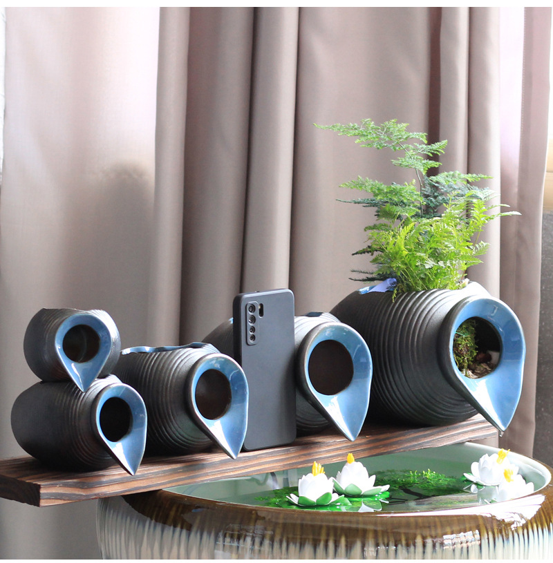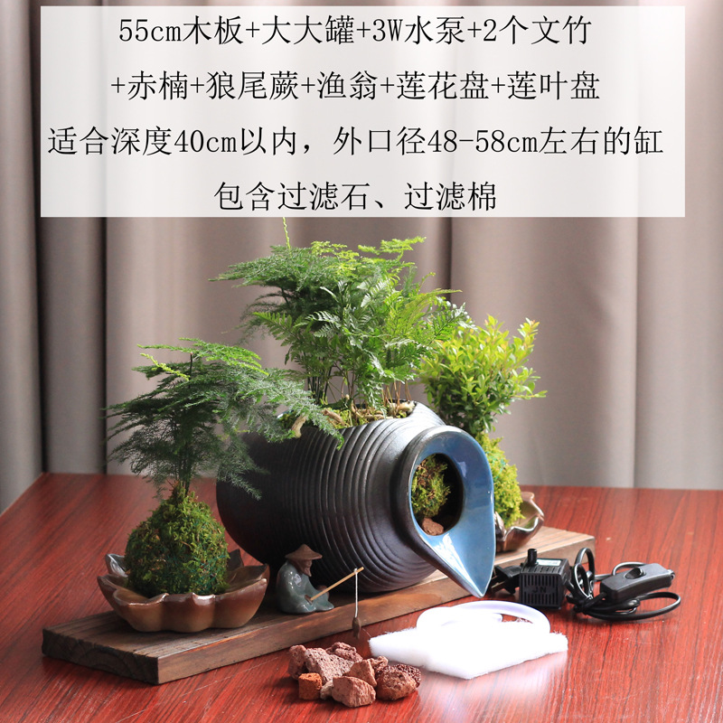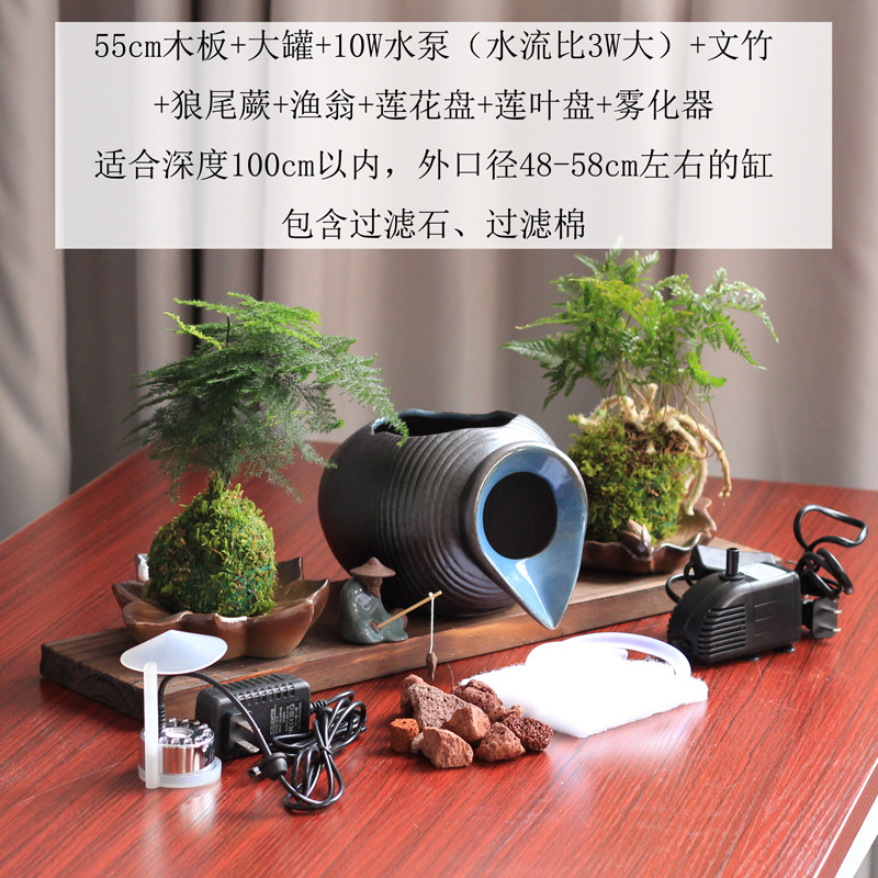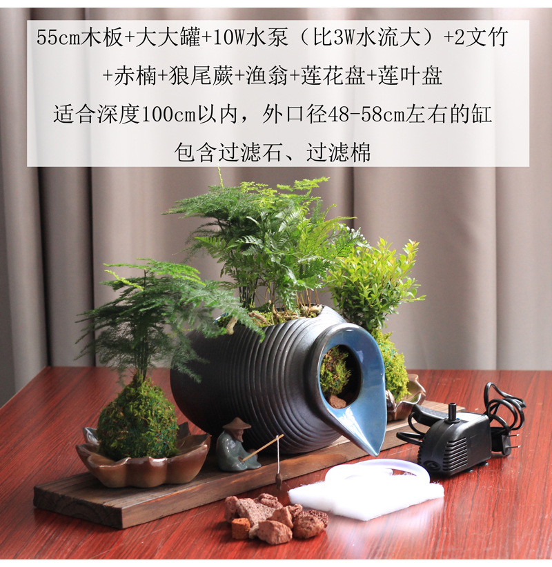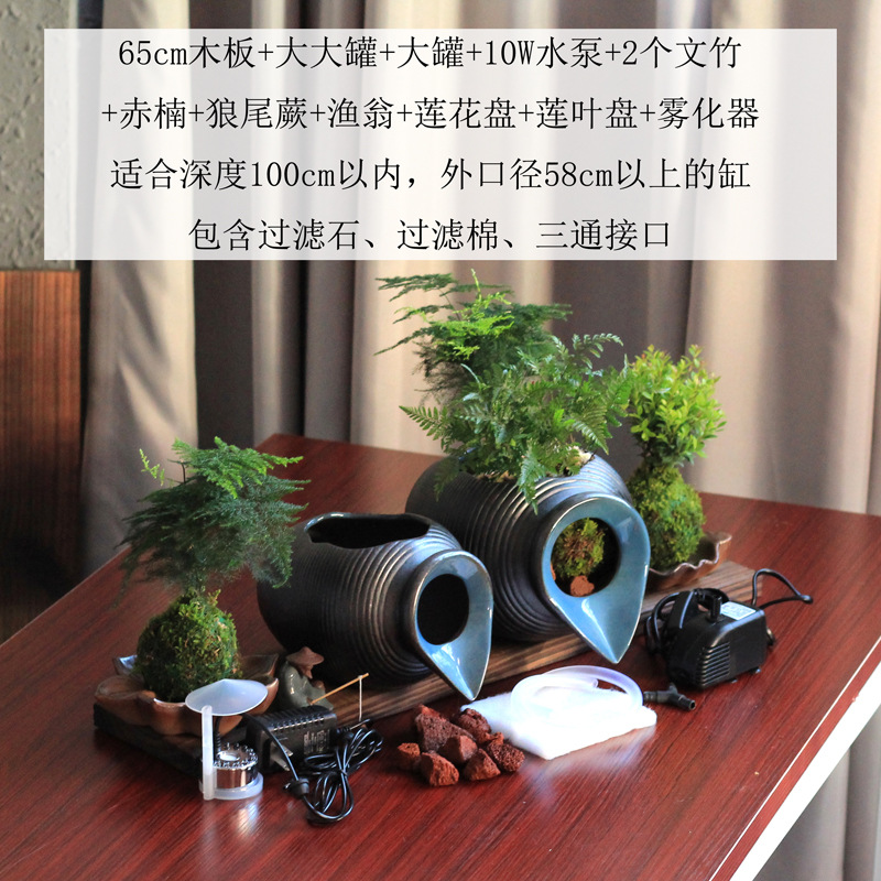 생태 탱크 고대 방법 물고기 문화 오픈 세라믹 탱크 흐르는 물 장식품 순환 필터 액세서리 안뜰 정원 조경 diy스토어 가기