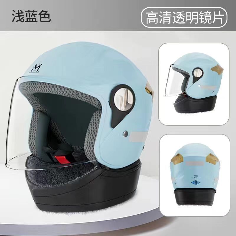 • 3c 하프 헬멧 스카프-라이트 블루-HD 김서림 방지 + 김서림 방지제
