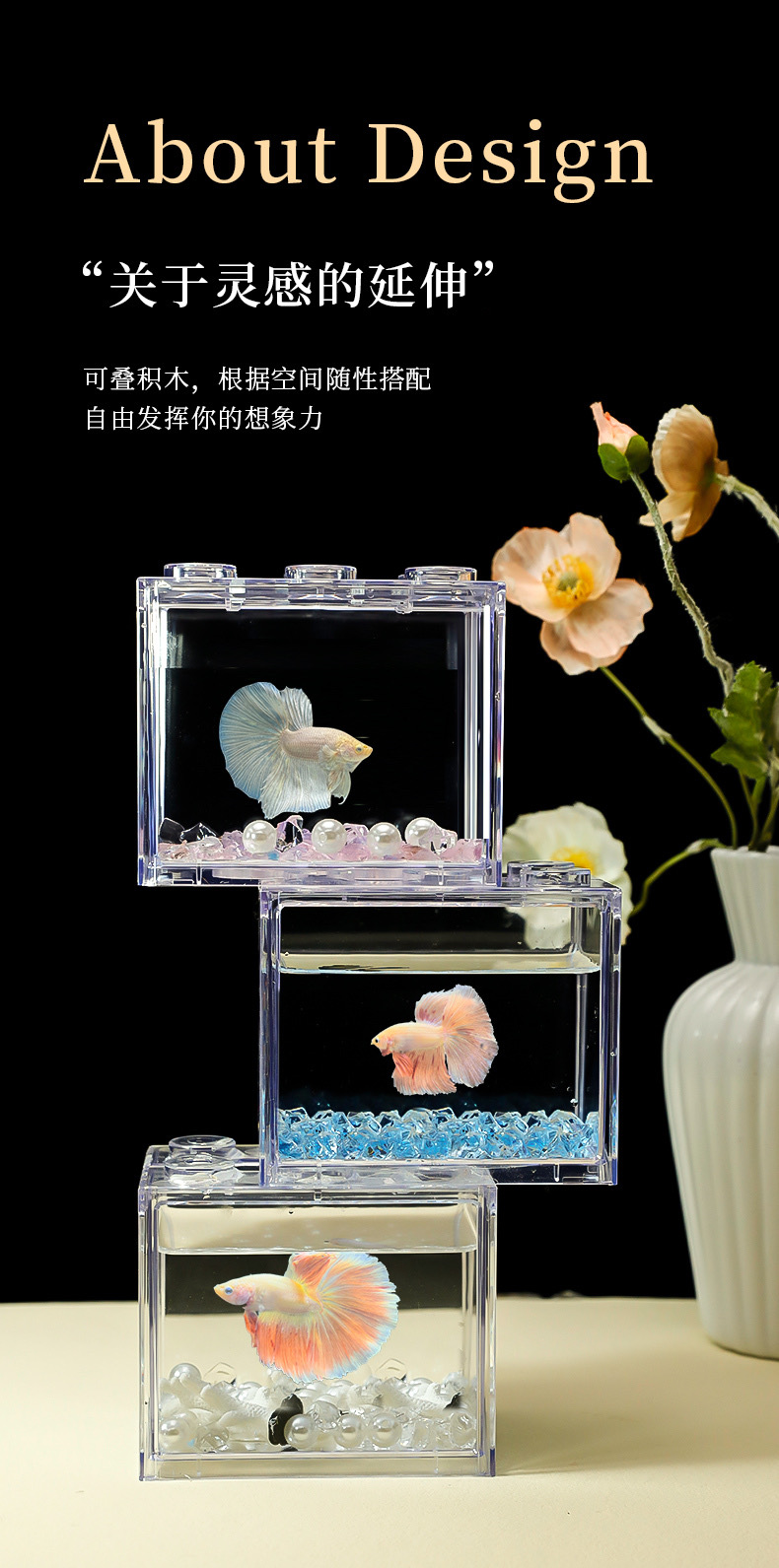 Dou 물고기 거실을위한 특별한 물고기 탱크 작은 2024 새로운 스타일 조경 장식품 아크릴 슈퍼 화이트 데스크탑 빌딩 블록 거북이 탱크