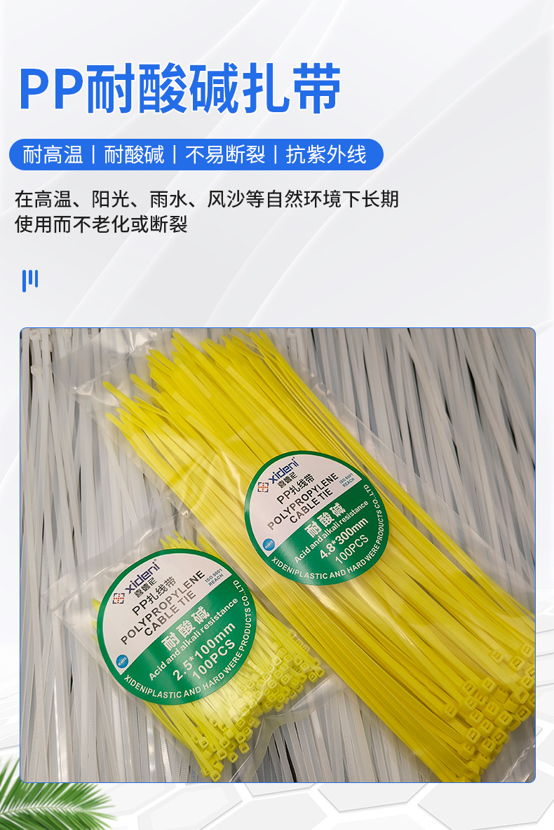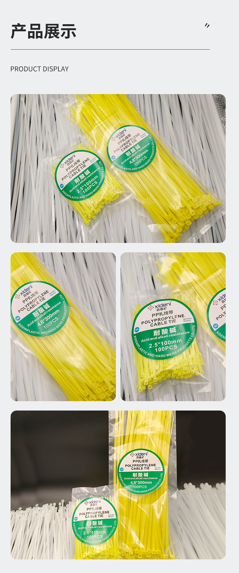 SVCH 환경 보호 노란색 산 및 알칼리 저항하는 PP 케이블 타이 화학 저항 케이블 특수 자체 잠금 PP 케이블 타이스토어 가기
