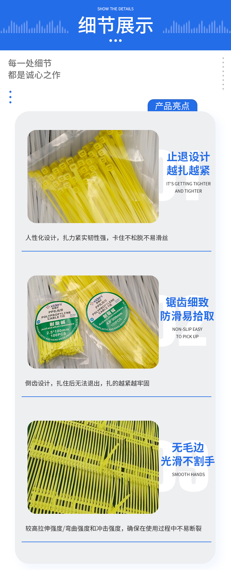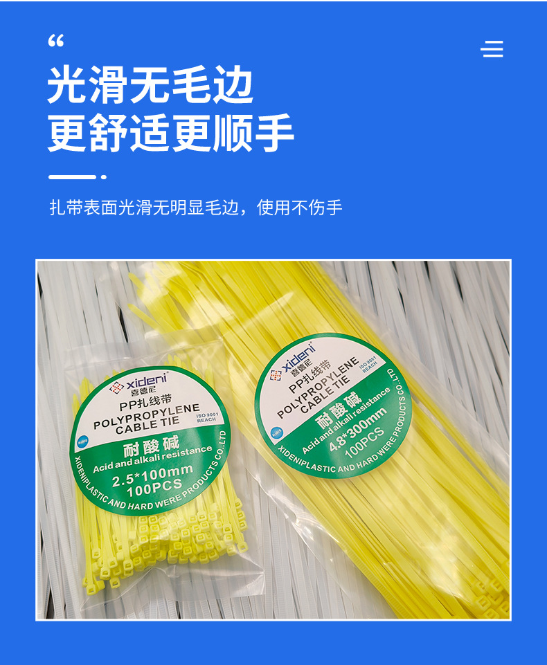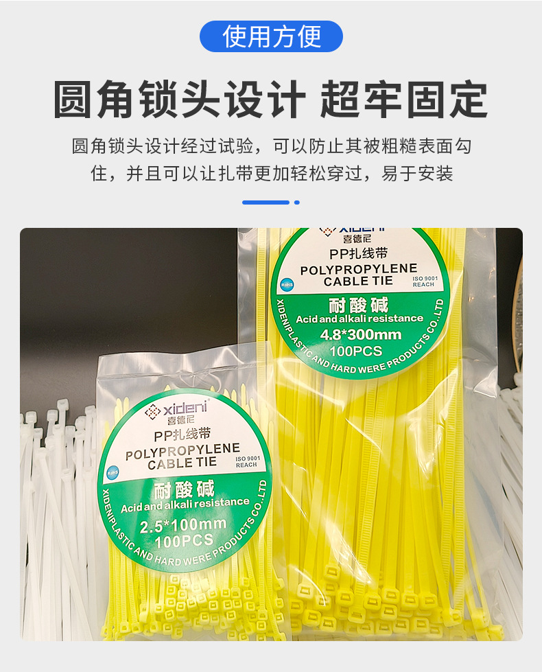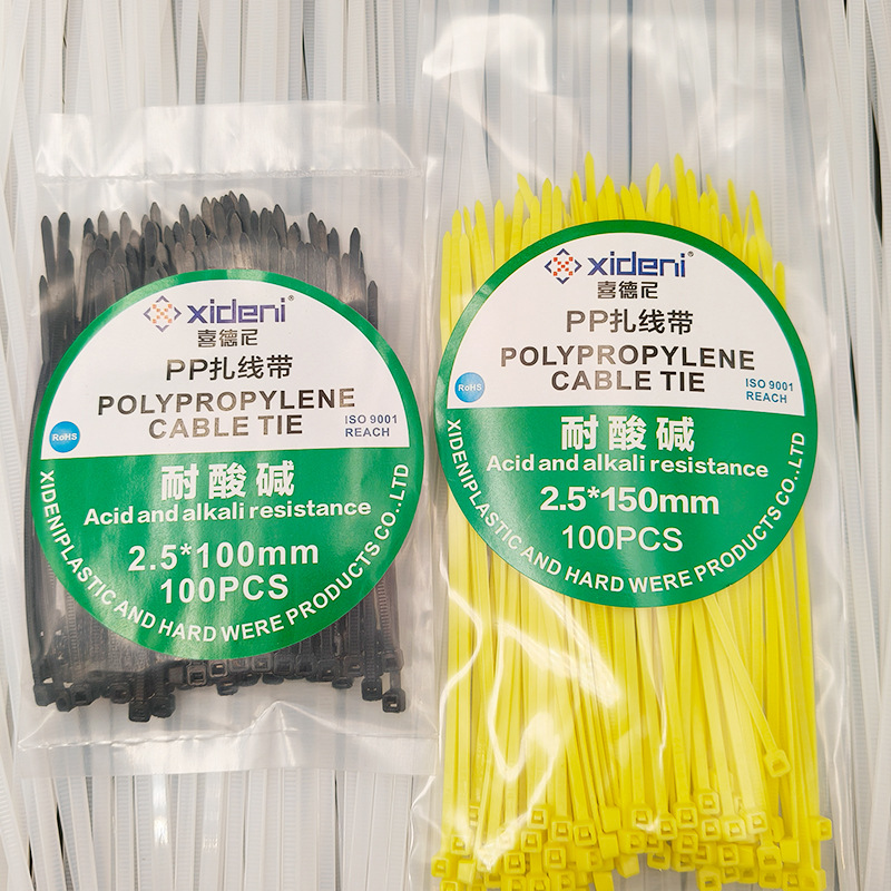 • 노란색 산 및 알칼리 방지 PP 케이블 타이, 2.5*100mm/100개/팩